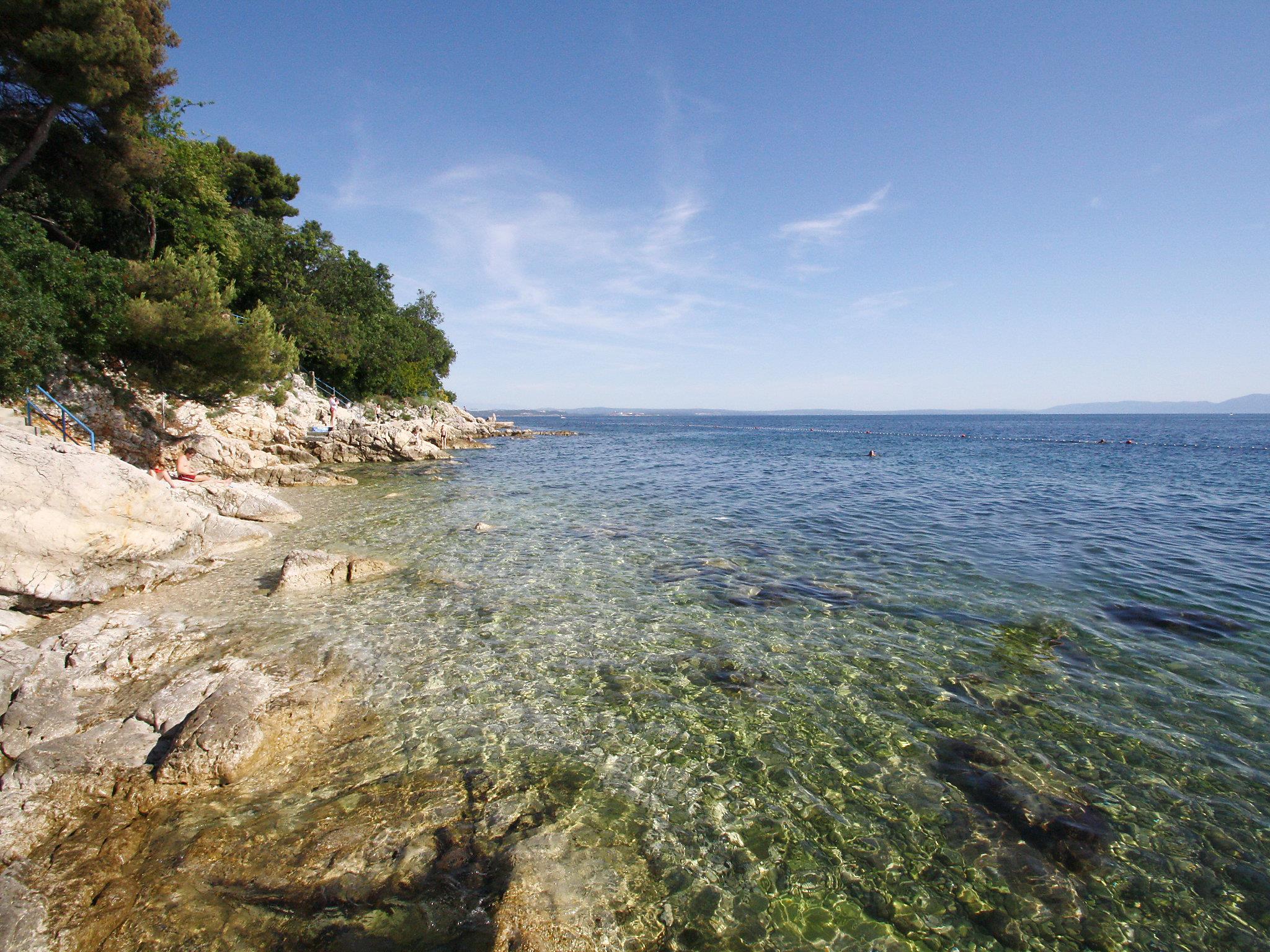 Beautiful villa "Anamia", 3 storeys. In the district of Kostrena 5 km from the centre of Rijeka, 25 km from the centre of Crikvenica, in a quiet, sunny, elevated position, 400 m from the sea, 400 m from the beach, in a cul-de-sac, in the countryside. Private: property 890 m2 (fenced), lawn 300 m2, swimming pool (24 m2, depth 140 cm, seasonal availability: 01.Jun. - 15.Sep.) with internal staircase. Unconventional pool shape. Outdoor shower, terrace (40 m2), garden furniture, barbecue. In the house: internet access, air conditioning, washing machine. Shop 1.3 km, supermarket 2 km, restaurant 400 m, bus stop 450 m, pebble beach 650 m, rocky beach, concrete beach 400 m. Groups of teenagers on request only. By groups of young people double deposit is requested on arrival. Swimming pool with counterflow and hydromassage. Well behaved pets are welcomed.