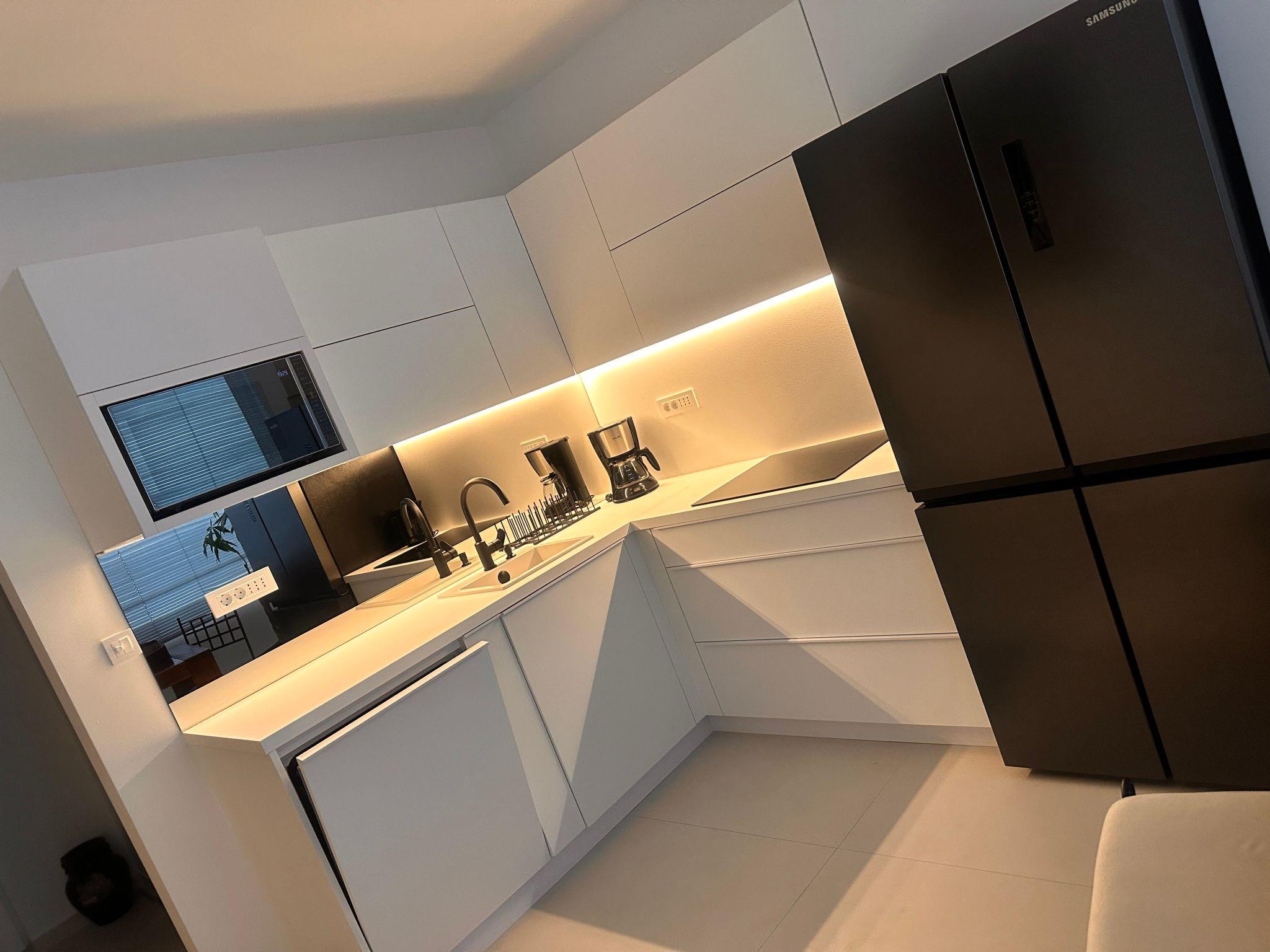 The 46 m² one-bedroom apartment for 2 people is located on the top floor of a six floors building with elevator. The accommodation consists of one bedroom, a fully equipped kitchen (induction hob, microwave, refrigerator/freezer, coffee maker, dishwasher), a hallway, and a bathroom. Free Wi-Fi, A/C (cooling/heating), ceiling fan, android TV, Bluetooth/USB/HDMI/optical TV surround system and washing machine are included.