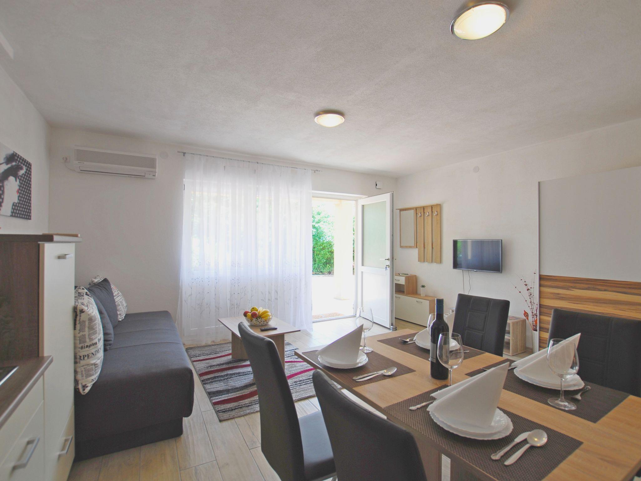 Studio bietet Platz für 4 Gäste. Die Betten sind in Schlafzimmern, die es 1 gibt, und in Wohnzimmer, innerhalb einer Gesamtfläche von 32m2, angeordnet. Die Gäste haben eine eigene Terrasse zur Verfügung, auf der sie in warmen Sommernächten genießen können. Es ist erlaubt, Speisen auf dem Gemeinschafts-Grill vorzubereiten. IM PREIS INBEGRIFFEN: Kurtaxe, Endreinigung, Klimatisierung, Zentralheizung, Parkplatz, Internet, Föhn. Die Verfügbarkeit zusätzlicher Dienstleistungen in Ihrem reservierten Termin und die Preise derselben (falls nicht aufgeführt) müssen im Voraus überprüft werden. Zusätzliche Dienstleistungen die in der Zahlungsaufforderung nicht aufgeführt sind werden direkt beim Vermieter bezahlt, angenommen der Gast nutzt auch diese. Ermäßigung auf den Grundpreis: Gratistag 14=13 (bei einem Aufenthalt von 14 Tagen oder mehr erhalten Sie einen Gratistag für den Aufenthalt bis 31.12.26).