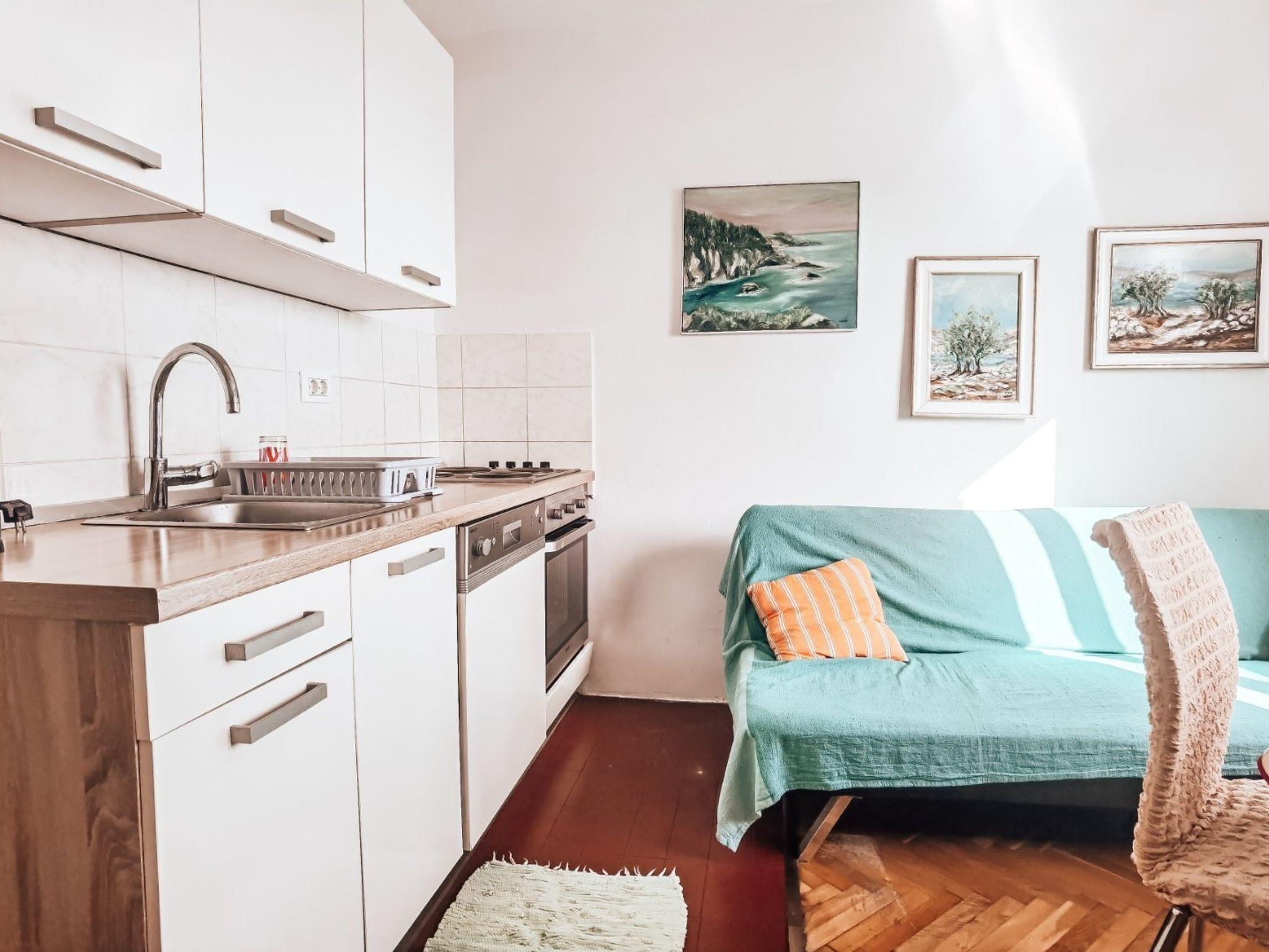 Ferienwohnung bietet Platz für 2 Gäste. Die Betten sind in Schlafzimmern, die es 1 gibt, innerhalb einer Gesamtfläche von 32m2, angeordnet. Das Apartment bietet Meerblick. Die reservierte Unterkunftseinheit hat keinen Balkon und keine Terrasse. IM PREIS INBEGRIFFEN: Kurtaxe, Endreinigung, Klimatisierung, Internet, Bügeleisen, Bügelbrett, Föhn. Die Verfügbarkeit zusätzlicher Dienstleistungen in Ihrem reservierten Termin und die Preise derselben (falls nicht aufgeführt) müssen im Voraus überprüft werden. Zusätzliche Dienstleistungen die in der Zahlungsaufforderung nicht aufgeführt sind werden direkt beim Vermieter bezahlt, angenommen der Gast nutzt auch diese. Ermäßigung auf den Grundpreis: Gratistag 14=13 (bei einem Aufenthalt von 14 Tagen oder mehr erhalten Sie einen Gratistag für den Aufenthalt bis 31.12.26).