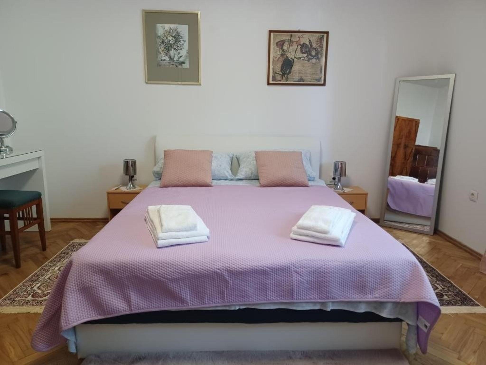 Ferienwohnung bietet Platz für 6 Gäste. Die Betten sind in Schlafzimmern, die es 3 gibt, innerhalb einer Gesamtfläche von 115m2, angeordnet. Die Gäste haben eine eigene Terrasse zur Verfügung, auf der sie in warmen Sommernächten genießen können. Das Apartment bietet Meerblick. Für vollen Genuss und Entspannung gibt es einen privaten Grill für Gäste dieser Unterkunft. In der Unterkunftseinheit besteht die Möglichkeit des Mitbringens von Haustieren gegen Aufpreis. IM PREIS INBEGRIFFEN: Kurtaxe, Endreinigung, Klimatisierung, Parkplatz, Internet, Kinderbett, Bügeleisen, Bügelbrett, Föhn. UNVERBINDLICHE ZUSÄTZLICHE KOSTEN: Haustiere (5,00 € pro Nacht). Die Verfügbarkeit zusätzlicher Dienstleistungen in Ihrem reservierten Termin und die Preise derselben (falls nicht aufgeführt) müssen im Voraus überprüft werden. Zusätzliche Dienstleistungen die in der Zahlungsaufforderung nicht aufgeführt sind werden direkt beim Vermieter bezahlt, angenommen der Gast nutzt auch diese.