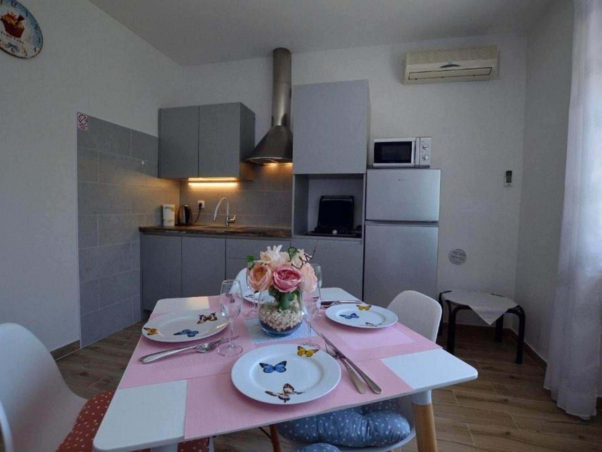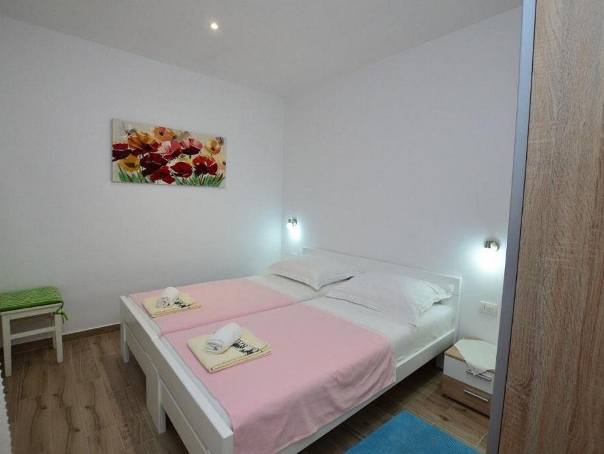 Ferienwohnung bietet Platz für 4 Gäste. Die Betten sind in Schlafzimmern, die es 1 gibt, und in Wohnzimmer, innerhalb einer Gesamtfläche von 38m2, angeordnet. Das Apartment bietet Meerblick. Es ist erlaubt, Speisen auf dem Gemeinschafts-Grill vorzubereiten. Während ihres Aufenthalts können Gäste das gemeinsam zur Nutzung stehende Schwimmbad benutzen. Die reservierte Unterkunftseinheit hat keinen Balkon und keine Terrasse. IM PREIS INBEGRIFFEN: Kurtaxe, Endreinigung, Klimatisierung, Pool, Parkplatz, Internet, Bügeleisen, Bügelbrett, Föhn, tragbarer Grill. Die Verfügbarkeit zusätzlicher Dienstleistungen in Ihrem reservierten Termin und die Preise derselben (falls nicht aufgeführt) müssen im Voraus überprüft werden. Zusätzliche Dienstleistungen die in der Zahlungsaufforderung nicht aufgeführt sind werden direkt beim Vermieter bezahlt, angenommen der Gast nutzt auch diese. Ermäßigung auf den Grundpreis: Gratistag 14=13 (bei einem Aufenthalt von 14 Tagen oder mehr erhalten Sie einen Gratistag für den Aufenthalt bis 31.12.26).