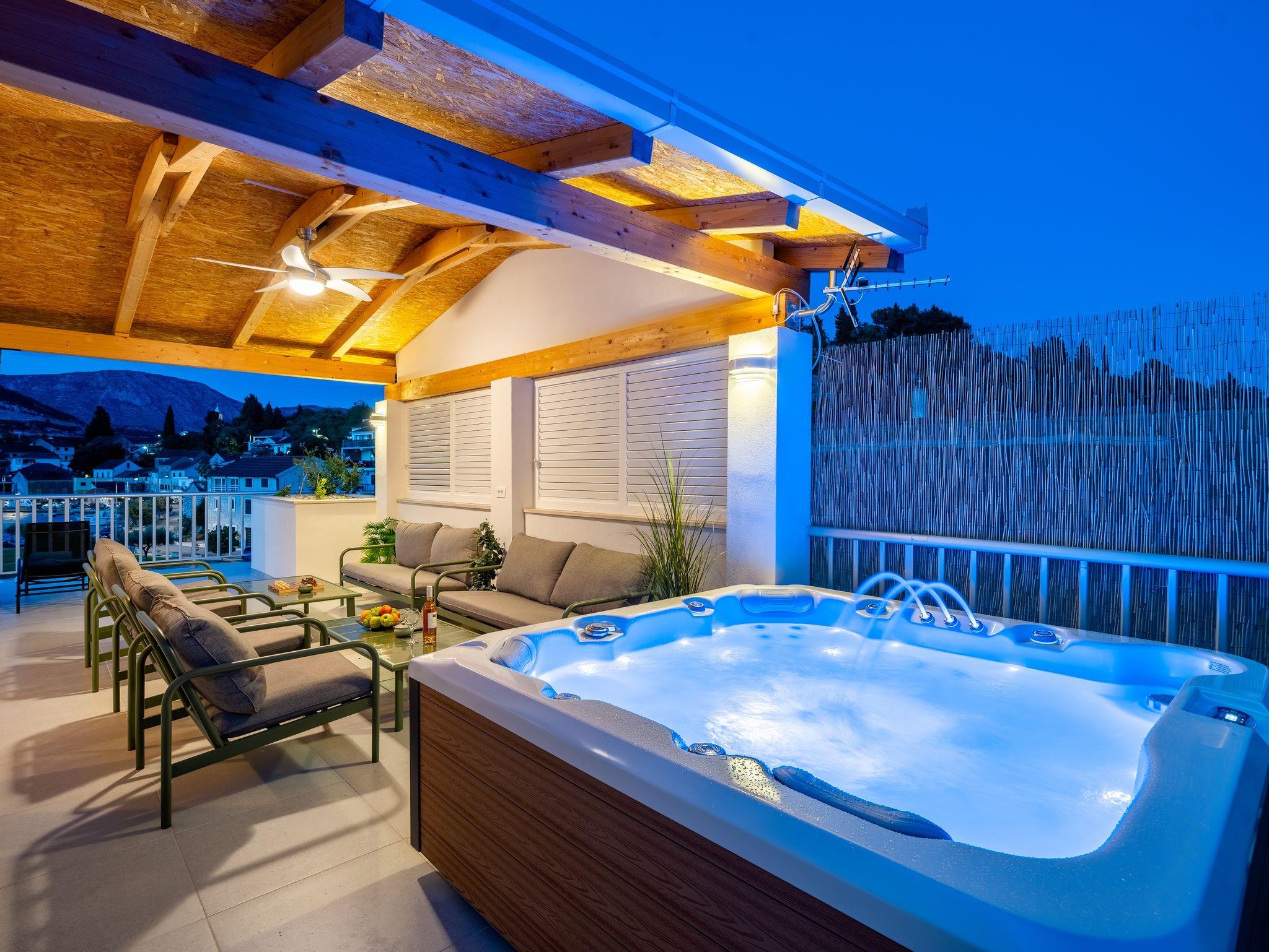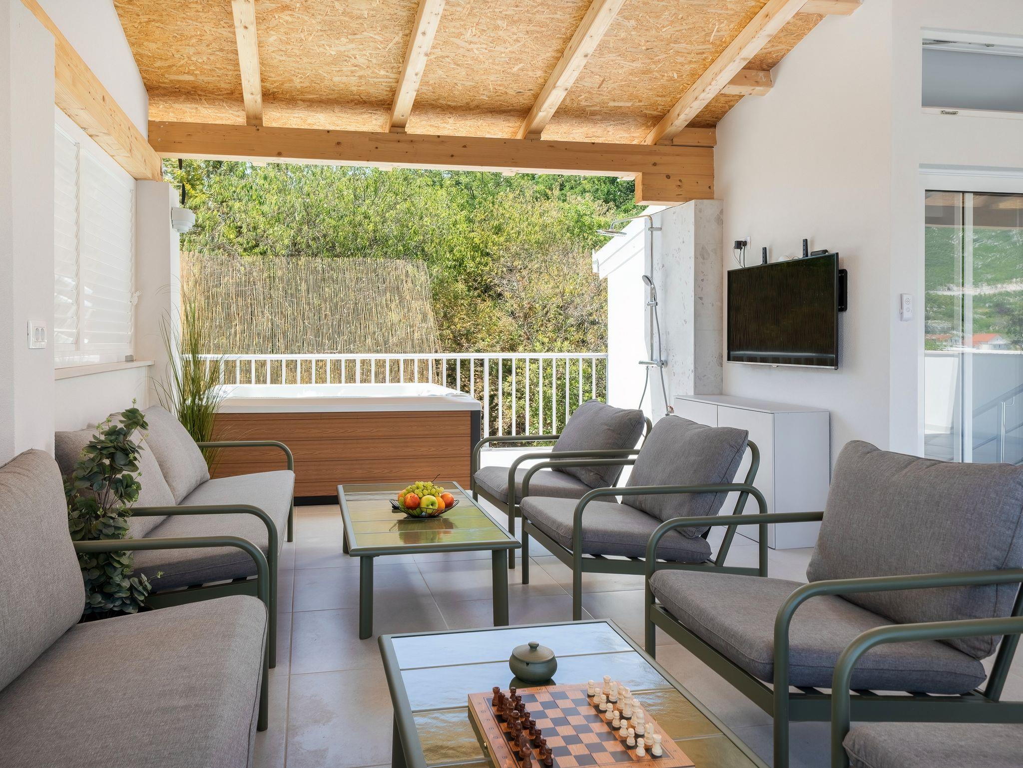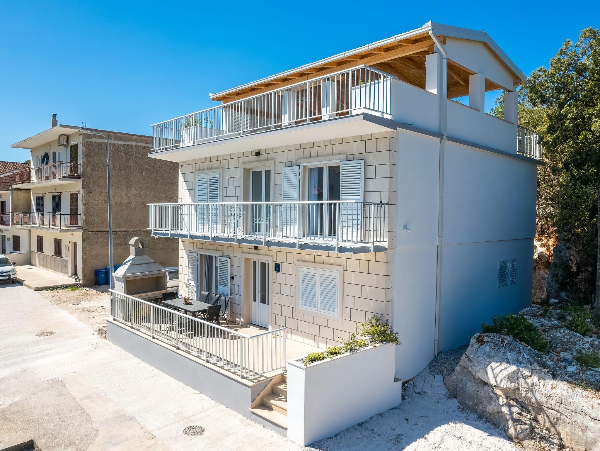 Haus bietet Platz für 8 Gäste. Die Betten sind in Schlafzimmern, die es 4 gibt, innerhalb einer Gesamtfläche von 150m2, angeordnet. Die Gäste haben eine eigene Terrasse zur Verfügung, auf der sie in warmen Sommernächten genießen können. Das Haus bietet Meerblick. Für vollen Genuss und Entspannung gibt es einen privaten Grill für Gäste dieser Unterkunft. IM PREIS INBEGRIFFEN: Kurtaxe, Endreinigung, Klimatisierung, Parkplatz, Internet, Kinderbett, Bügeleisen, Bügelbrett, Föhn. Die Verfügbarkeit zusätzlicher Dienstleistungen in Ihrem reservierten Termin und die Preise derselben (falls nicht aufgeführt) müssen im Voraus überprüft werden. Zusätzliche Dienstleistungen die in der Zahlungsaufforderung nicht aufgeführt sind werden direkt beim Vermieter bezahlt, angenommen der Gast nutzt auch diese. Ermäßigung auf den Grundpreis: Gratistag 14=13 (bei einem Aufenthalt von 14 Tagen oder mehr erhalten Sie einen Gratistag für den Aufenthalt bis 31.12.26).