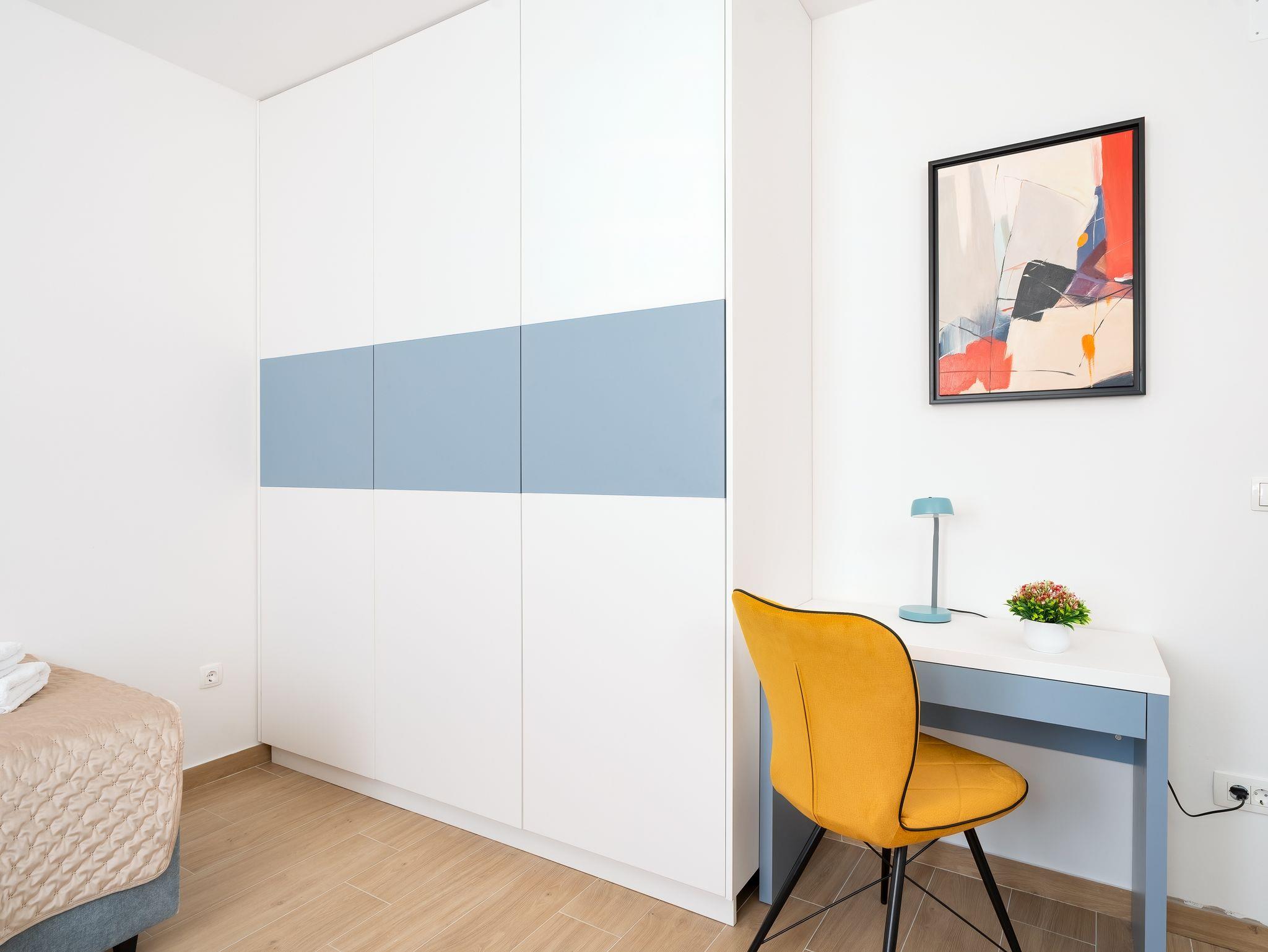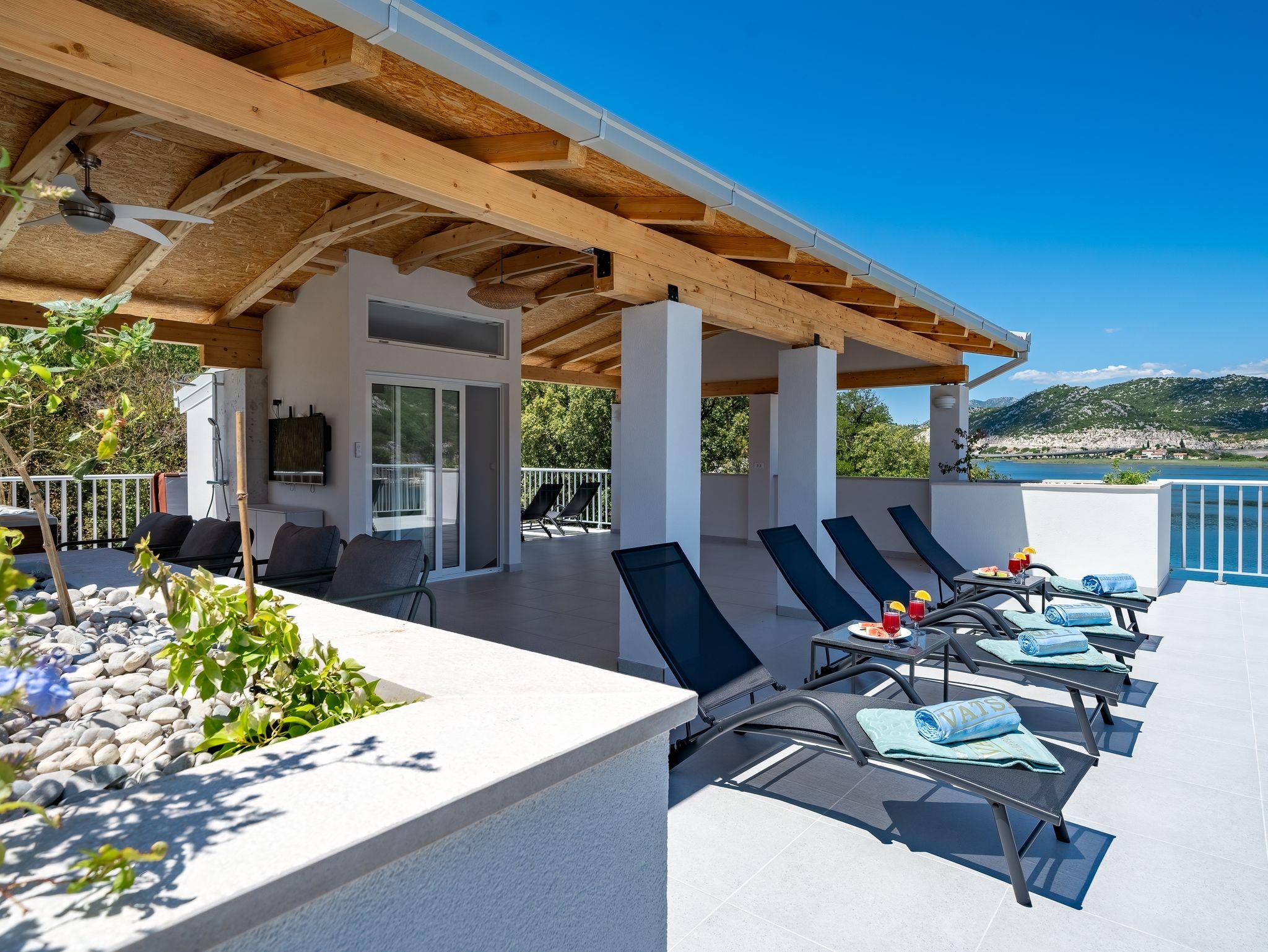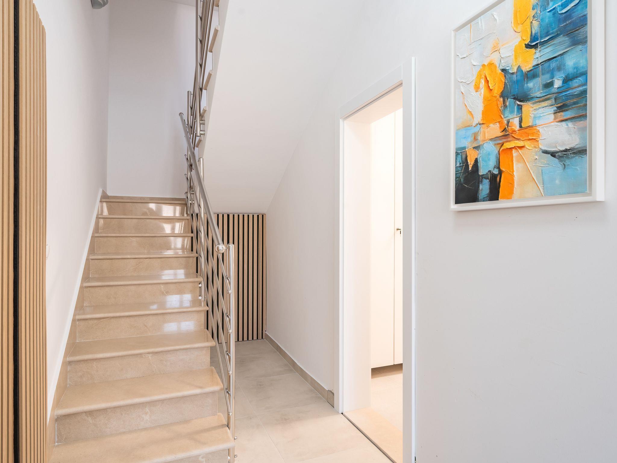 Haus bietet Platz für 8 Gäste. Die Betten sind in Schlafzimmern, die es 4 gibt, innerhalb einer Gesamtfläche von 150m2, angeordnet. Die Gäste haben eine eigene Terrasse zur Verfügung, auf der sie in warmen Sommernächten genießen können. Das Haus bietet Meerblick. Für vollen Genuss und Entspannung gibt es einen privaten Grill für Gäste dieser Unterkunft. IM PREIS INBEGRIFFEN: Kurtaxe, Endreinigung, Klimatisierung, Parkplatz, Internet, Kinderbett, Bügeleisen, Bügelbrett, Föhn. Die Verfügbarkeit zusätzlicher Dienstleistungen in Ihrem reservierten Termin und die Preise derselben (falls nicht aufgeführt) müssen im Voraus überprüft werden. Zusätzliche Dienstleistungen die in der Zahlungsaufforderung nicht aufgeführt sind werden direkt beim Vermieter bezahlt, angenommen der Gast nutzt auch diese. Ermäßigung auf den Grundpreis: Gratistag 14=13 (bei einem Aufenthalt von 14 Tagen oder mehr erhalten Sie einen Gratistag für den Aufenthalt bis 31.12.26).