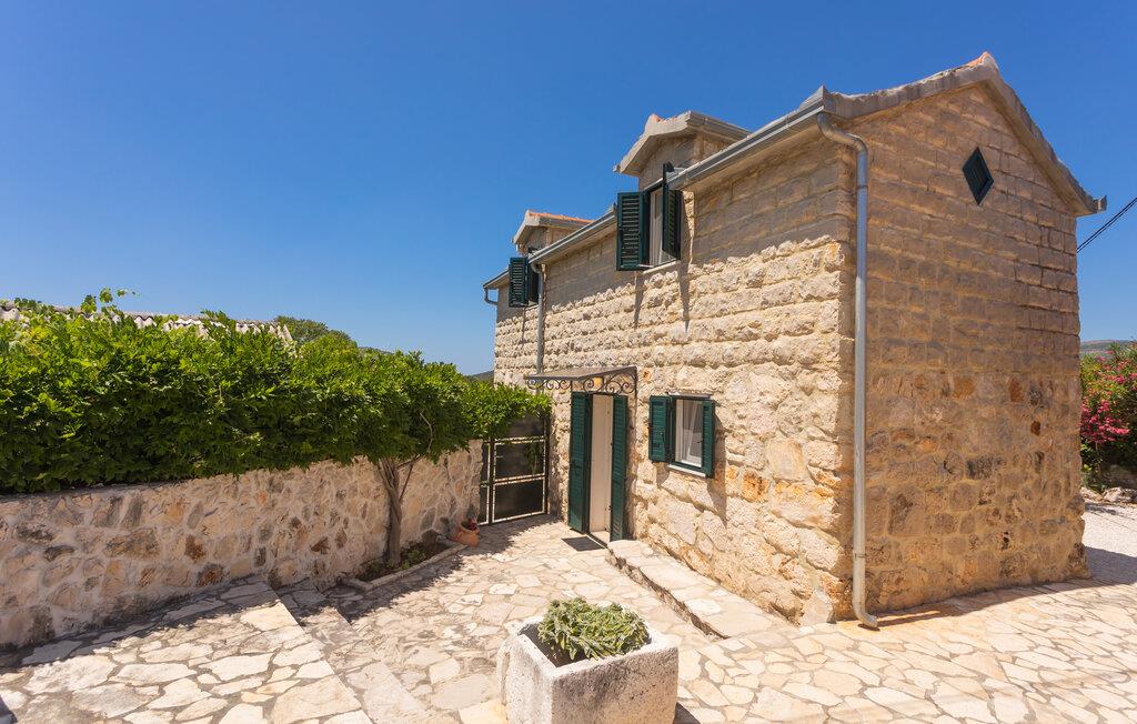 Dette charmerende feriehus kombinerer traditionel stenarkitektur med moderne komfort og ligger beliggende på en frodig bjergskråning med havet i det fjerne. Indenfor finder I en komfortabel opholds- og spisestue med et praktisk køkken.