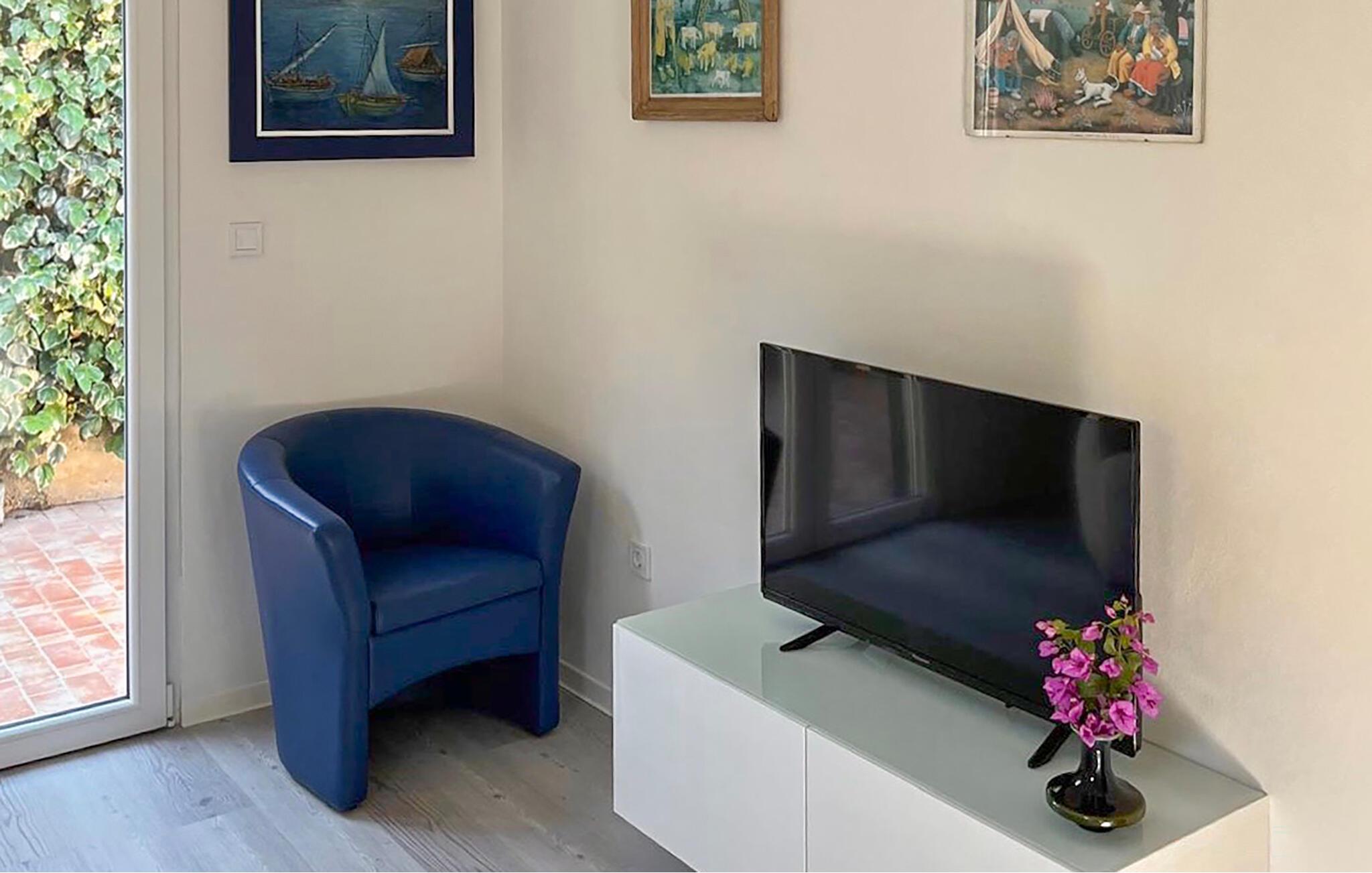 Fra huset kan I nyde en betagende panoramaudsigt over havet, som kun ligger et stenkast fra jeres feriehus. Tag en kort spadseretur til havet og dyk ned i det krystalklare vand.