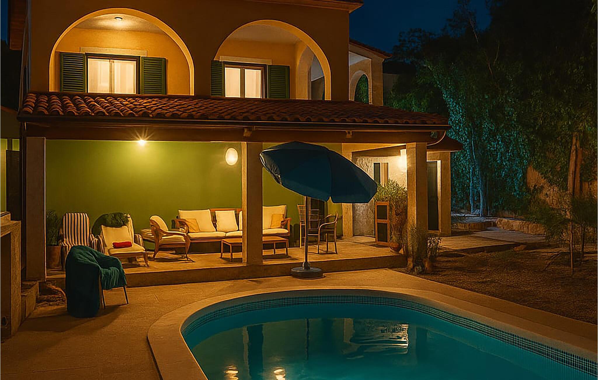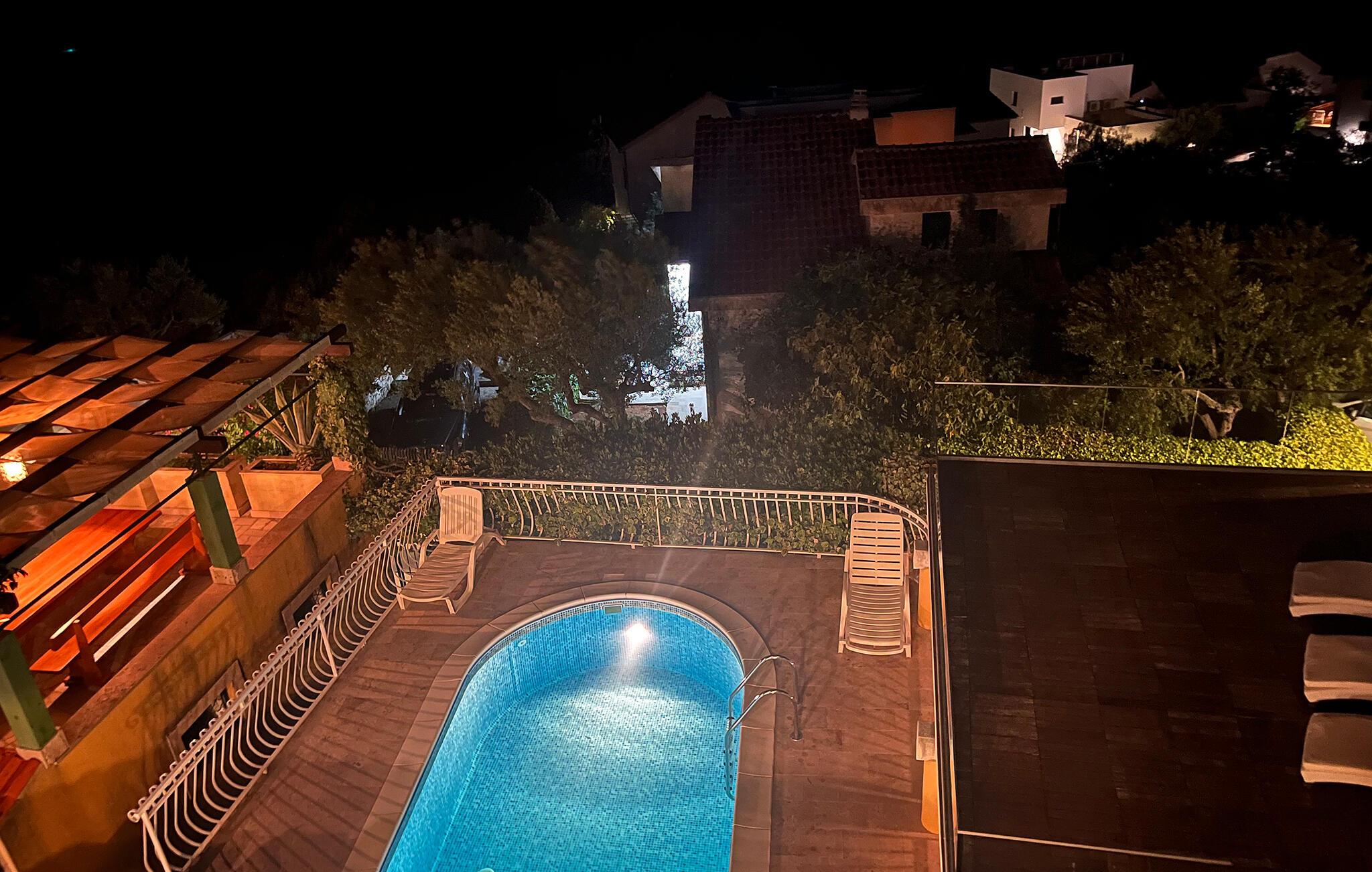 Jeres feriehus i Stivasnica tilbyder jer moderne komfort midt i naturen. Nyd de dejlige faciliteter som den opvarmede pool og den rummelige whirlpool, hvor I kan slappe af efter en dag fuld af oplevelser. Huset giver jer fuldstændig privatliv. Slap af i den hyggelige loungezone og lad sjælen slappe af. Huset strækker sig over to etager og en ekstra stueetage og tilbyder jer masser af plads til at tilbringe en komfortabel ferie med familie eller venner. Benyt den separate studiolejlighed for endnu mere fleksibilitet, ideelt for par eller gæster, der søger lidt mere ro.