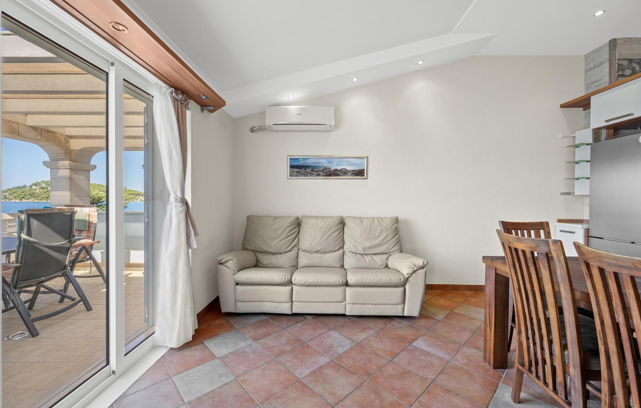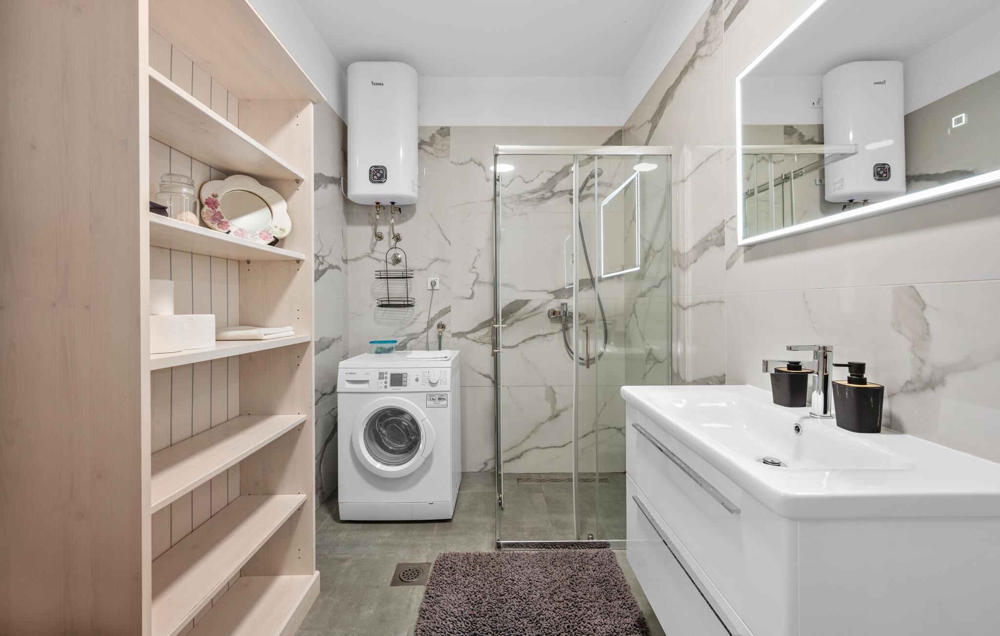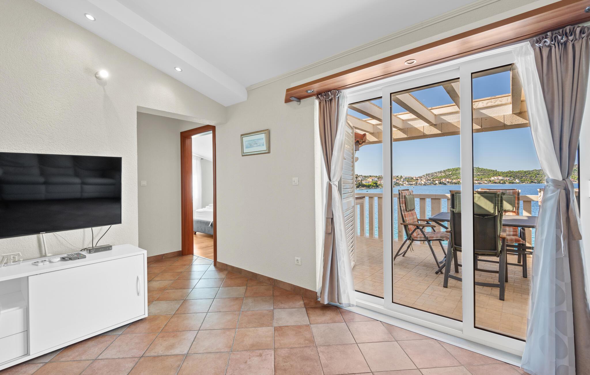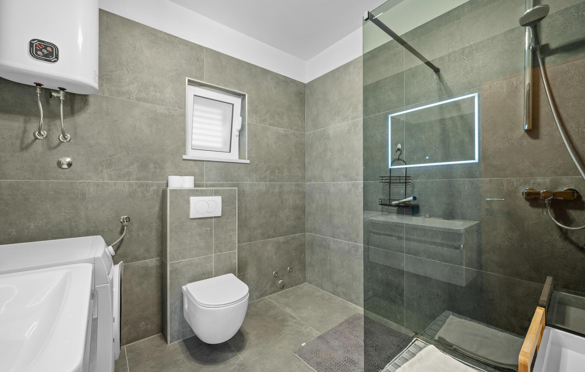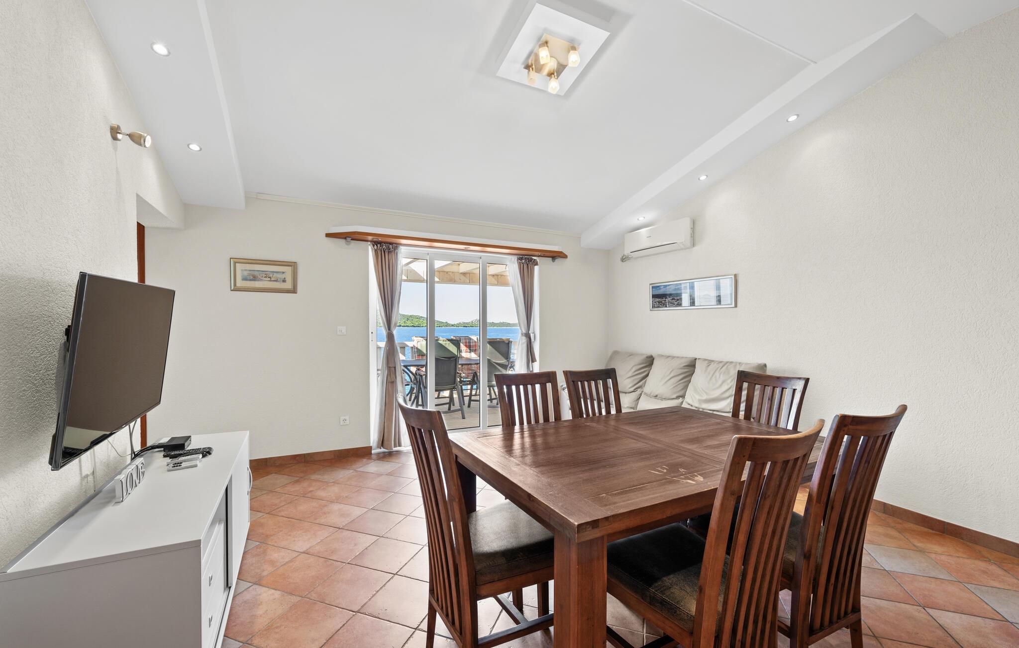 Dyk ned i en autentisk mediterran atmosfære når I nydere jeres sommerferie i dette skønne feriehus med pool i den lille by Kalebova luka i nærheden af Rogoznica. I huset er der tre lejligheder der er forbundet med ydre trapper og I har fælles adgang til terrassen med grill. Der er en skøn børnevenlig kiesstrand i nærheden, mens der lige foran huset er en plateaustrand. Den skønne by Rogoznica ligger på denne halvø, der ikke ligger langt fra Primošten og Šibenik. Besøg naturfænomenerne Drageøjesøen og Frapa, som er en marina der regnes som en af de smukkeste ved Adriaterhavskysten. Vi kan anbefale naturelskere at besøge nationalparkerne Krka og øgruppen Kornati.