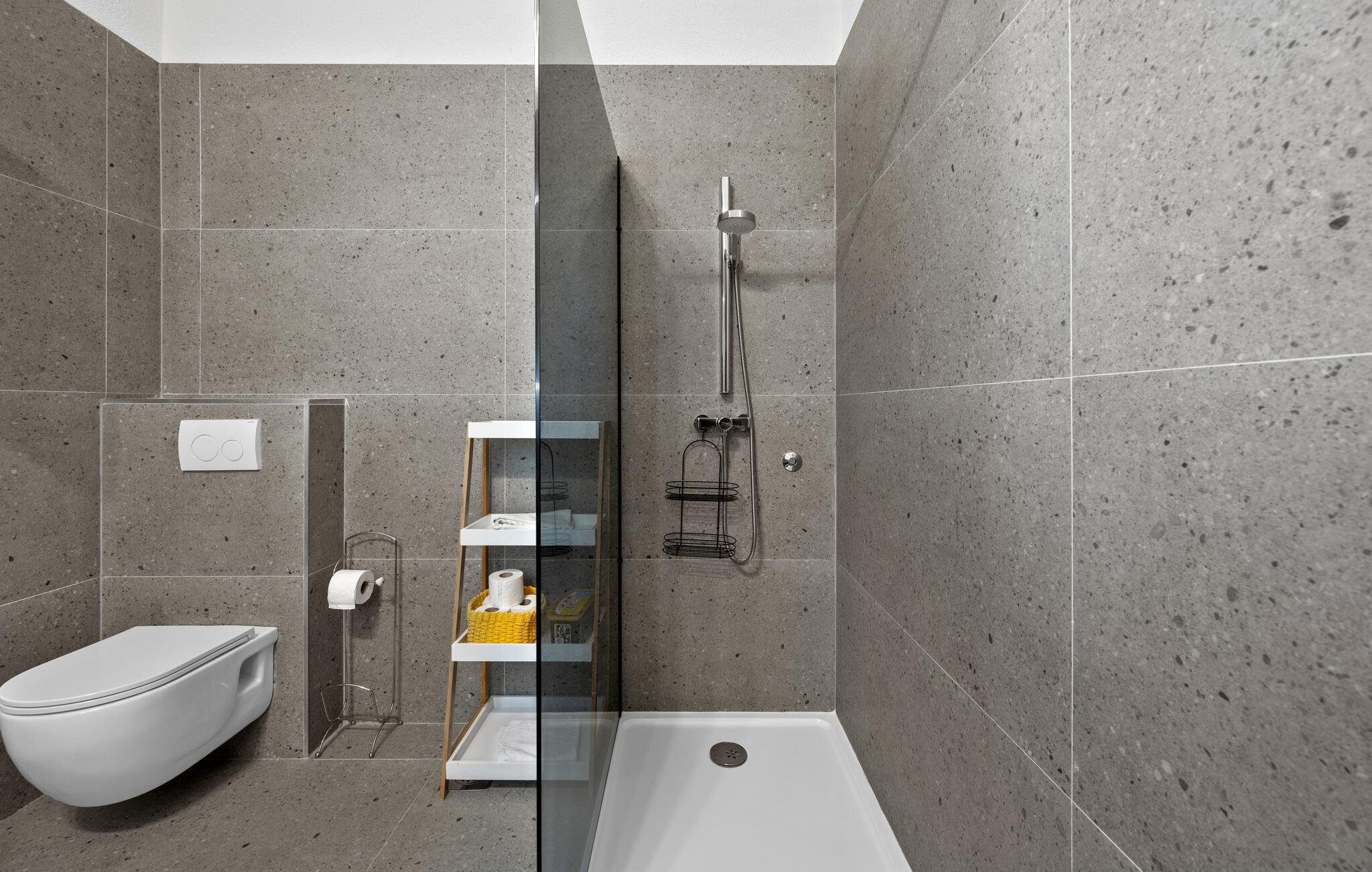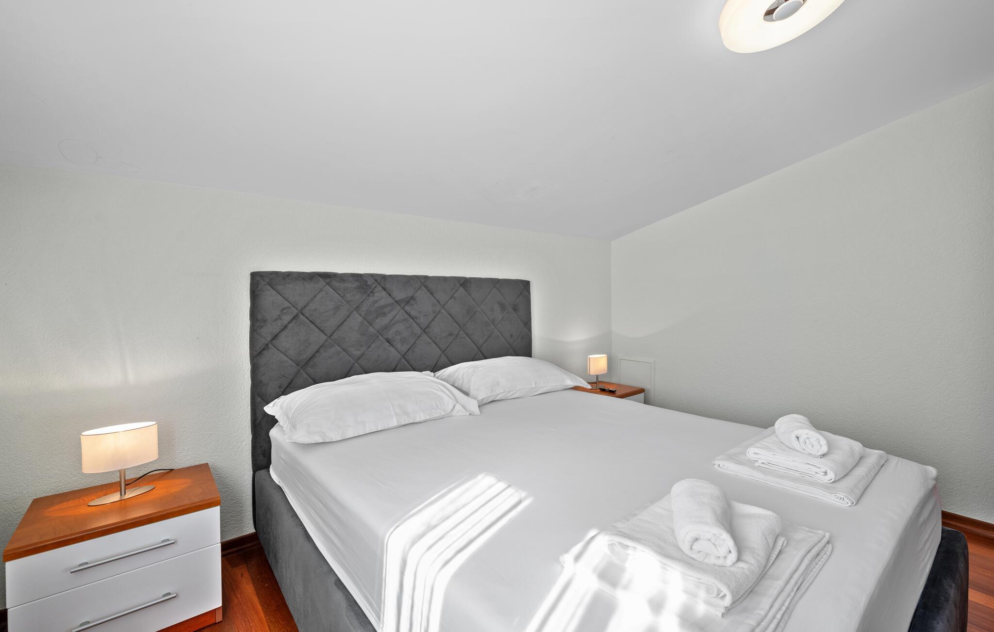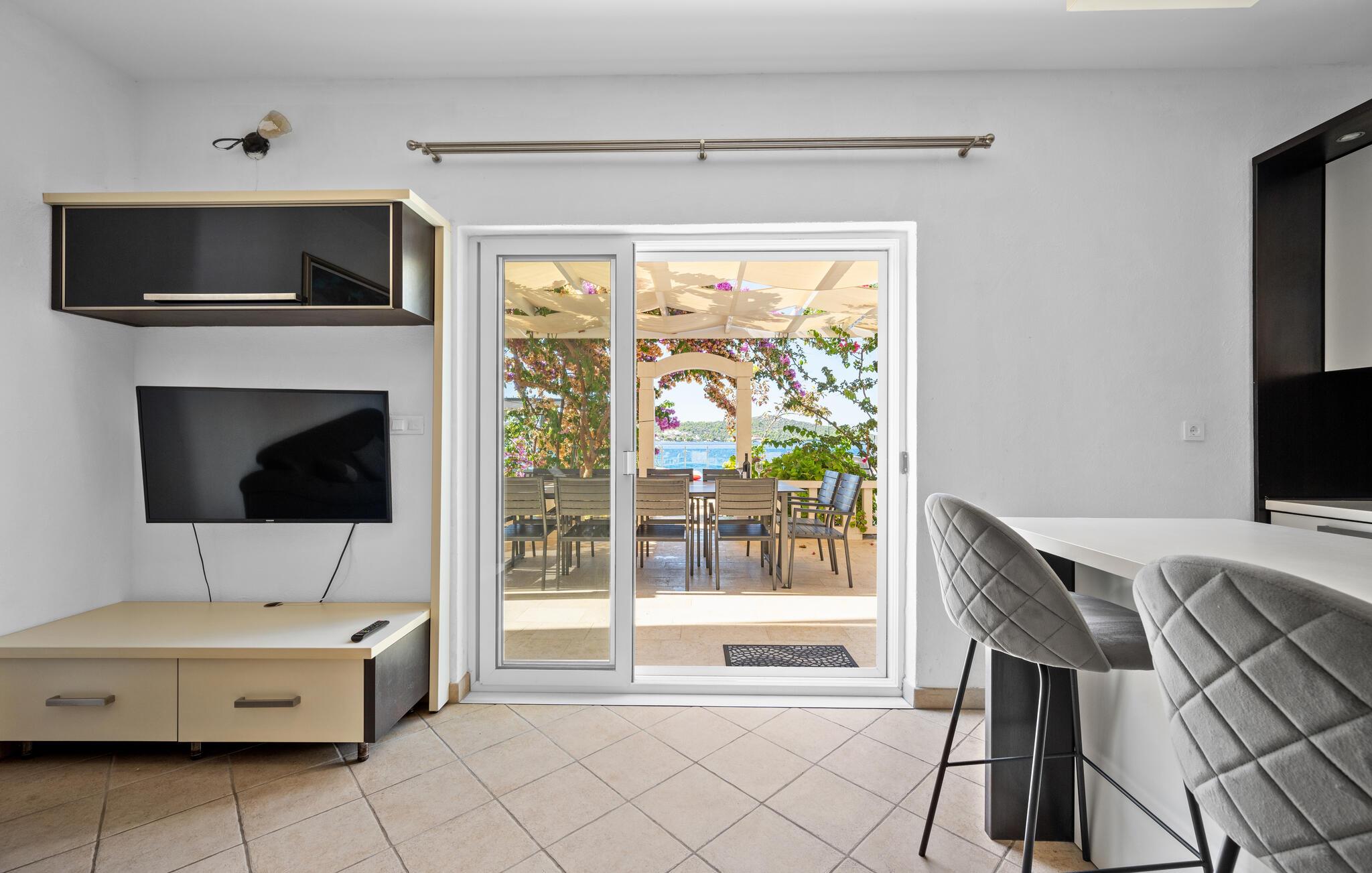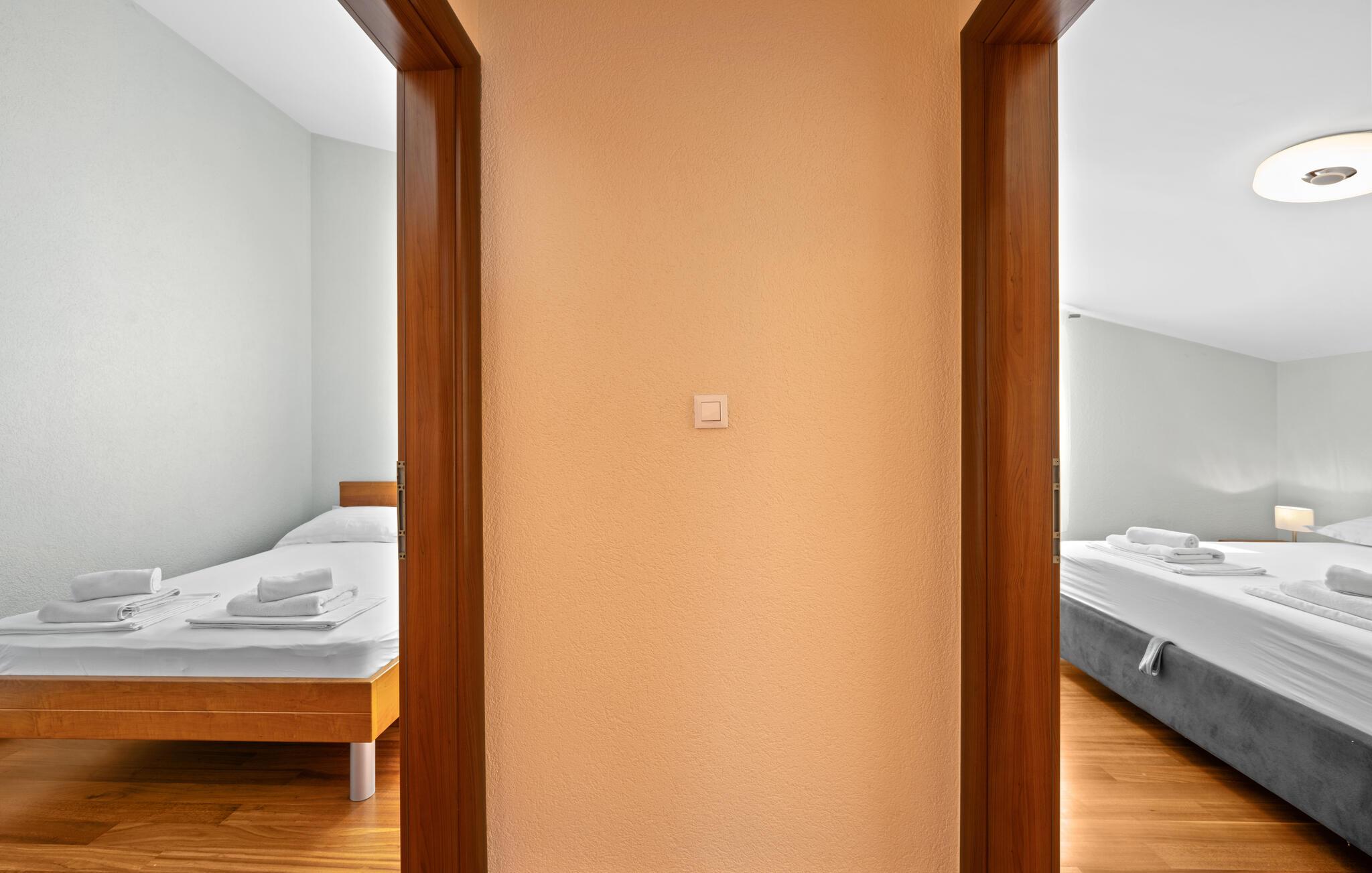 Dyk ned i en autentisk mediterran atmosfære når I nydere jeres sommerferie i dette skønne feriehus med pool i den lille by Kalebova luka i nærheden af Rogoznica. I huset er der tre lejligheder der er forbundet med ydre trapper og I har fælles adgang til terrassen med grill. Der er en skøn børnevenlig kiesstrand i nærheden, mens der lige foran huset er en plateaustrand. Den skønne by Rogoznica ligger på denne halvø, der ikke ligger langt fra Primošten og Šibenik. Besøg naturfænomenerne Drageøjesøen og Frapa, som er en marina der regnes som en af de smukkeste ved Adriaterhavskysten. Vi kan anbefale naturelskere at besøge nationalparkerne Krka og øgruppen Kornati.