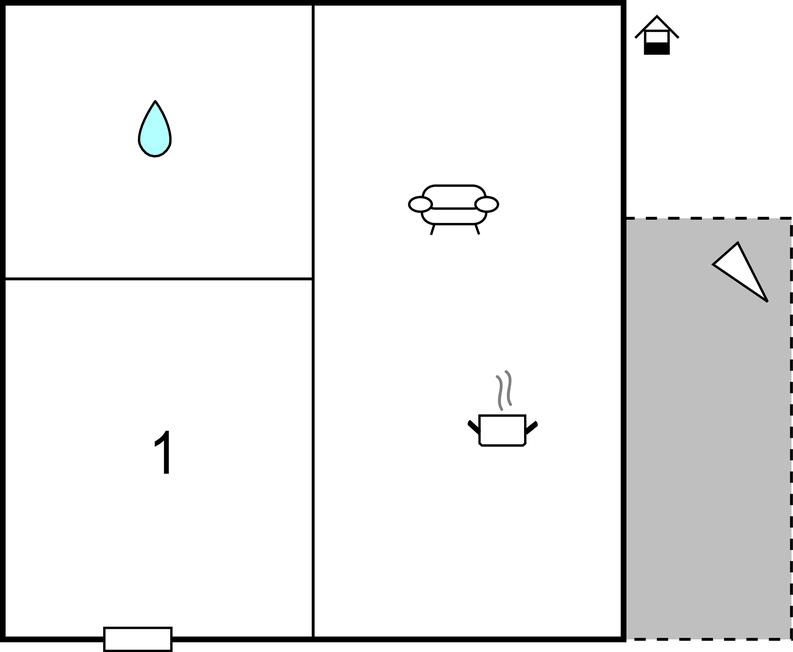 Opholdsstue/køkken 25m2 - 2 Sovepladser. (Sofa, madras eller lignende).