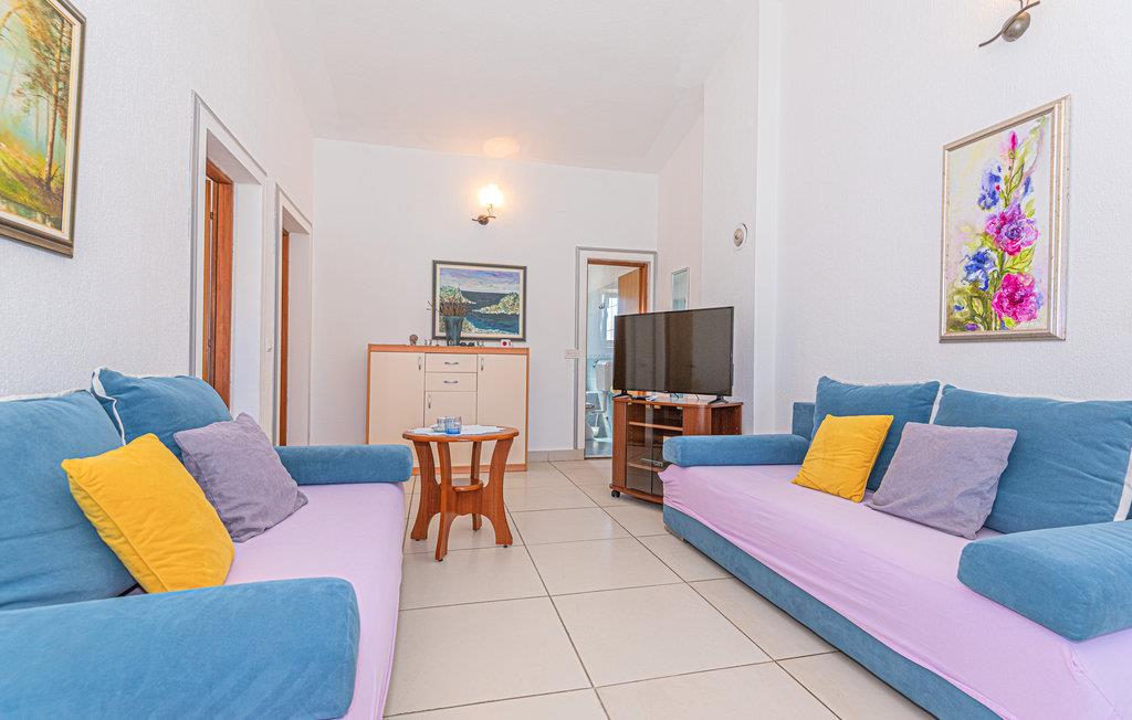 Der er ikke langt til havet når I bor i en af disse to dejlige ferielejligheder på første etage i en velplejet ejendom. Til hver lejlighed hører tre parkeringspladser samt en terrasse med underskøn udsigt over havet og omgivelserne. Der er god plads på Kanicas strande, med hvide kiesstrande der ligger ud til det flade turkisblå hav. Ideelt især til børnefamilier. Der er også en plateaustrand – betonplader – der er fin til solbad og klippestrande der er elsket af de der vil snorkle og dykke.