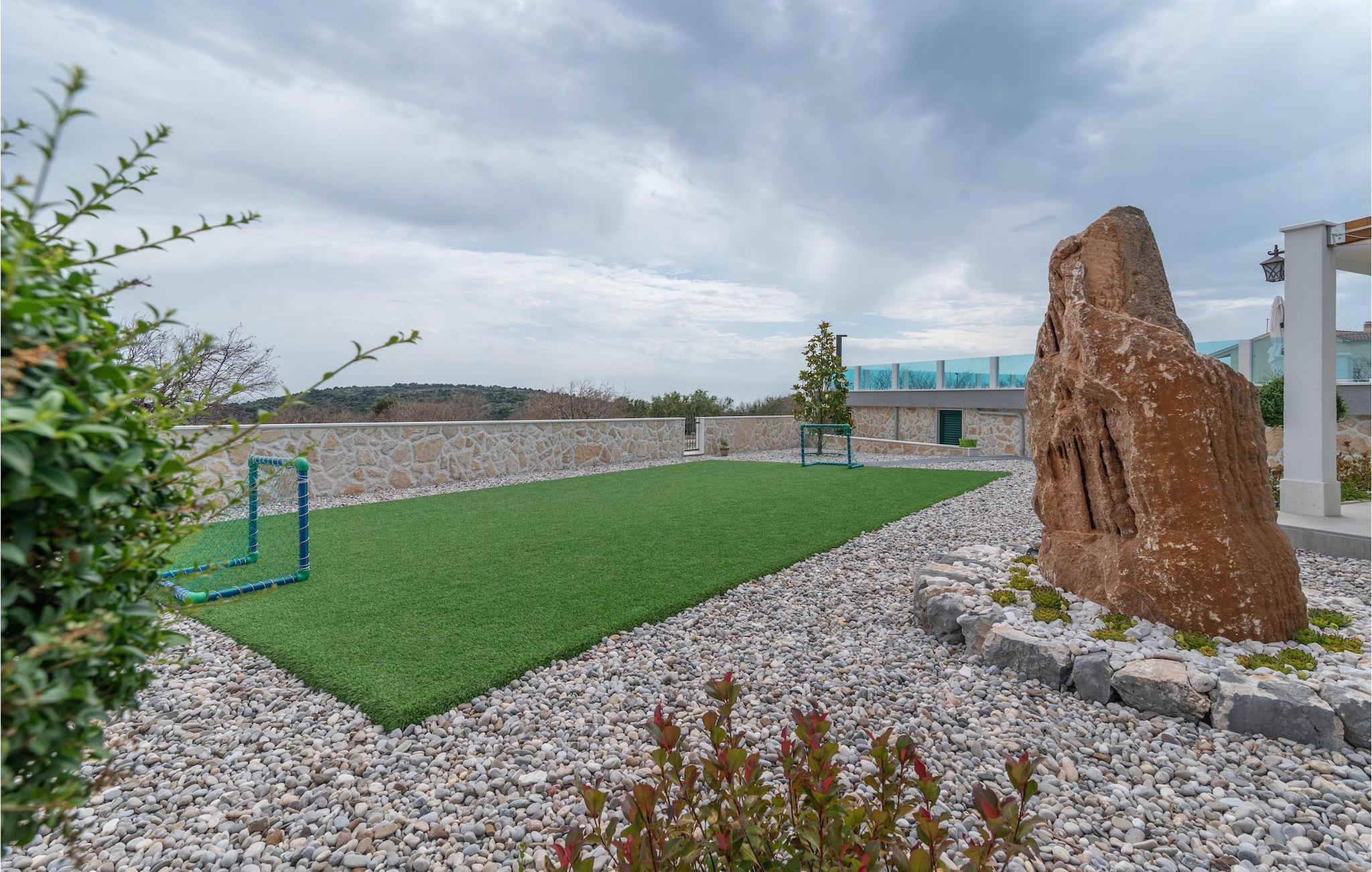 I vågner op og vil gerne køle af i det forfriskende bassin med spabad, mens jeres morgenmad tilberedes i udekøkkenet - selvfølgelig, da alt står til rådighed, inklusive sauna og fitnesscenter. For unge og gamle fodboldfans er der en grøn græsplæne, og bolden og privatlivets fred er sikret, da jeres villa er fuldstændig indhegnet.