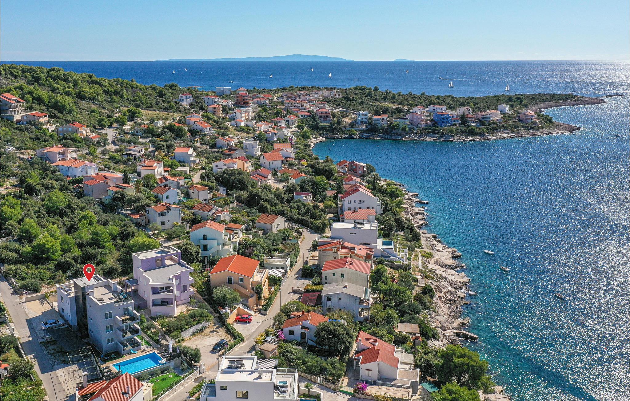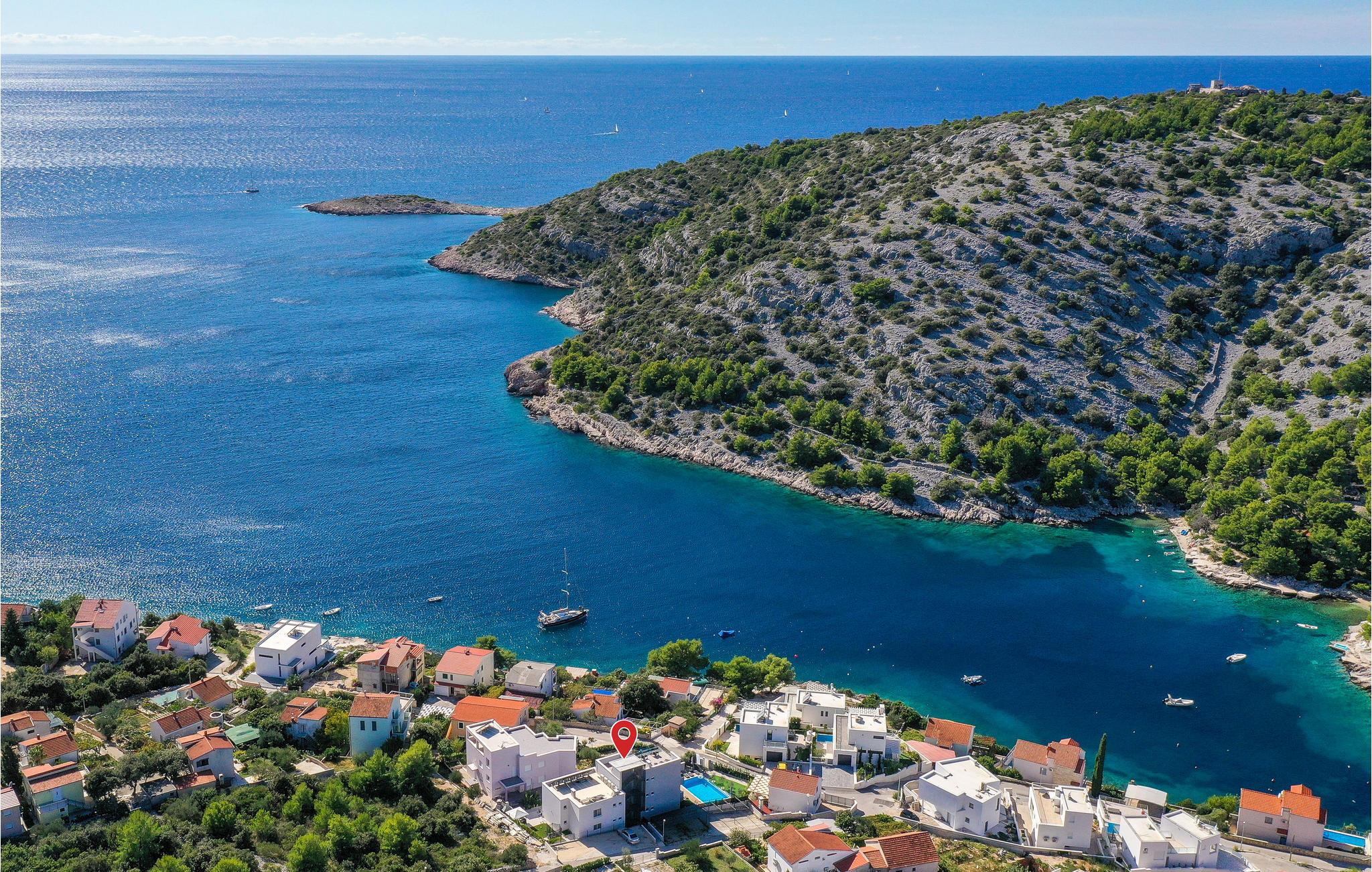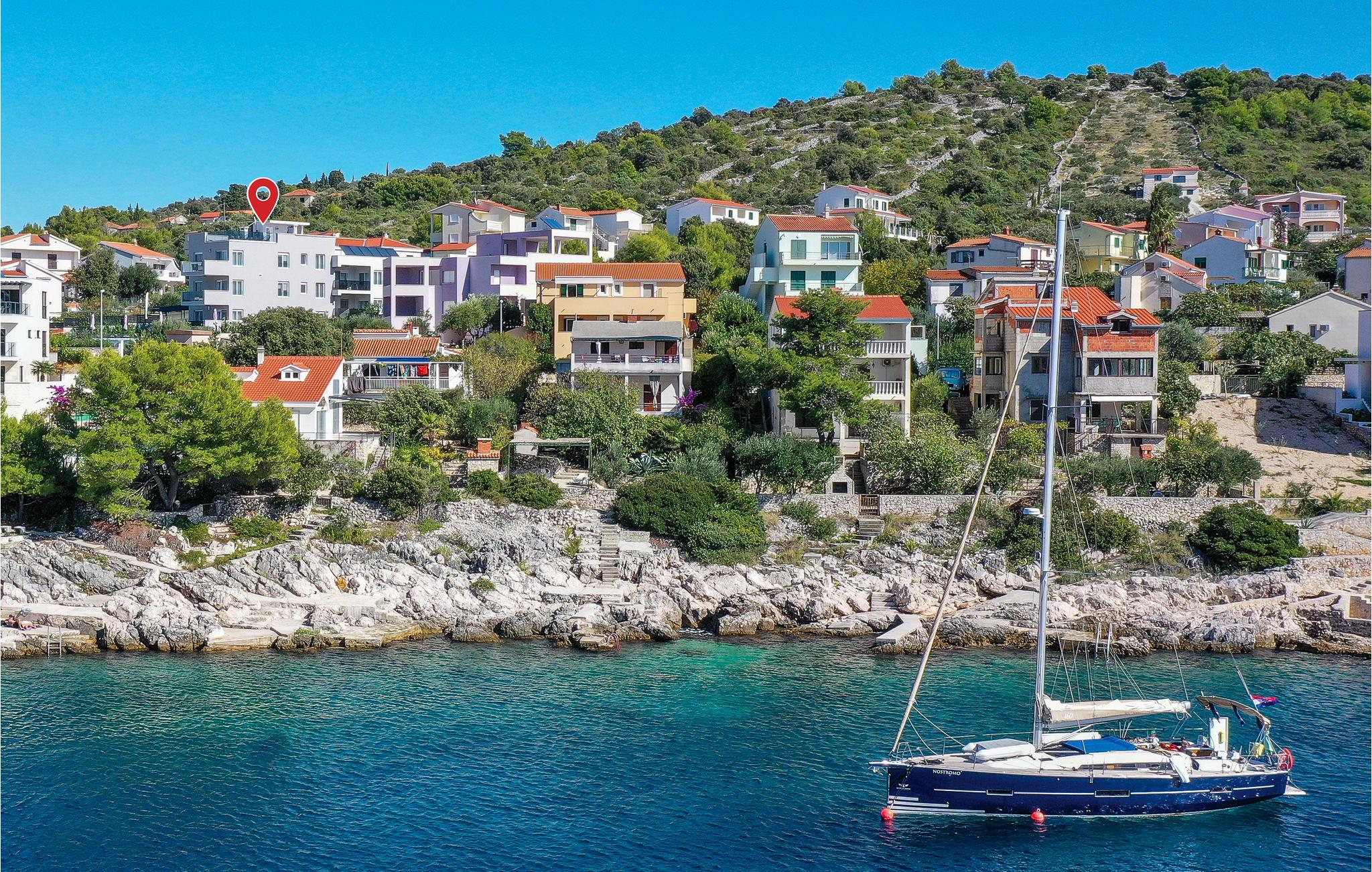 Huset ligger ud til en rolig bugt, som er et populært rejsemål for familier. Det tager kun 15 minutter at køre til Trogir og Primosten, der begge er med på UNESCOs verdensarvsliste på grund af deres unikke historiske seværdigheder. Det er også oplagt at tage en tur til de nærliggende nationalparker Krk og Kornatiøerne.