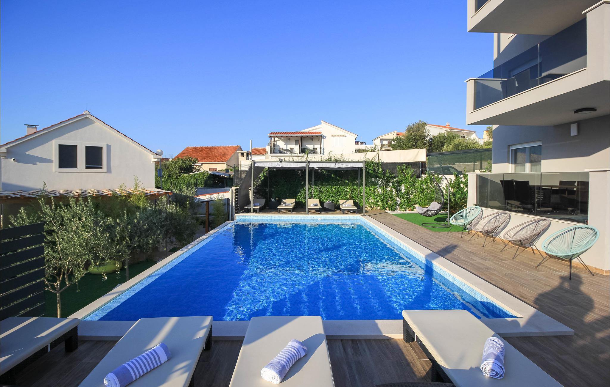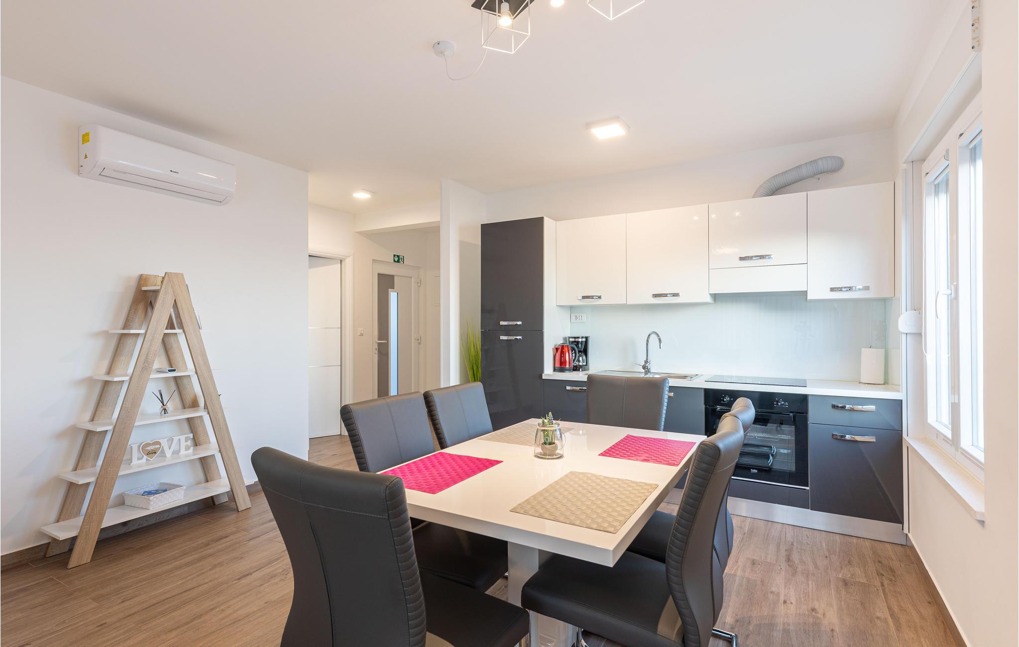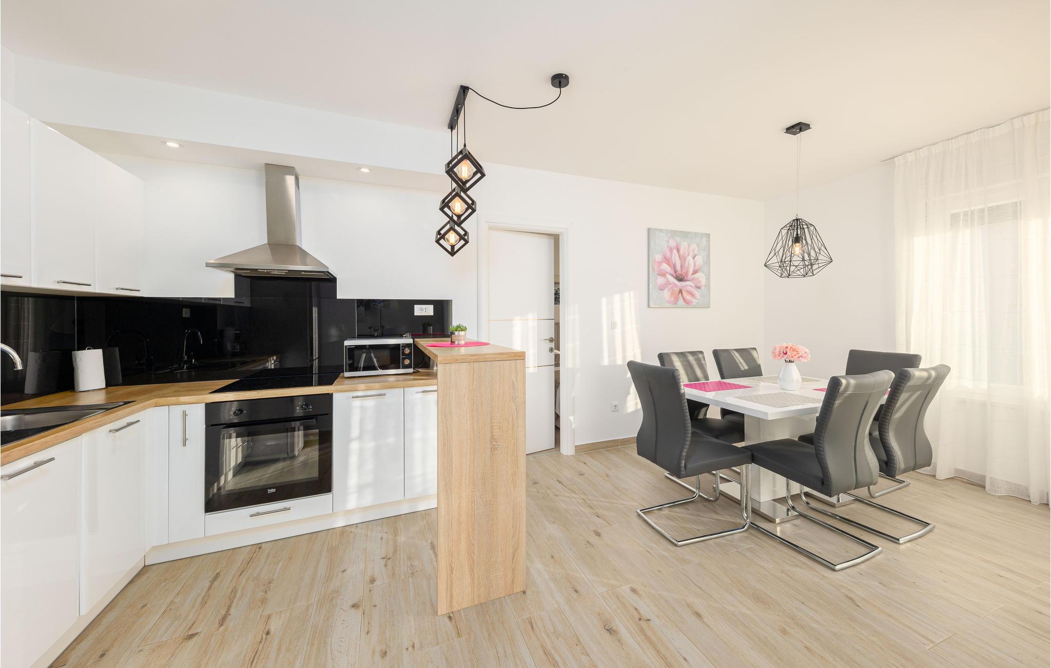Huset ligger ud til en rolig bugt, som er et populært rejsemål for familier. Det tager kun 15 minutter at køre til Trogir og Primosten, der begge er med på UNESCOs verdensarvsliste på grund af deres unikke historiske seværdigheder. Det er også oplagt at tage en tur til de nærliggende nationalparker Krk og Kornatiøerne.