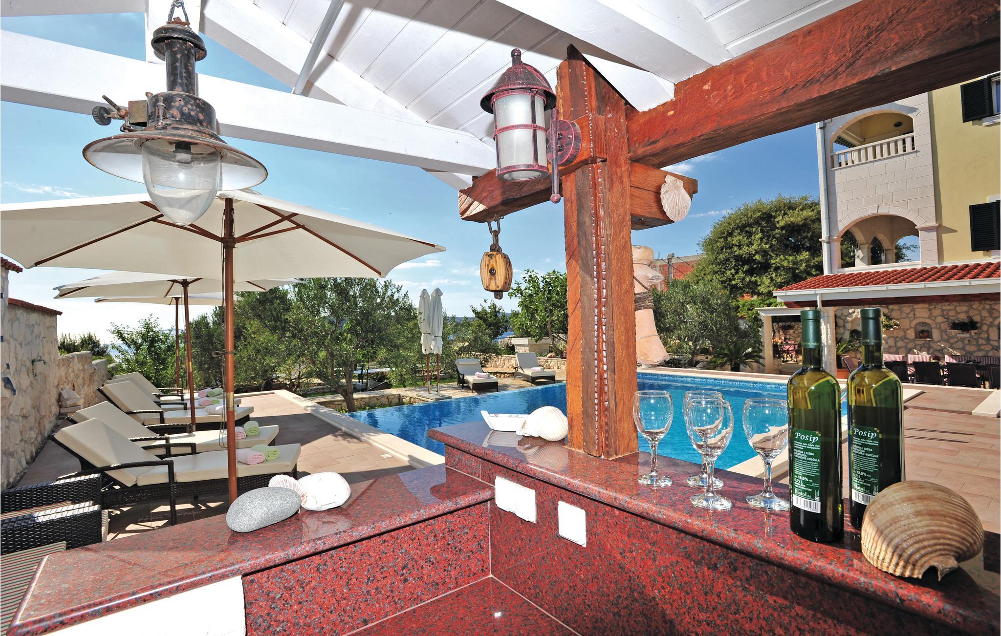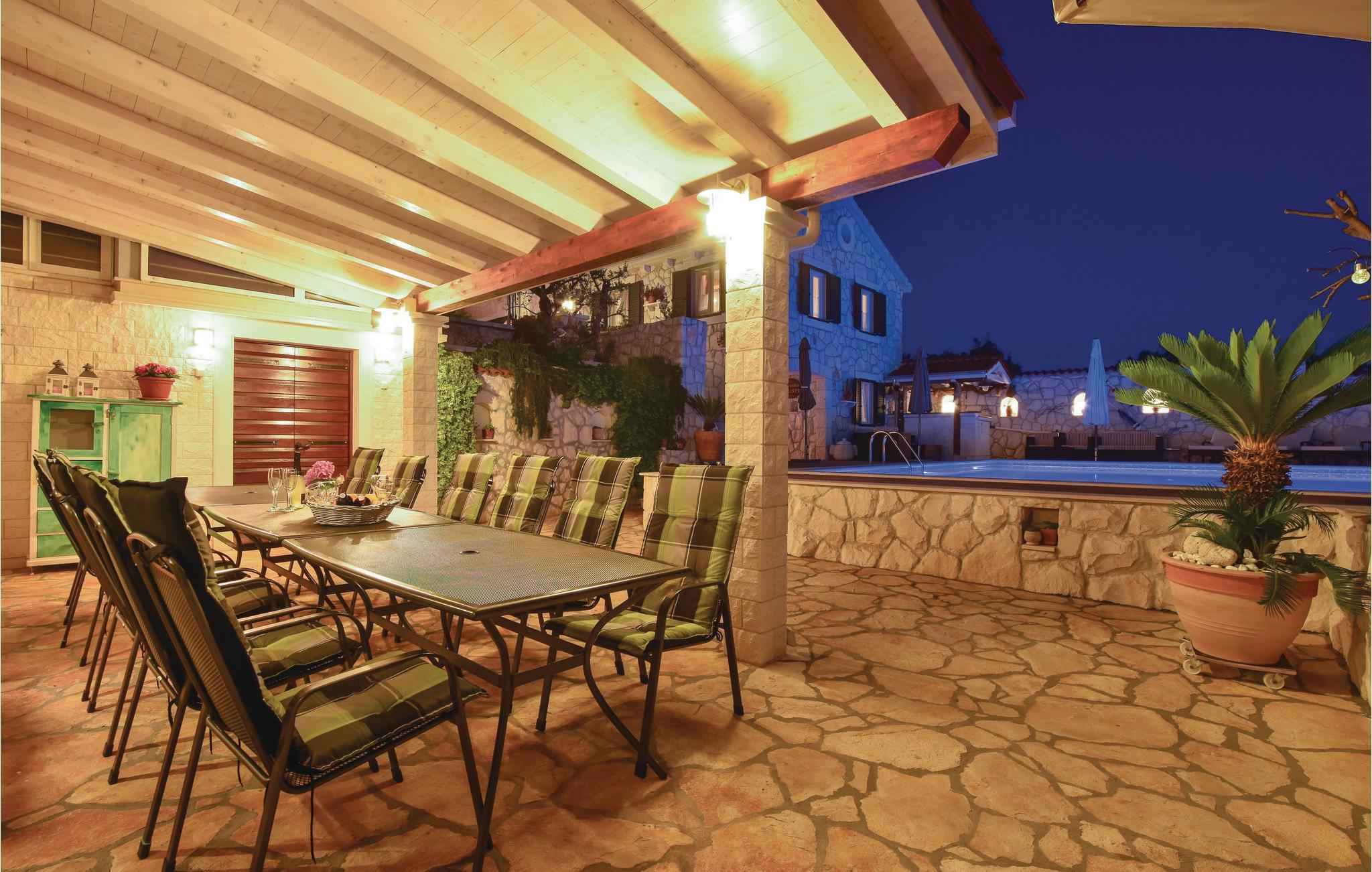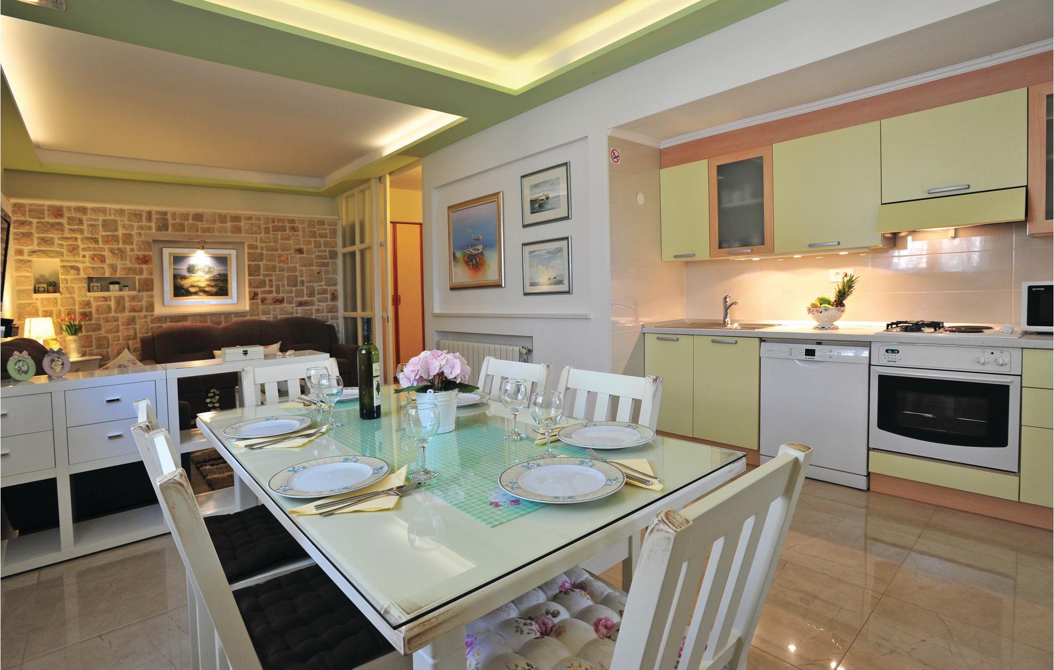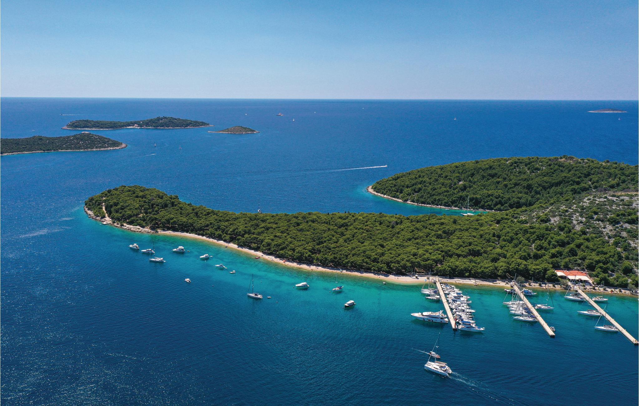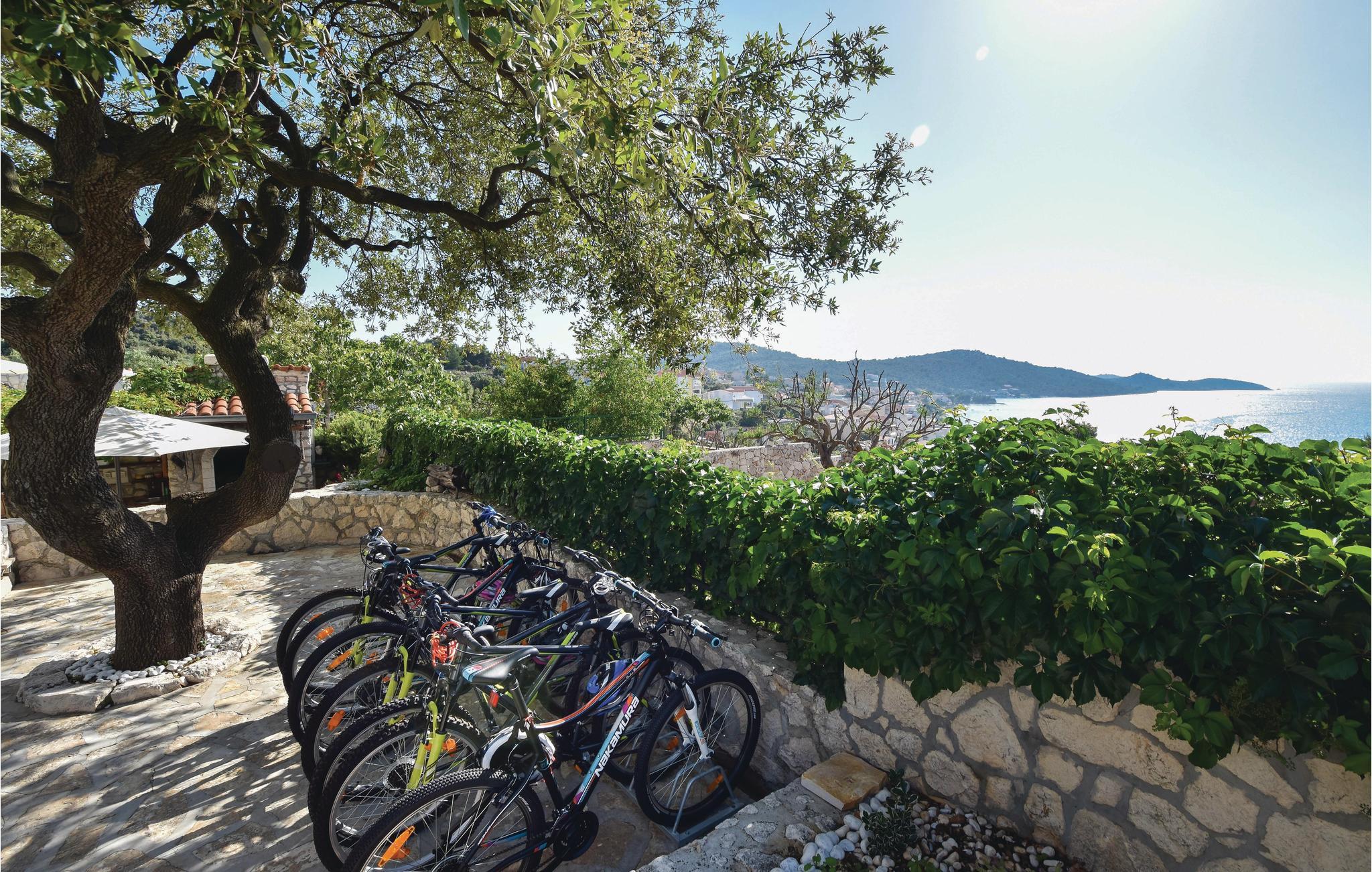 Denne grund med to huse er ideel til en skøn ferie og til den lidt større familiesammenkomst under varme himmelstrøg. I det ene hus er der tre fuldt udstyrede lejligheder, mens der i det andet er indrettet to taverner i dalmatisk stil. Tavernen i stueetagen fungerer som opholdsrum. En stor terrasse med pool ligger foran tavernen i stueetagen og inviterer til dejlige familiestunder med hyggelige måltider, kolde drinks og vandsjov for store og små. Læg jer på en solstol under parasollen og luk øjnene, mens I mærker ferielykken strømme igennem jer. Fra flere terrasser er der en betagende panoramaudsigt over havet. På naturgrunden er der et væld af legeredskaber, som jeres børn kan muntre sig med i løbet af dagen. Tag en pause fra poolen og spring i havet fra klipperne. Lige i nærheden er der desuden stier til vandring og cykling samt mountainbikeruter, der alle fører jer gennem skøn natur.