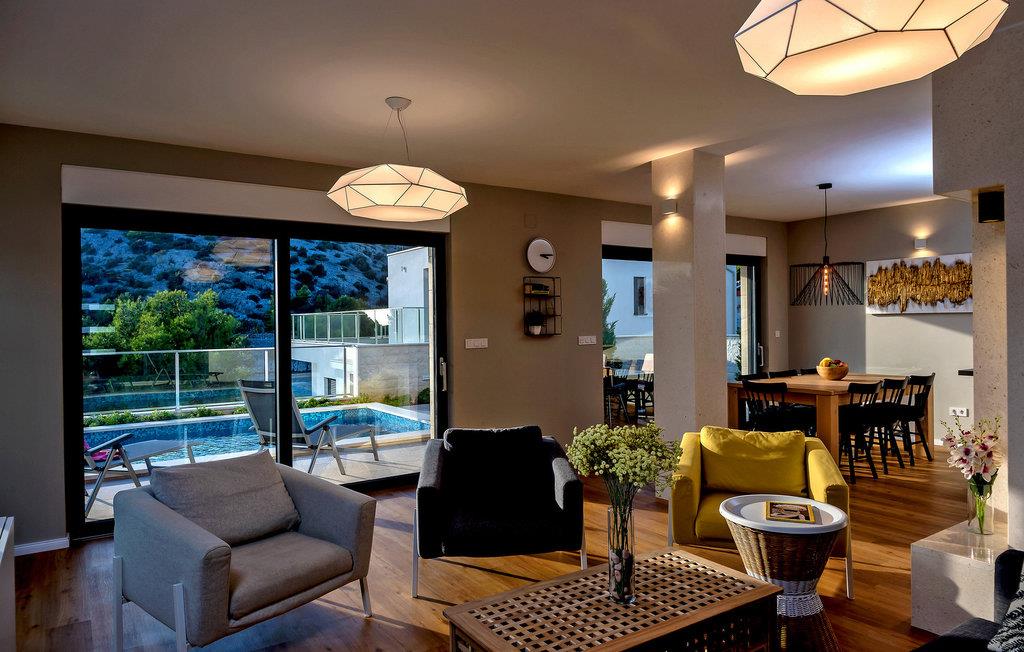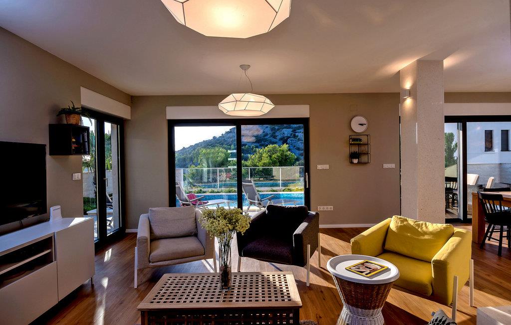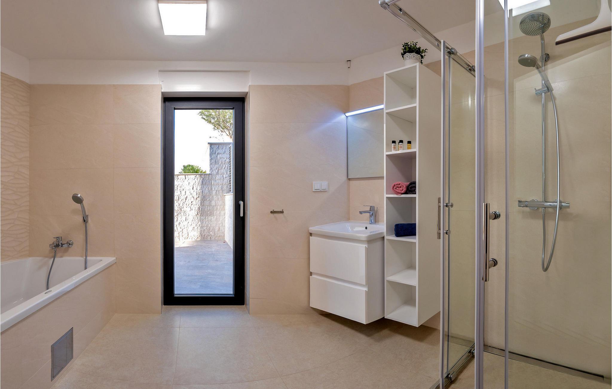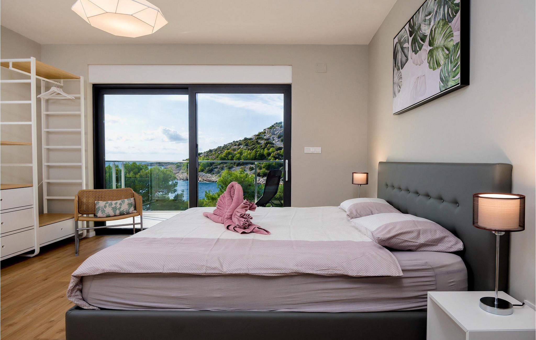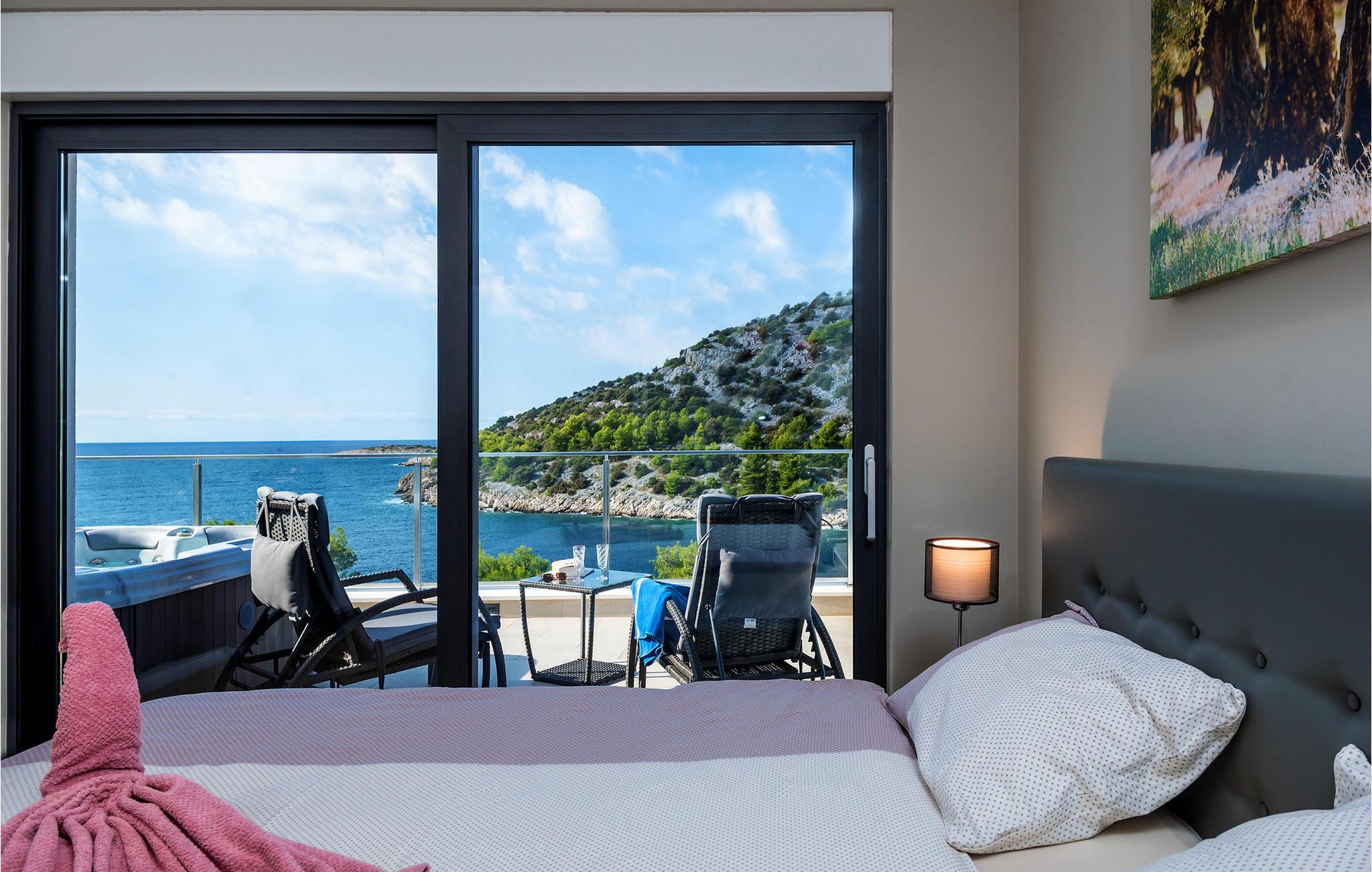 Nyd en betagende udsigt over den maleriske Stivašnica-bugt fra denne stilfulde villa. Den moderne Villa Tatjana er noget særligt med sit lyse design og tilbyder en elegant boligstemning med masser af komfort. Det åbne, fuldt udstyrede køkken med tilstødende spiseplads lægger op til at tilbringe tid sammen, mens den hyggelige stue med pejs skaber en varm atmosfære. Udover flere soveværelser med fantastisk havudsigt tilbyder huset et tiltalende underholdningsprogram. Spil billard, dart eller bordtennis, og hæng ud i de smukt indrettede stuer. På den rummelige terrasse, i den opvarmede pool eller i spabadet på tagterrassen - her finder I adskillige steder til afslapning og mindesmærker. Hvis I foretrækker at svømme i havet, kan I blot tage til stranden foran villaen og nyde en forfriskende dukkert i fuldstændig privatliv. Området omkring Ražanj er et paradis for naturelskere og aktive feriegæster. Tag på vandreture langs kysten eller udforsk den fascinerende undervandsverden, mens I dykker. De nærliggende byer Rogoznica og Primošten lokker med historiske gader, traditionelle restauranter og charmerende havne. Dagsture til Krka Nationalpark eller den UNESCO-beskyttede by Trogir er også et besøg værd og tilbyder fascinerende indblik i dalmatisk kultur og natur. Bemærk venligst: Ejendommen accepterer ikke ungdomsgrupper under 30 år eller polterabender. Bookinger fra sådanne grupper vil blive afvist, selv ved ankomst eller under opholdet, uden refusion.