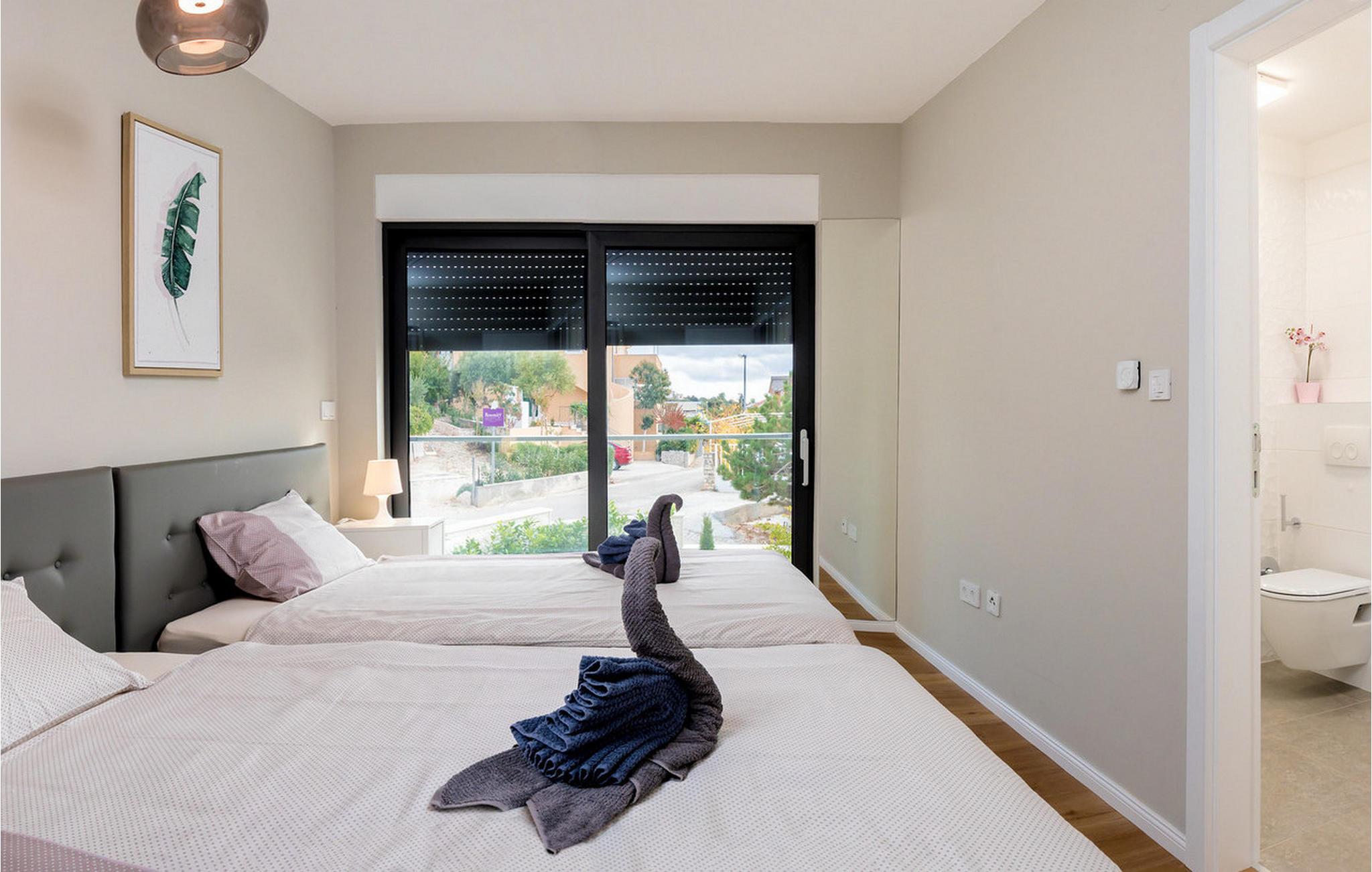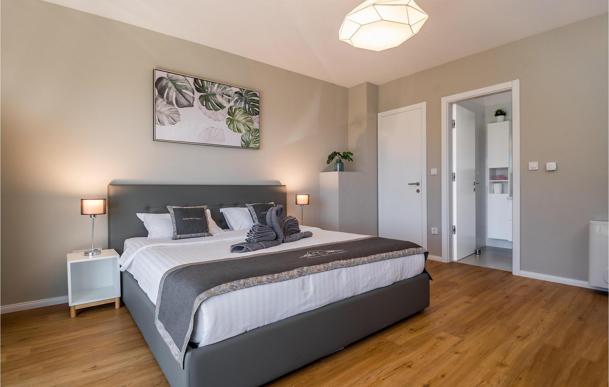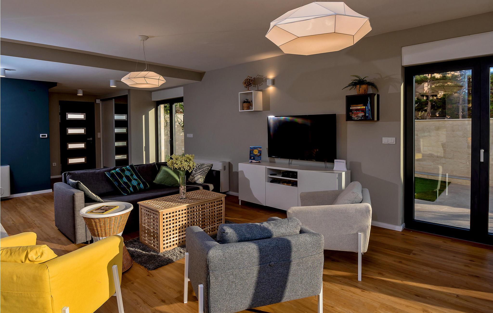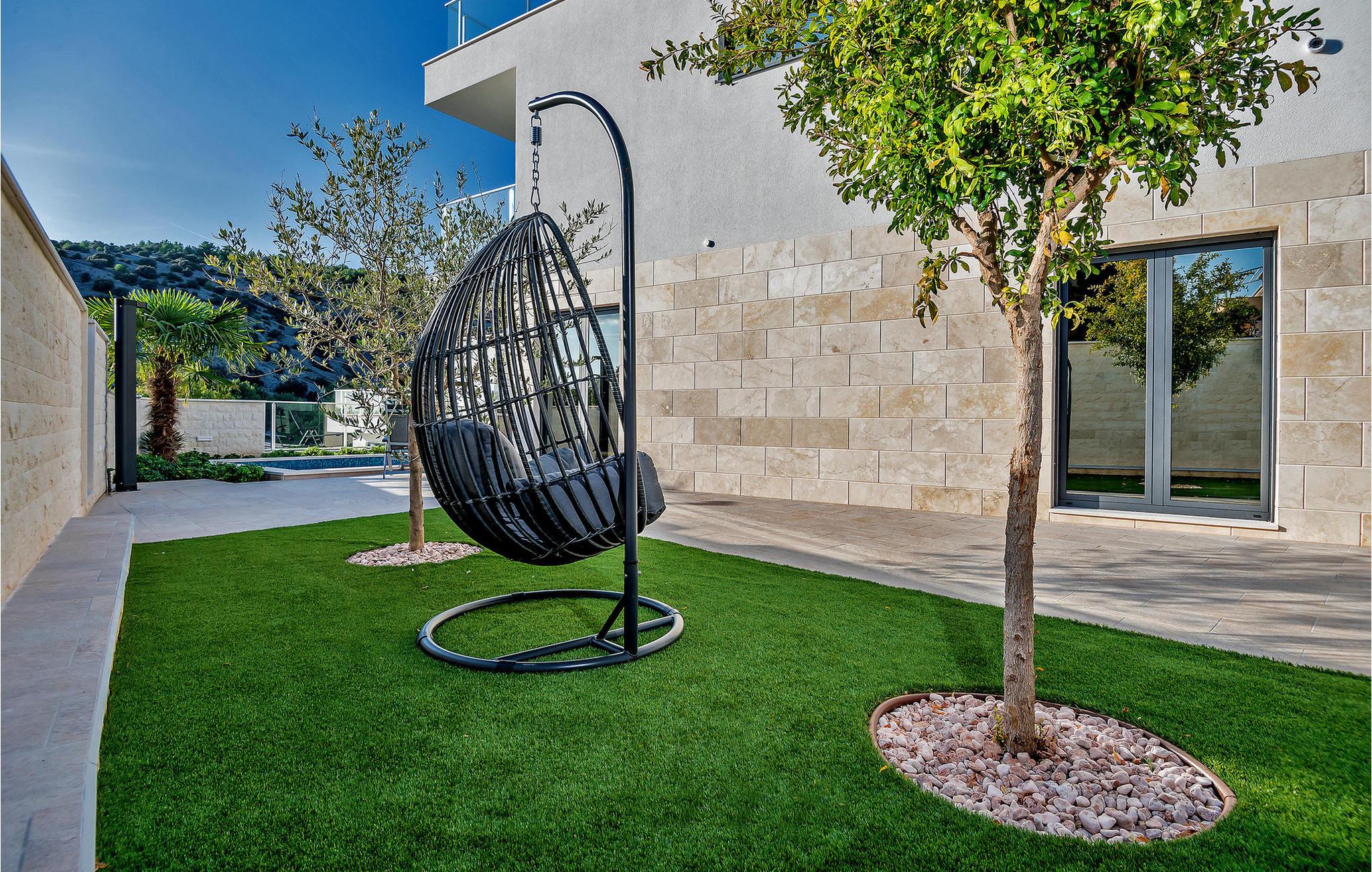 Nyd en betagende udsigt over den maleriske Stivašnica-bugt fra denne stilfulde villa. Den moderne Villa Tatjana er noget særligt med sit lyse design og tilbyder en elegant boligstemning med masser af komfort. Det åbne, fuldt udstyrede køkken med tilstødende spiseplads lægger op til at tilbringe tid sammen, mens den hyggelige stue med pejs skaber en varm atmosfære. Udover flere soveværelser med fantastisk havudsigt tilbyder huset et tiltalende underholdningsprogram. Spil billard, dart eller bordtennis, og hæng ud i de smukt indrettede stuer. På den rummelige terrasse, i den opvarmede pool eller i spabadet på tagterrassen - her finder I adskillige steder til afslapning og mindesmærker. Hvis I foretrækker at svømme i havet, kan I blot tage til stranden foran villaen og nyde en forfriskende dukkert i fuldstændig privatliv. Området omkring Ražanj er et paradis for naturelskere og aktive feriegæster. Tag på vandreture langs kysten eller udforsk den fascinerende undervandsverden, mens I dykker. De nærliggende byer Rogoznica og Primošten lokker med historiske gader, traditionelle restauranter og charmerende havne. Dagsture til Krka Nationalpark eller den UNESCO-beskyttede by Trogir er også et besøg værd og tilbyder fascinerende indblik i dalmatisk kultur og natur. Bemærk venligst: Ejendommen accepterer ikke ungdomsgrupper under 30 år eller polterabender. Bookinger fra sådanne grupper vil blive afvist, selv ved ankomst eller under opholdet, uden refusion.