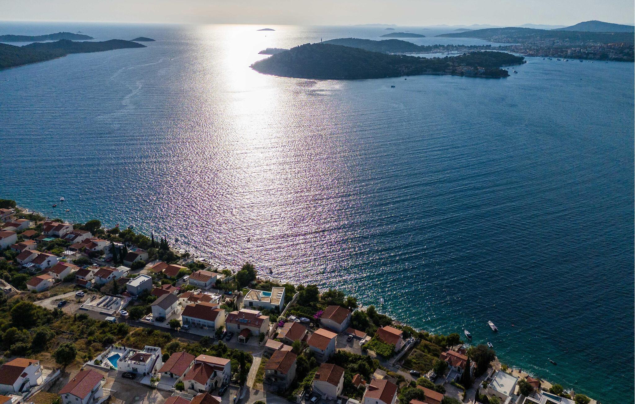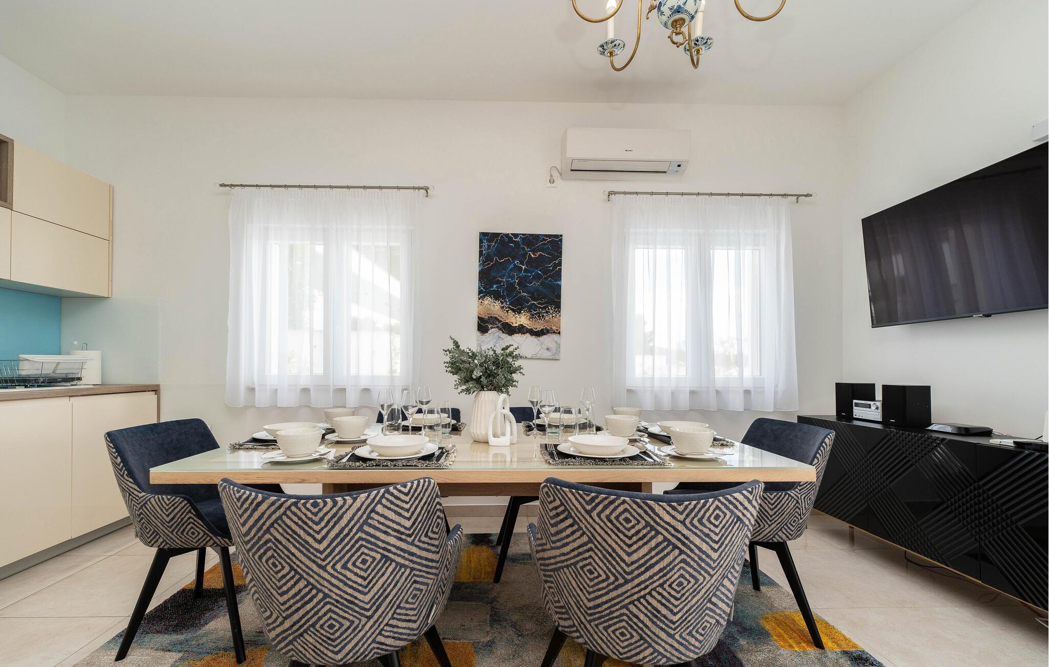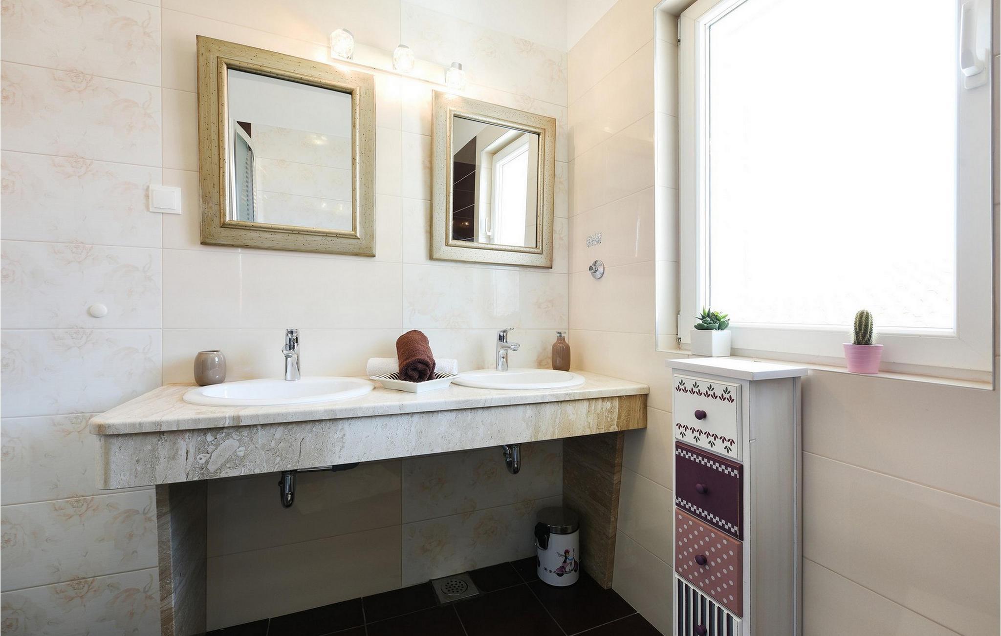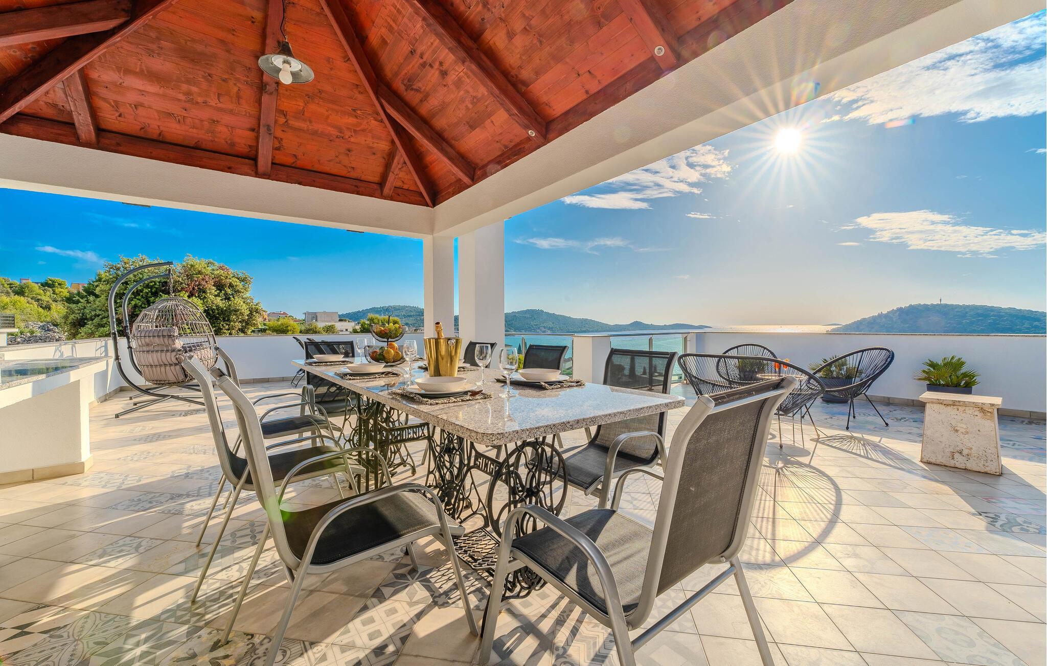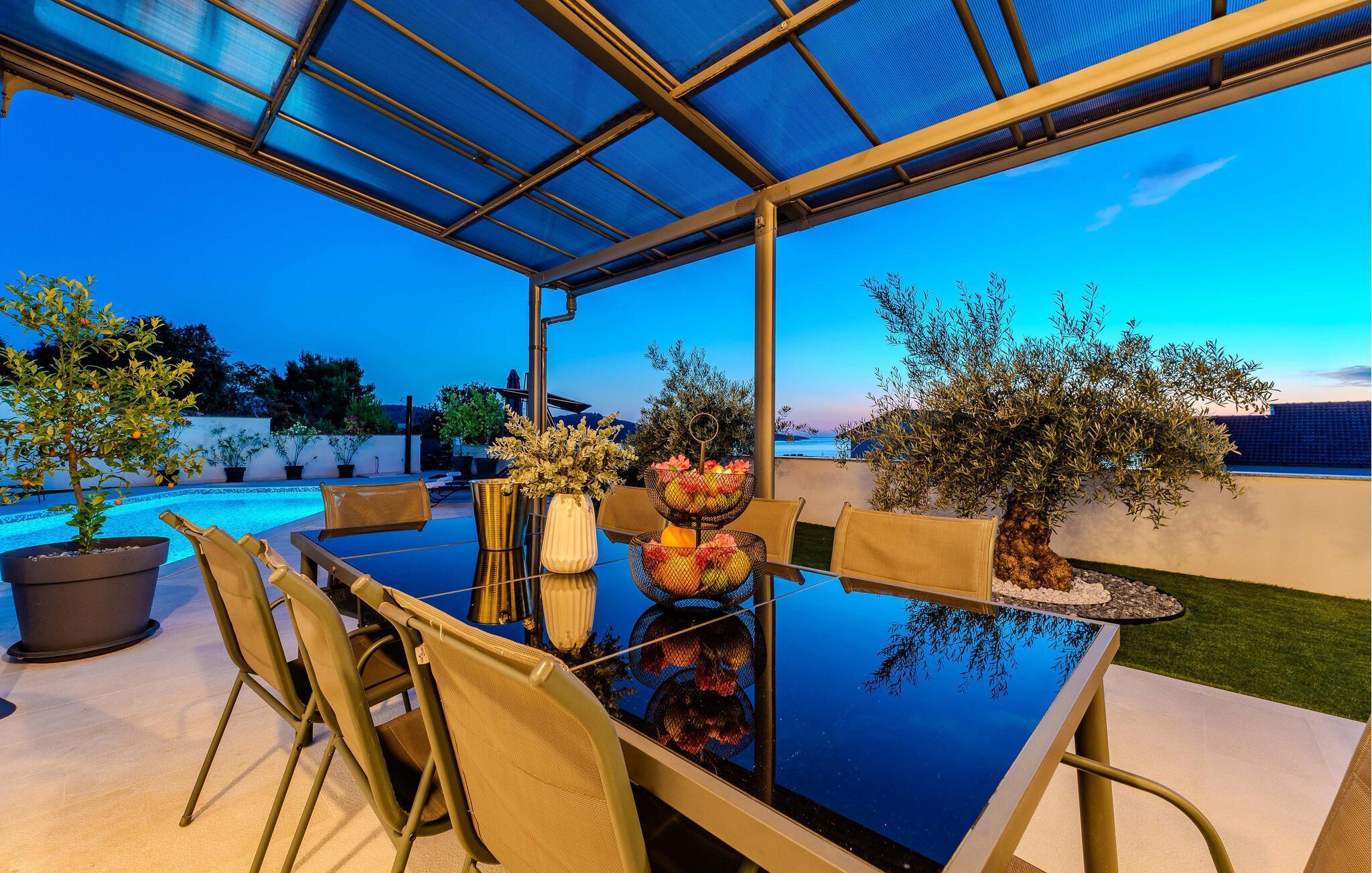 Oplev en uforglemmelig ferie i denne luksuriøse villa med pool og havudsigt. Beliggende på en bakketop tilbyder den moderne Villa Carré Violet en imponerende havudsigt. Det rummelige, lyse interiør strækker sig over tre etager, hvoraf de to første er forbundet med en intern trappe. Store vinduer oversvømmer de stilfulde, møblerede værelser af høj kvalitet med rigeligt naturligt lys. Fremtryll kulinariske lækkerier i det fuldt udstyrede køkken og nyd harmoniske måltider ved det indbydende spisebord. Hav det sjovt ved poolbordet, dyst ved bordfodboldbordet eller spil et spil bordtennis, før I nyder en god nats søvn i de rummelige soveværelser. Det elegante udendørsområde byder på flere højdepunkter. snup en frisk dukkert i den storslåede pool og slap af på de komfortable liggestole eller i gyngen på verandaen. Den smukke terrasse på øverste etage forkæler jer med en betagende udsigt over havet, bugten og Rogoznica. Her kan I nyde uforglemmelige solnedgange og stemningsfulde grillaftener med vin og stearinlys. De nærliggende stenstrande er rolige og ideelle for børn. For mere action, tag til Rogoznica centrum om sommeren, hvor fremragende restauranter og hyggelige taverner sørger for underholdning. De historiske byer Trogir, Split og Šibenik er også værd at udforske, hvor man kan tage en bådtur til Kornati-øerne og de spektakulære vandfald i den nærliggende Krka Nationalpark.