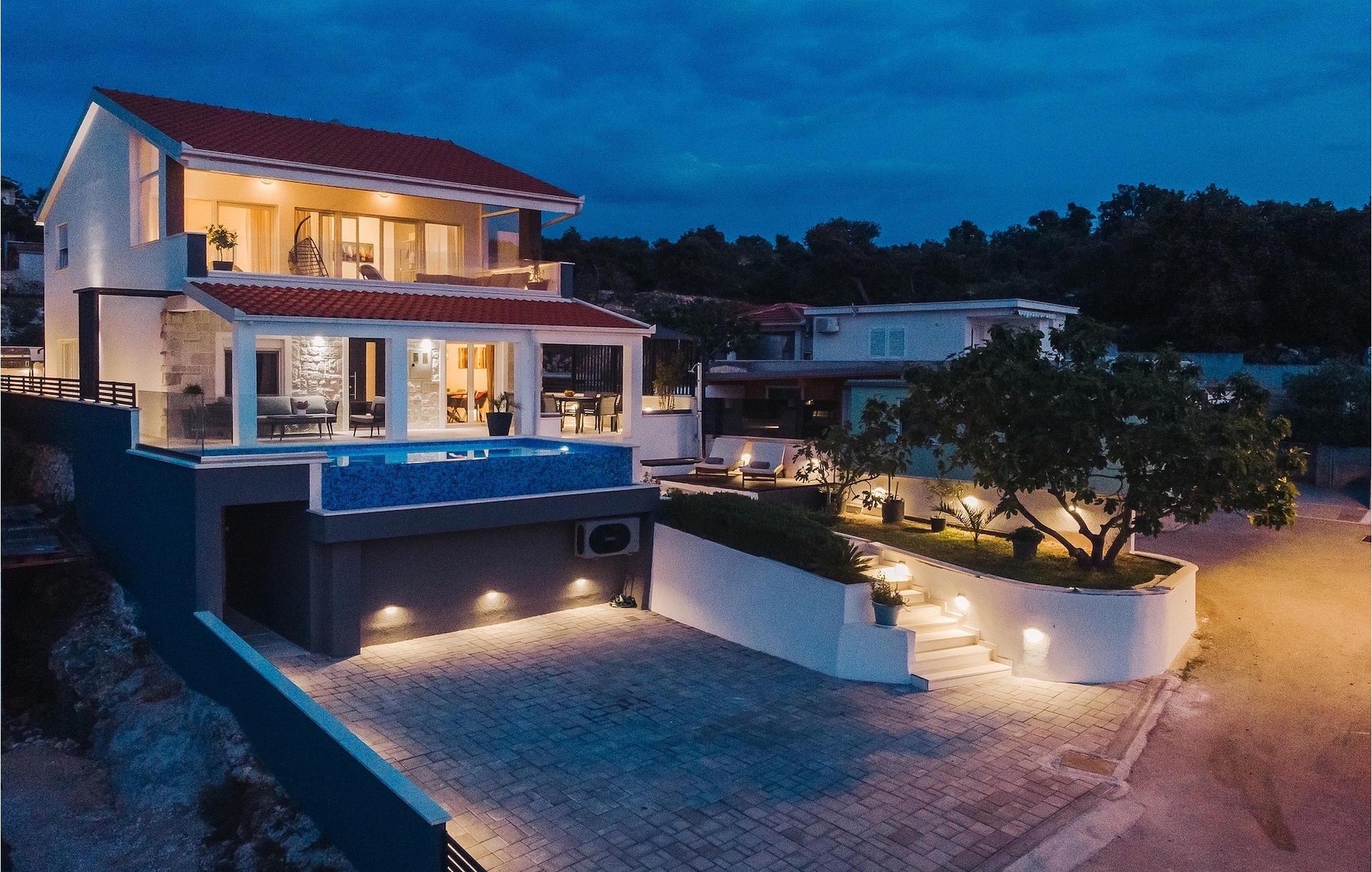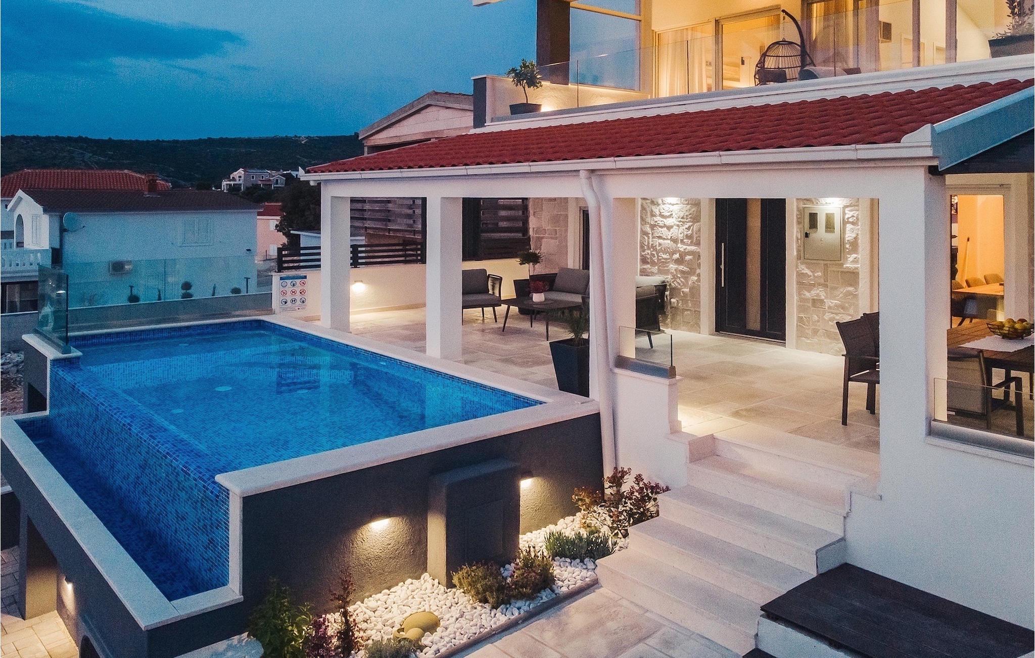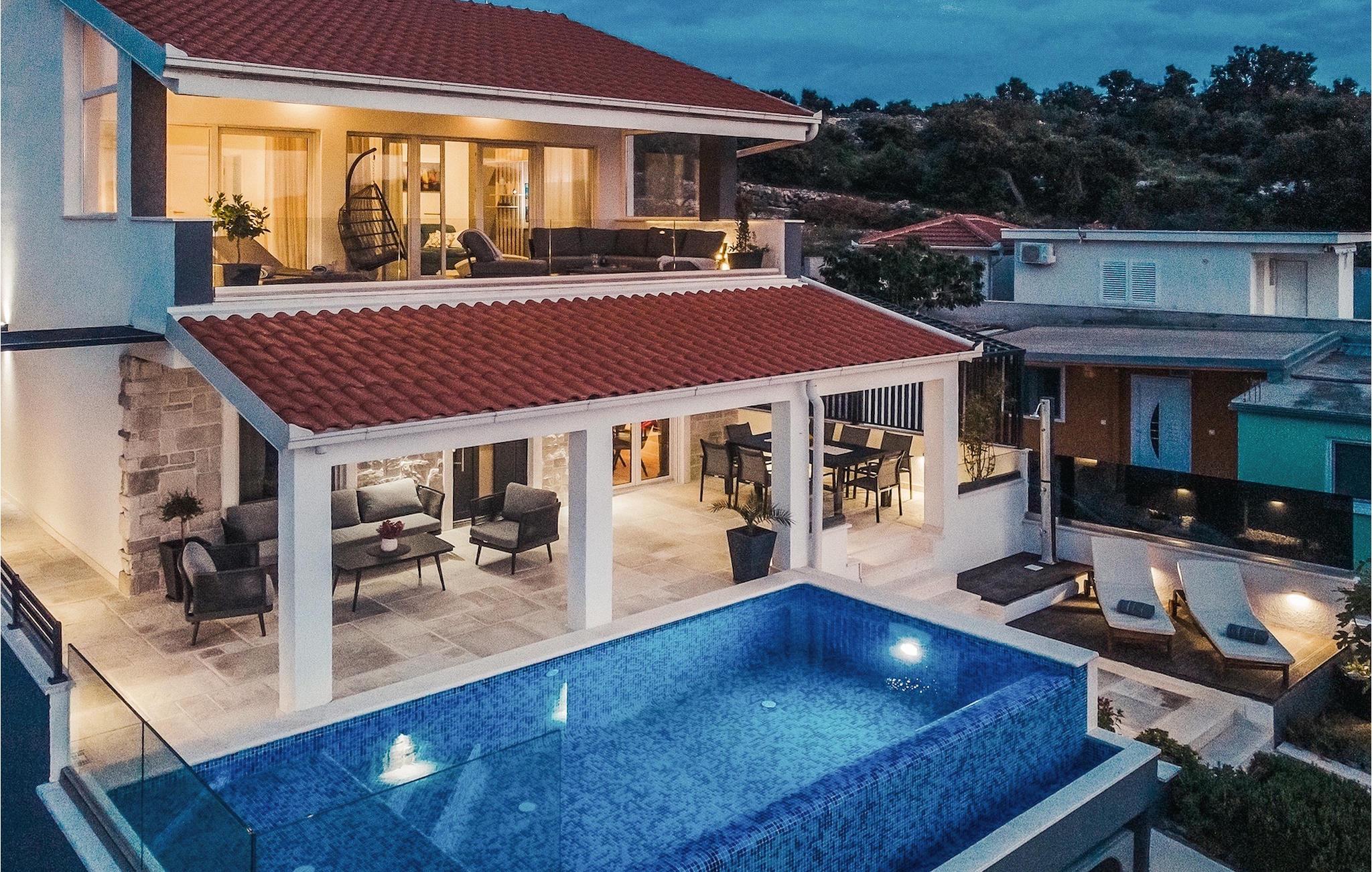 Vil du tilbringe din ferie i en villa kun 90 m fra havet med en mirakuløs udsigt? Så skal du helt sikkert tage et kig på Villa Miracle. Denne villa er det perfekte valg for en gruppe på 8. Det første du vil bemærke, når du ankommer til ejendommen, vil sandsynligvis være den drømmende infinity-pool med udsigt over det omkringliggende område. Inde i villaen inviterer de moderne, tidløst møblerede værelser dig til at tilbringe hyggelige stunder der. I stueetagen finder du køkkenet og spisepladsen med tv lige ved siden af. Hvis du ønsker at spise udenfor, står et andet udendørs spisebord samt en grill til din rådighed. Hvis du leder efter noget sjov, så tag dig ind i underholdningsrummet og spil billard eller dart - et barbord og et tv giver dette værelse en særlig note. Et af de 3 soveværelser ligger i stueetagen, mens de andre er ovenpå, hvoraf det ene har direkte udgang til terrassen. På første sal venter stuen på dig - gør dig godt tilpas på sofaen eller den rummelige terrasse med havemøbler og liggestole. Slap af, nyd den fantastiske udsigt og gør din ferie uforglemmelig - bestil Villa Miracle nuVilla Miracle er beliggende i den lille landsby Ražanj nær Split. Det er en traditionel, lille fiskerby, som er blevet et meget populært feriemål. Det bakkede landskab, fyrretræerne og de mange strande tilbyder tilsammen en typisk dalmatisk atmosfære. Beliggende mellem Rogoznica og Primošten, er det det perfekte udgangspunkt for dagsture. Sørg for at besøge velkendte seværdigheder såsom "Dragon Eye"-søen i Rogoznica og statuen af Vor Frue af Loreto i Primošten - der vil du blive forbløffet over den betagende udsigt. Du kan også benytte lejligheden til at gå gennem gaderne i Šibenik eller Split og besøge Krka Nationalpark.