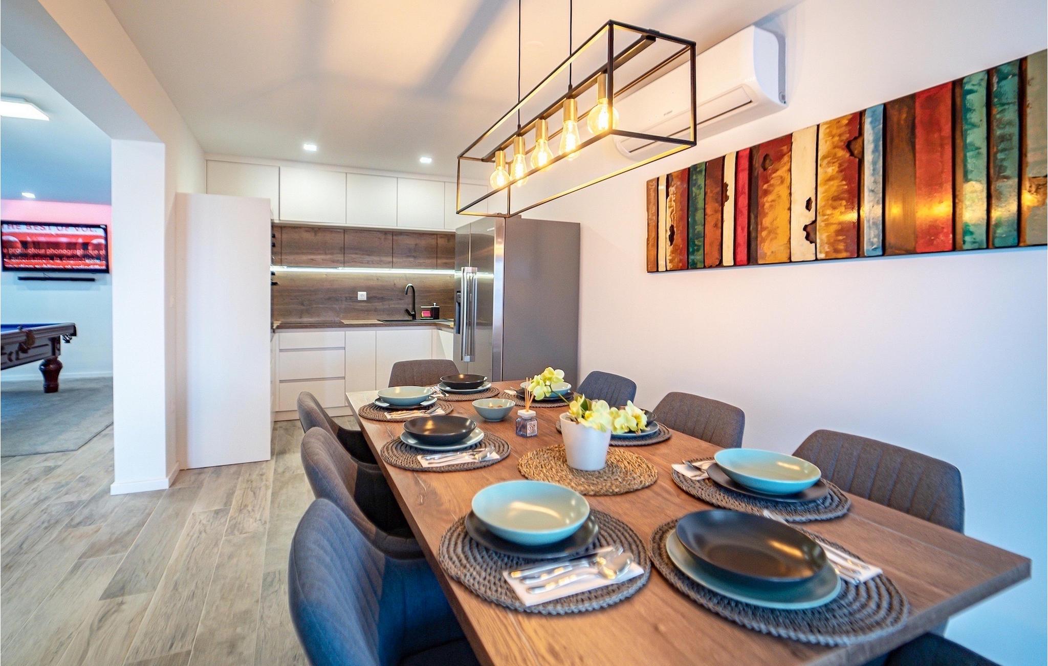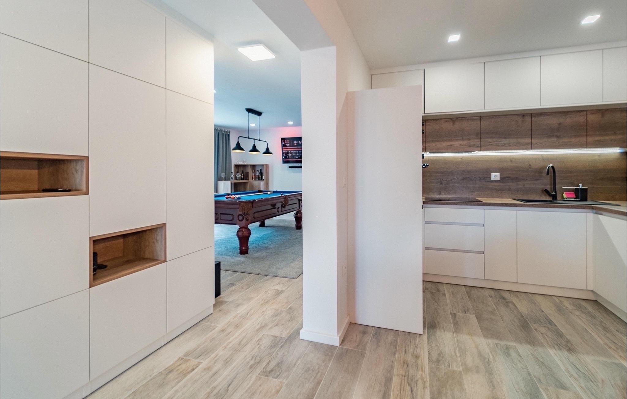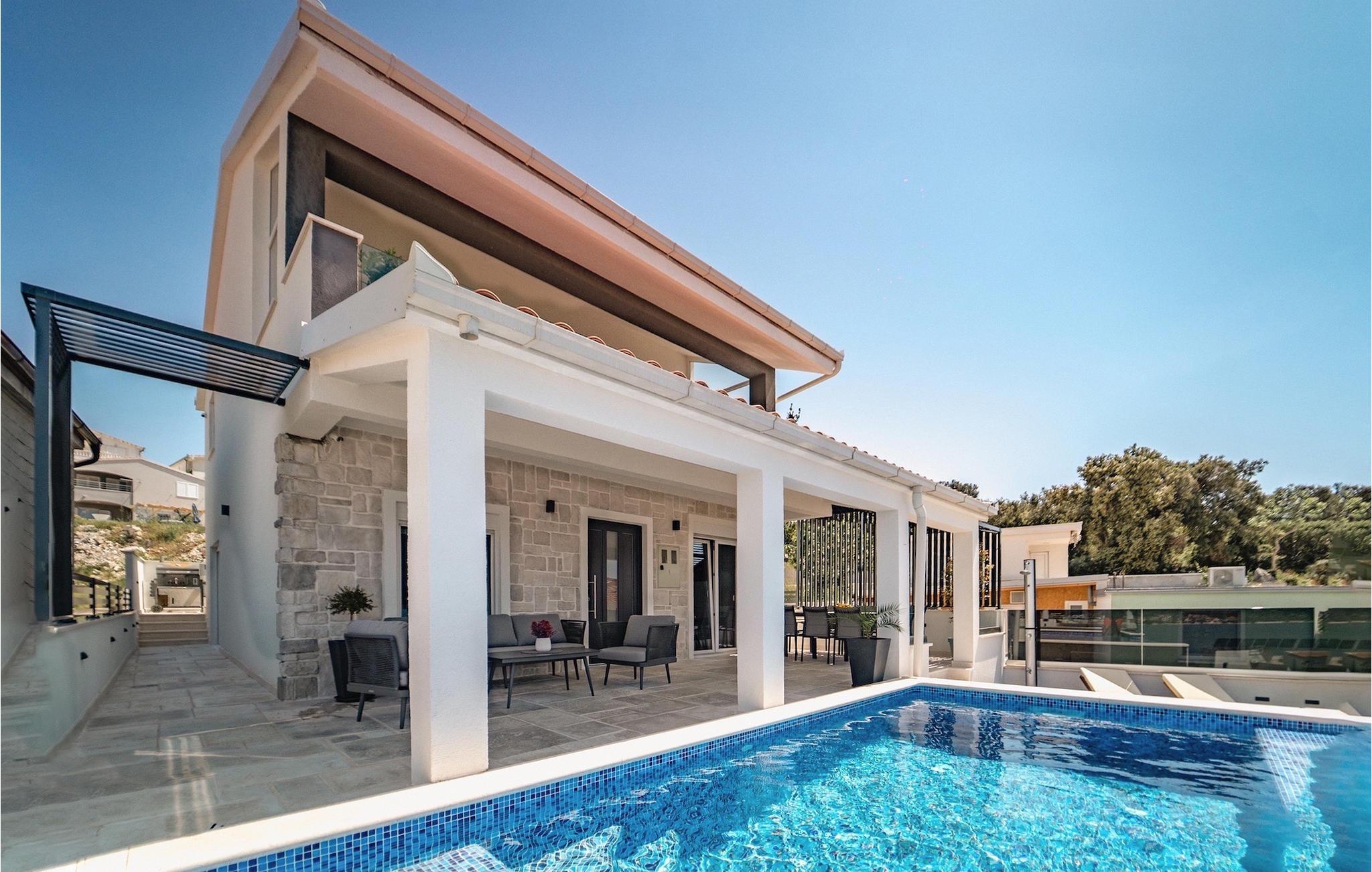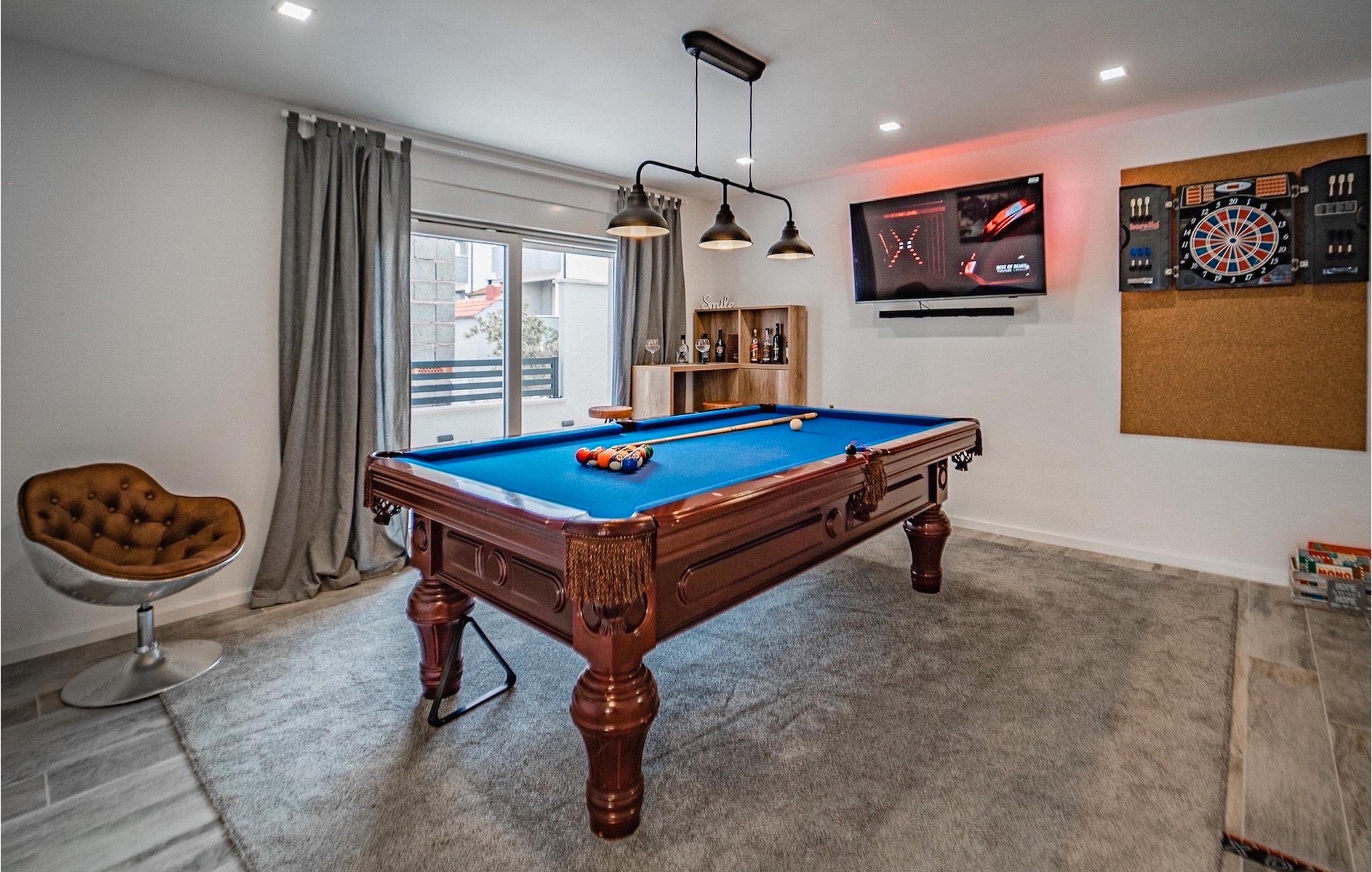 Vil du tilbringe din ferie i en villa kun 90 m fra havet med en mirakuløs udsigt? Så skal du helt sikkert tage et kig på Villa Miracle. Denne villa er det perfekte valg for en gruppe på 8. Det første du vil bemærke, når du ankommer til ejendommen, vil sandsynligvis være den drømmende infinity-pool med udsigt over det omkringliggende område. Inde i villaen inviterer de moderne, tidløst møblerede værelser dig til at tilbringe hyggelige stunder der. I stueetagen finder du køkkenet og spisepladsen med tv lige ved siden af. Hvis du ønsker at spise udenfor, står et andet udendørs spisebord samt en grill til din rådighed. Hvis du leder efter noget sjov, så tag dig ind i underholdningsrummet og spil billard eller dart - et barbord og et tv giver dette værelse en særlig note. Et af de 3 soveværelser ligger i stueetagen, mens de andre er ovenpå, hvoraf det ene har direkte udgang til terrassen. På første sal venter stuen på dig - gør dig godt tilpas på sofaen eller den rummelige terrasse med havemøbler og liggestole. Slap af, nyd den fantastiske udsigt og gør din ferie uforglemmelig - bestil Villa Miracle nuVilla Miracle er beliggende i den lille landsby Ražanj nær Split. Det er en traditionel, lille fiskerby, som er blevet et meget populært feriemål. Det bakkede landskab, fyrretræerne og de mange strande tilbyder tilsammen en typisk dalmatisk atmosfære. Beliggende mellem Rogoznica og Primošten, er det det perfekte udgangspunkt for dagsture. Sørg for at besøge velkendte seværdigheder såsom "Dragon Eye"-søen i Rogoznica og statuen af Vor Frue af Loreto i Primošten - der vil du blive forbløffet over den betagende udsigt. Du kan også benytte lejligheden til at gå gennem gaderne i Šibenik eller Split og besøge Krka Nationalpark.