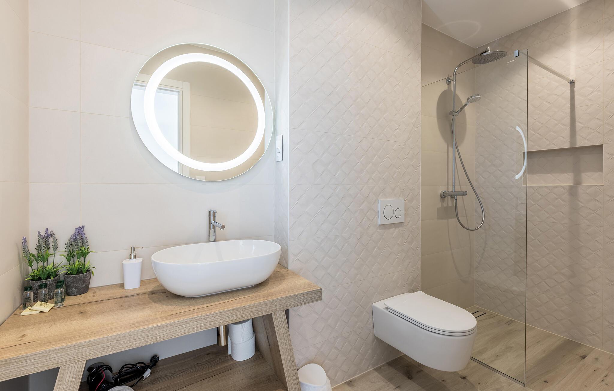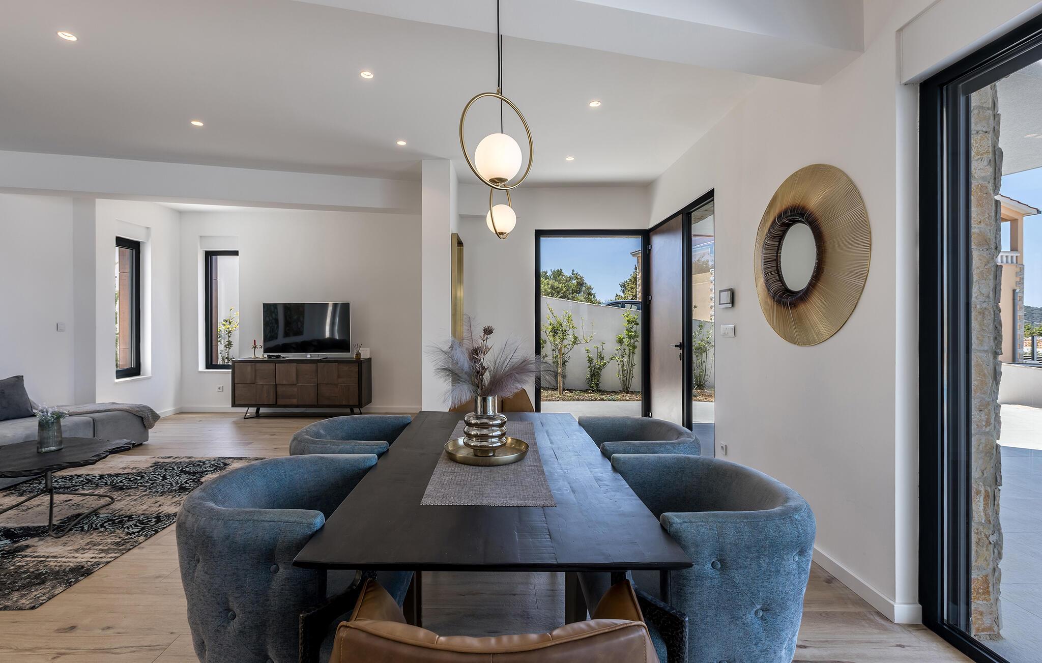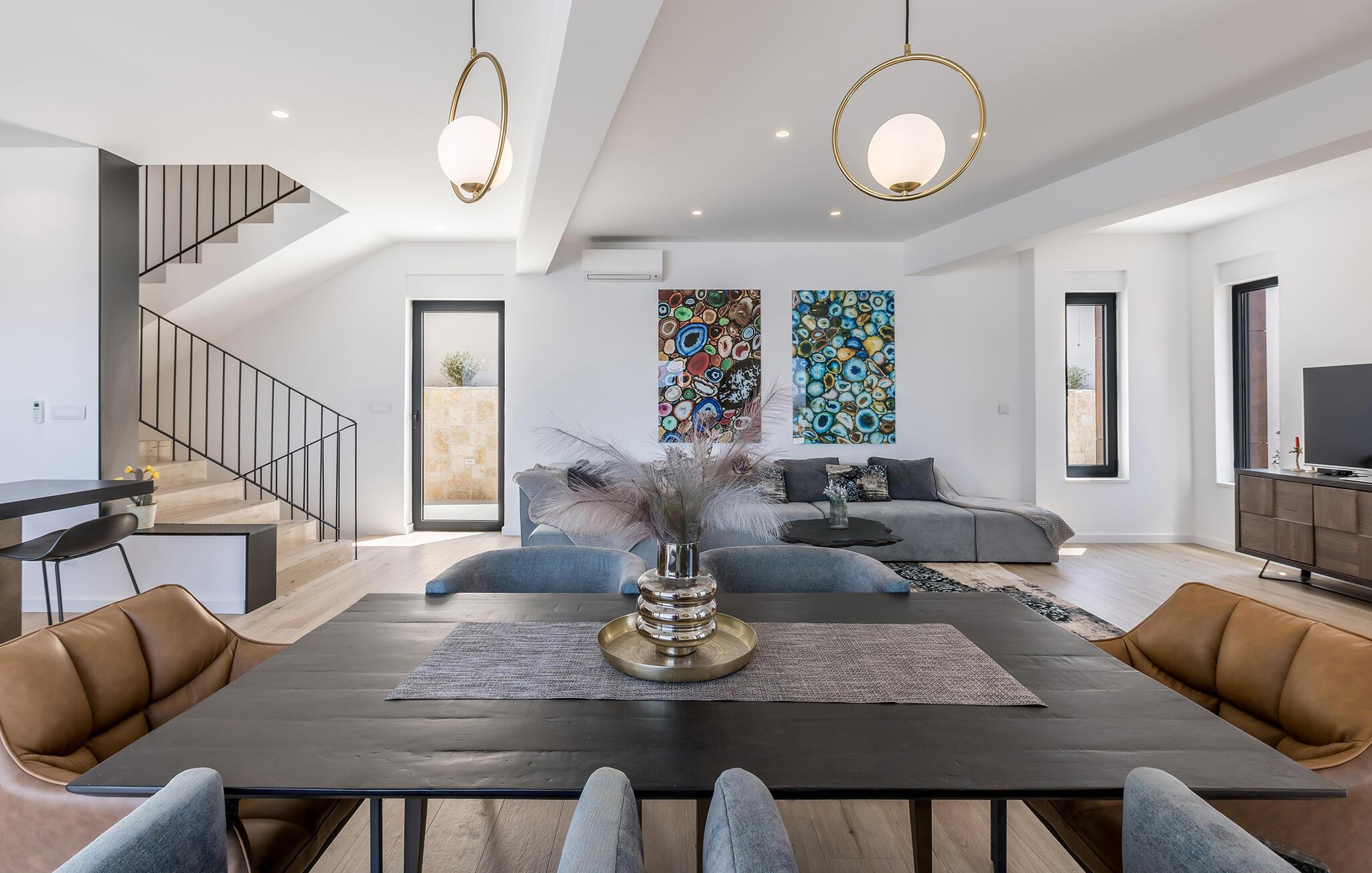 Det rummelige udendørsområde er som skabt til lange timer under middelhavshimlen. Nyd solen på en liggestol, forfrisk jer i infinity-poolen, og lad blikket glide ud over panoramaudsigten med en kold drink i den skyggefulde lounge.