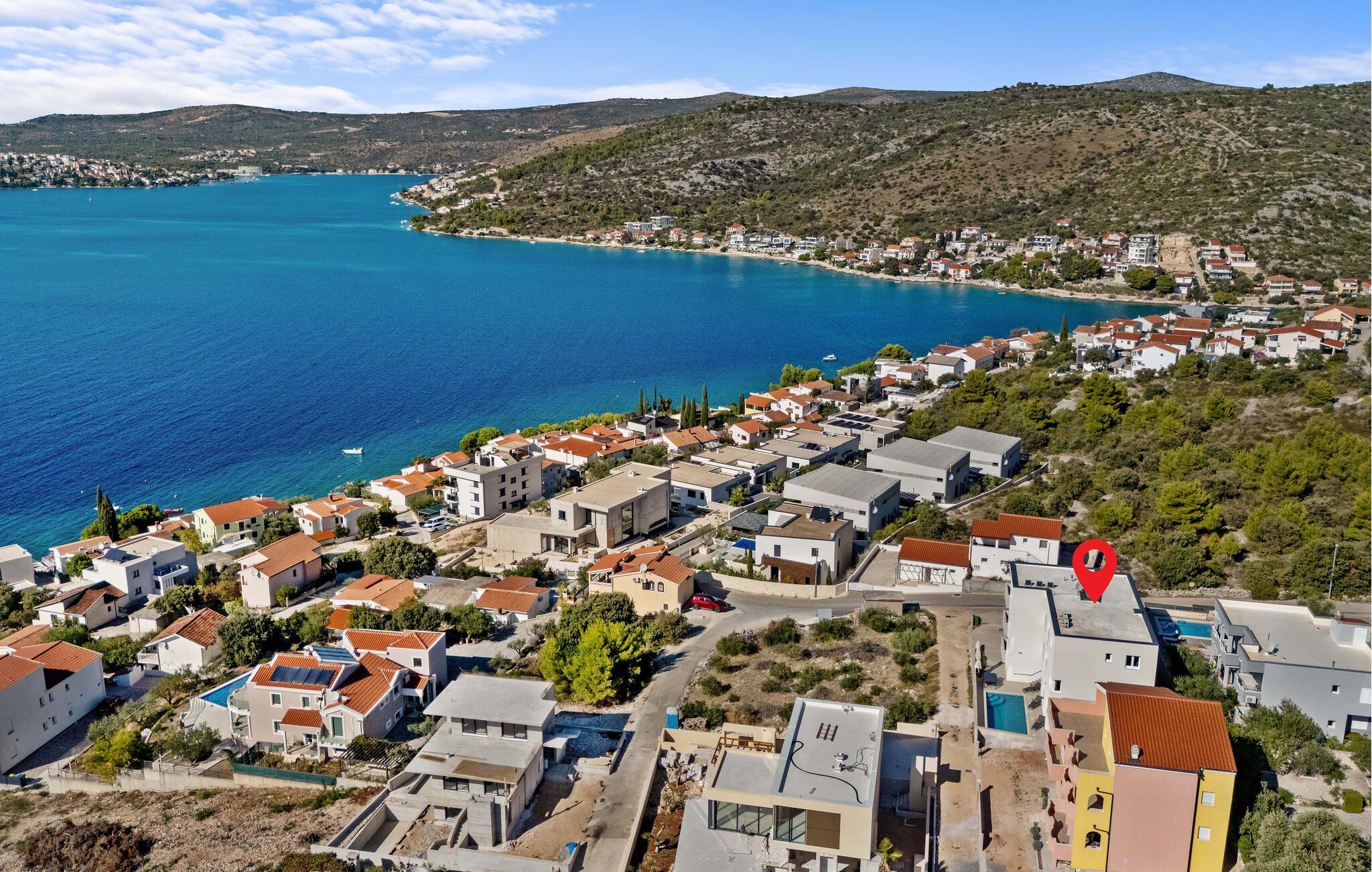Havet ligger kun et stenkast væk og lægger op til at tilbringe afslappende timer ved vandet eller snorkle i små bugter. De rolige omgivelser i Ražanj tilbyder ideelle betingelser for lange gåture langs kysten eller vandreture med havudsigt. For en dagstur anbefales den historiske by Trogir med sin UNESCO-beskyttede gamle bydel, charmerende gyder og middelhavsstemning. Bådentusiaster vil også finde noget at nyde – hvad enten det er på en kort tur til skjulte bugter eller en udflugt til de omkringliggende øer.
