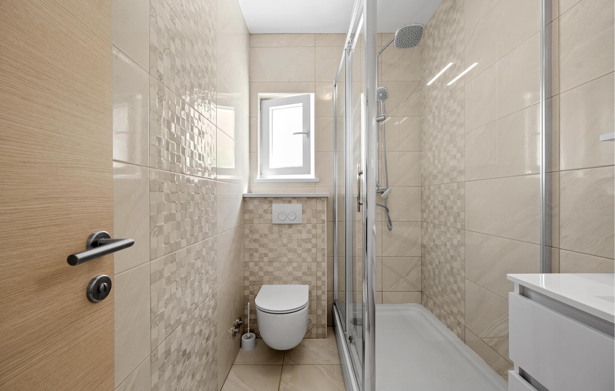 Badeværelse (nr. 1) - WC. Varmt og koldt vand. Bruser