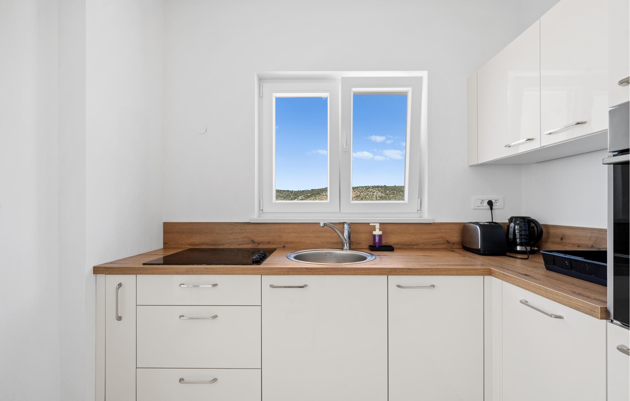 Begynd dagene afslappet med en kop friskbrygget kaffe på balkonen, mens I nyder udsigten over Adriaterhavet og den blide havbrise. Poolen, som I deler med andre gæster, lægger op til at svømme, spille spil eller blot slappe af når som helst på dagen.