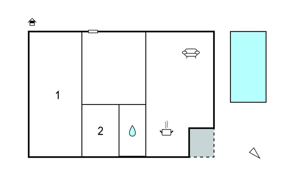 Opholdsstue - 1 Soveplads. (Sofa, madras eller lignende).
