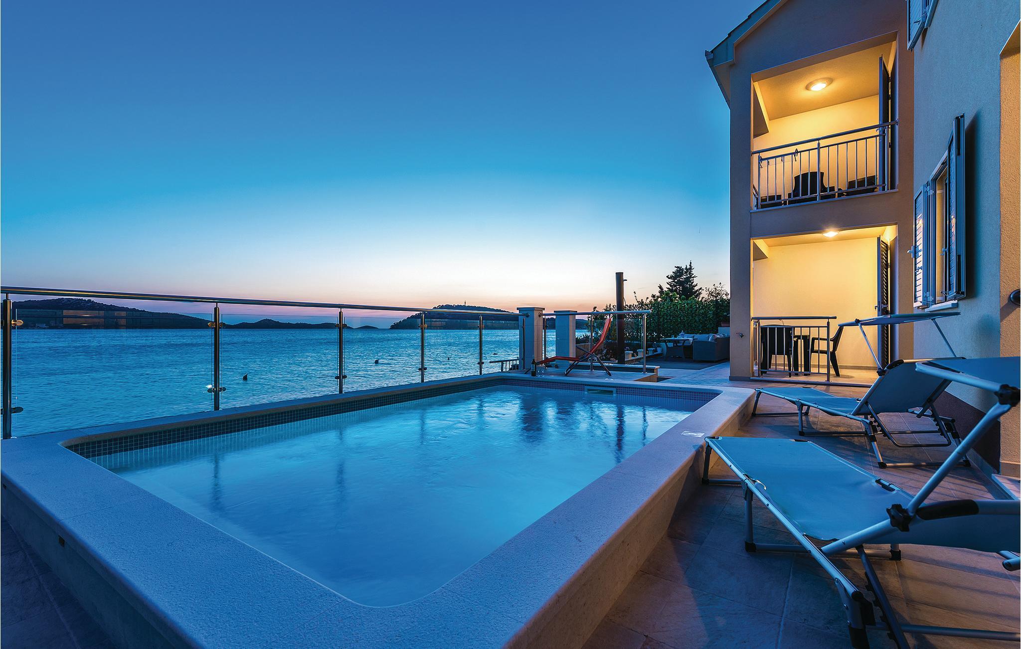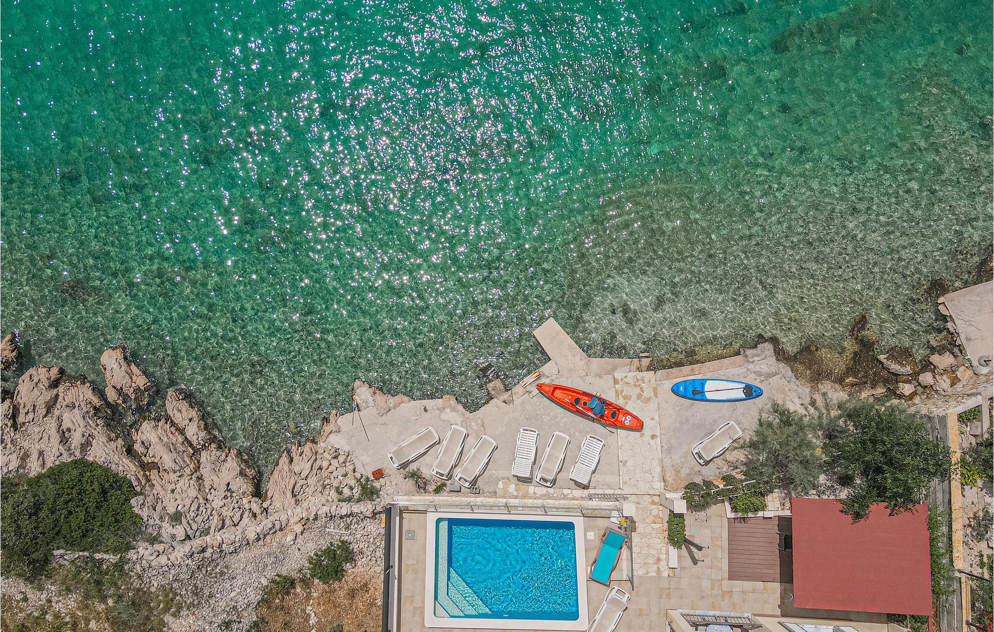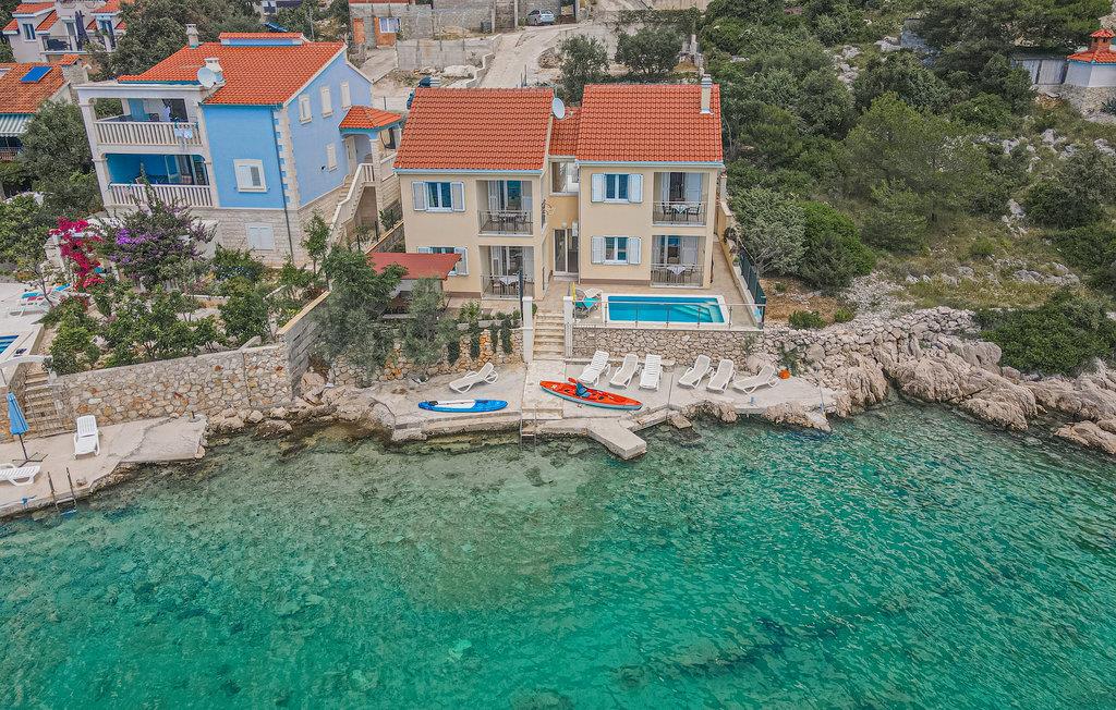 Nyd den skønne kroatiske natur og det krystalklare Adriaterhav når I bor i dette stilfulde feriehus med swimmingpool lige ud til havet. Den rolige bugt ved den lille by Kalebova Luka, nær Rogoznica, er helt perfekt til en afslappet ferie hvor batterierne skal lades op. I huset er der fire separate og godt udstyrede ferielejligheder, der er forbundet med udendørs trapper og har en stor fælles terrasse hvor grillen står. I Ražanj er der butikker, restauranter og cafeer. Besøg Rogoznica, med den skønne marina Frapa hvor I kan gå en tur og se lystfartøjer fra hele verden og for Drageøjesøen (Zmajevo oko).