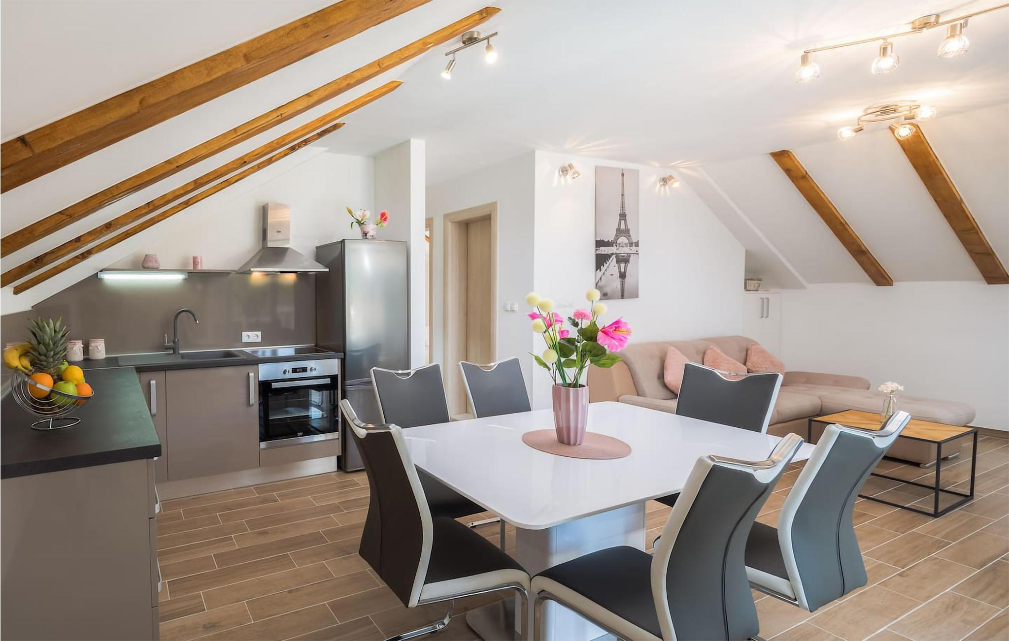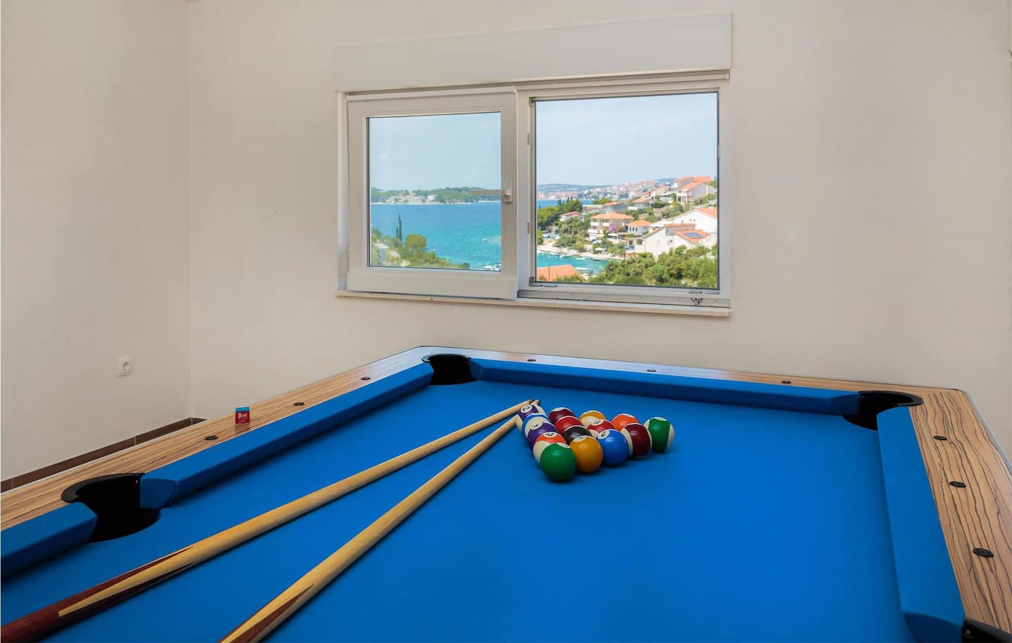 Start dagen med en dukkert i poolen efterfulgt af morgenkaffe og lækker morgenmad på en af ??terrasserne. Herefter kan I enten vælge at tilbringe et par timer i- og ved poolen eller pakke strandtasken og gå en ganske kort tur til plateau- eller stenstranden, hvor I kan bade i det glitrende vand. Når I kommer hjem igen, kan I nyde en iskold forfriskning og konkurrere i bordtennis, billiard og dart. Tilbered et lækkert feriemåltid om aftenen i husets veludstyrede køkken eller gå ud prøv lokale delikatesser på restaurant lidt over en kilometer fra huset.