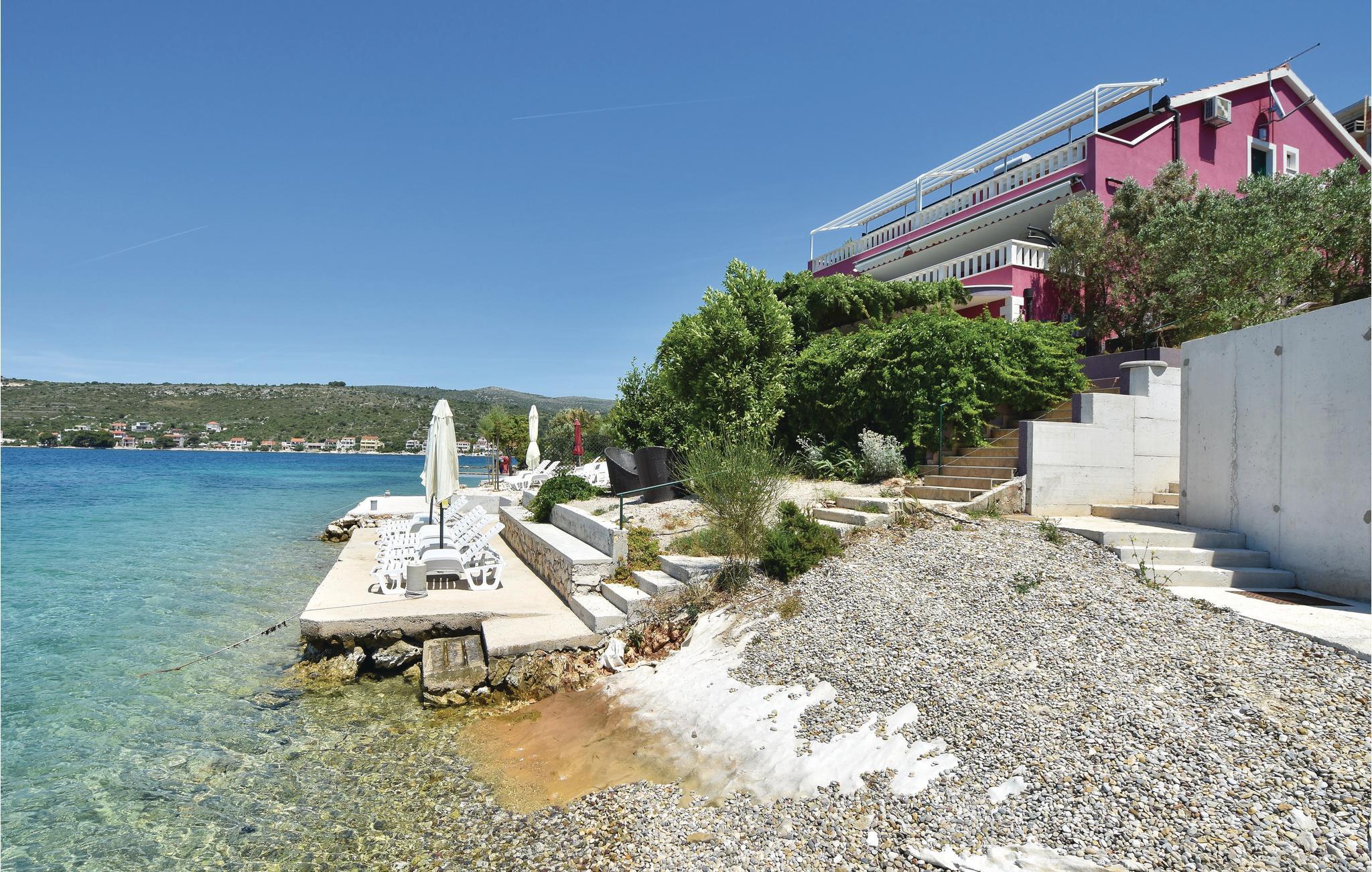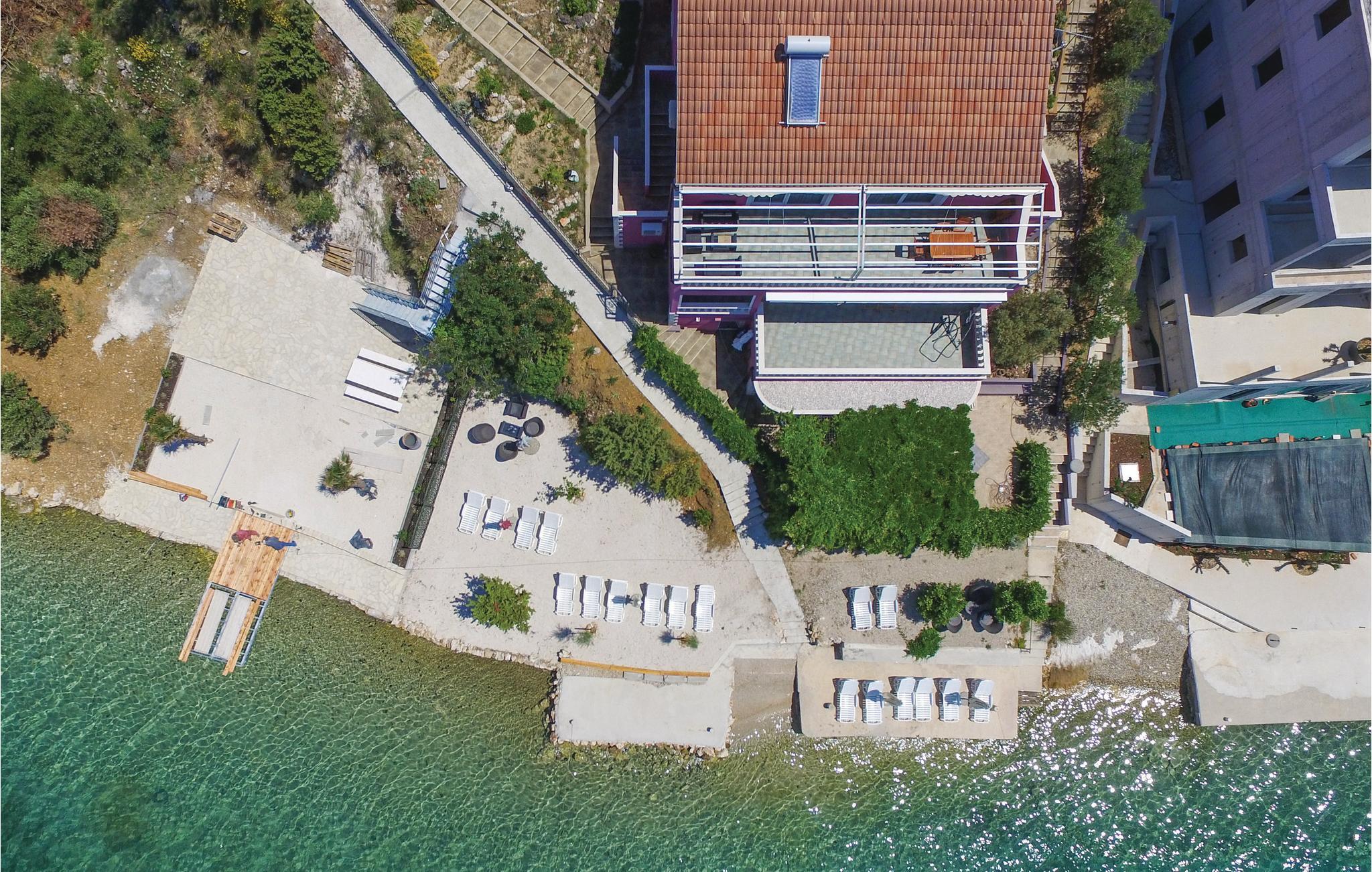 Denne rummelige ferielejlighed ligger lige ved stranden og det krystalklare have. Huset består af to komplet udstyrede boligenheder, der er forbundet af den store terrasse og alligevel har hver sin egen indgang til huset. Nyd den uforglemmelige udsigt over havet og øerne. Hele etagen tilhører jer, mens ejeren til tider bor i stueetagen. Slap af i whirlpoolen på terrassen ved siden af huset. Rogoznica, kendt som søfarts- og fiskerby, ligger kun ca. 5 minutters kørsel væk.