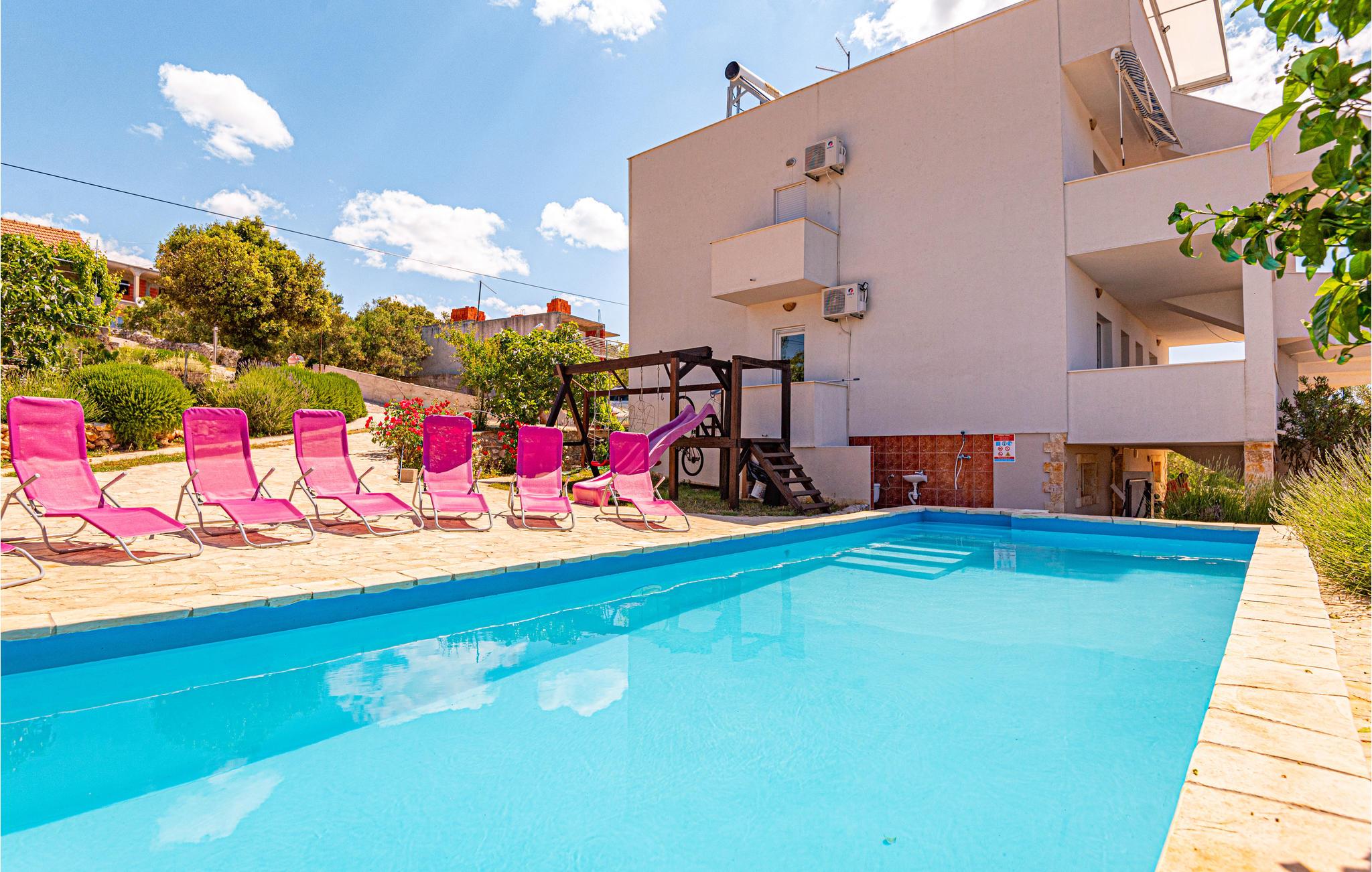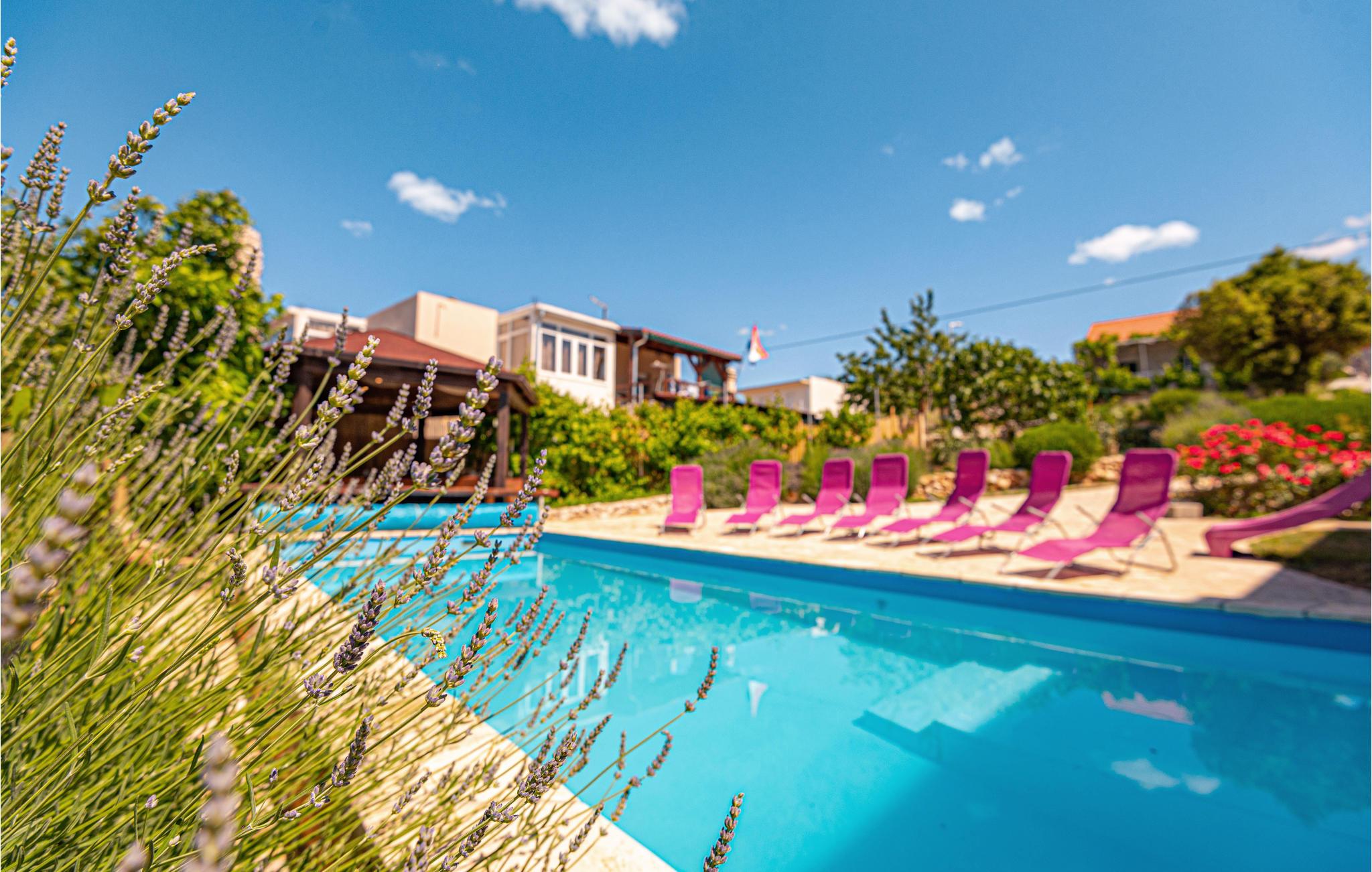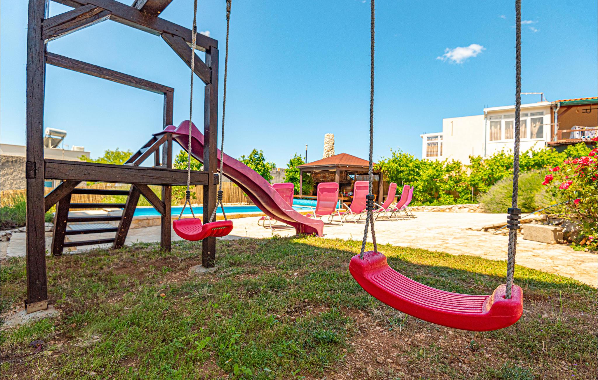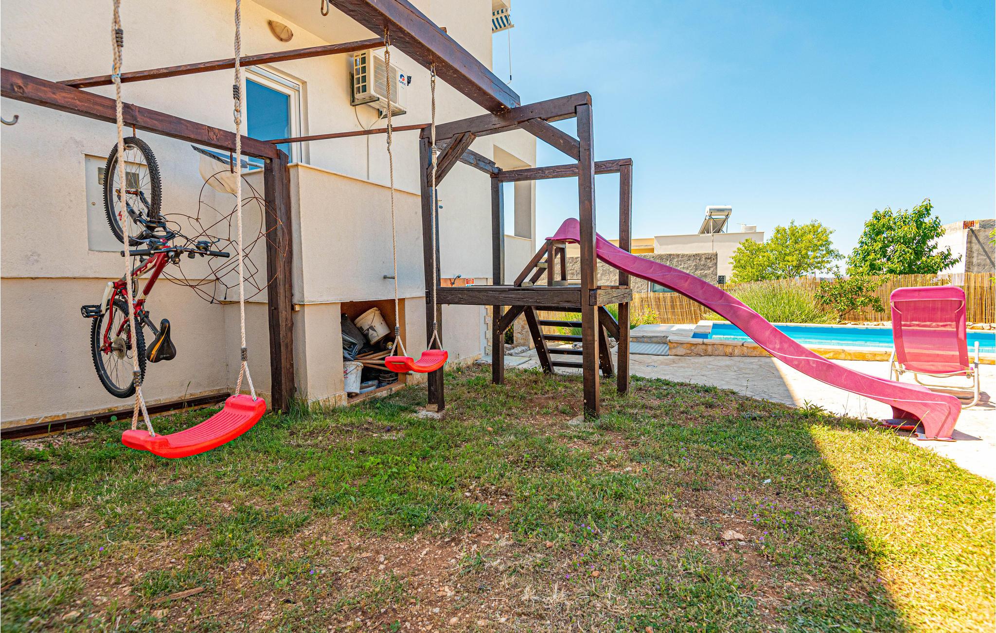 Fra den 120 m² store tagterrasse kan I nyde en fortryllende panoramaudsigt over havet. I har også en pool, og børn kan også finde underholdning her. I kan også bruge cykler, billard eller dart. Her vil I tilbringe ferien tæt på strande og alle nødvendige faciliteter.
