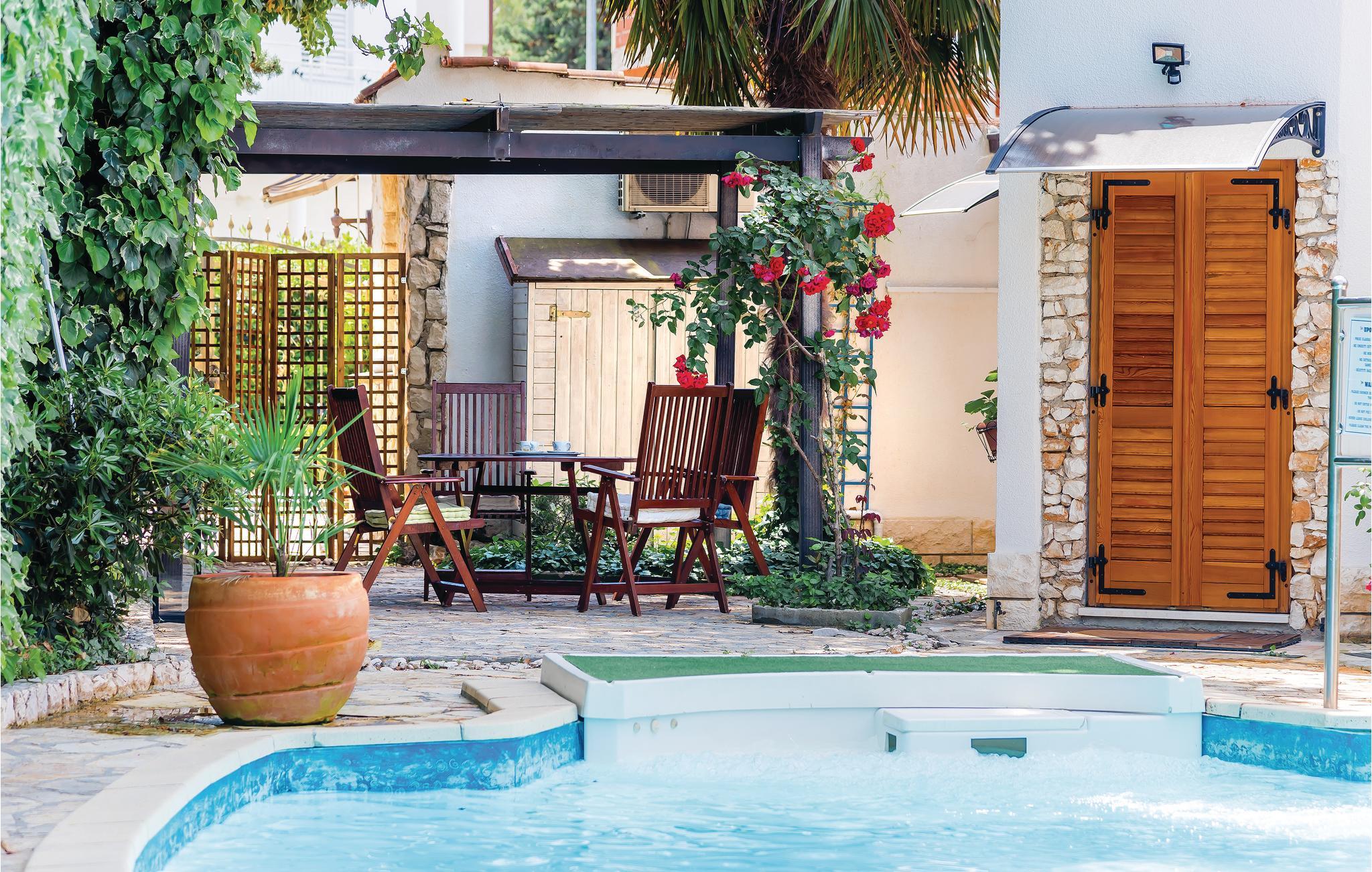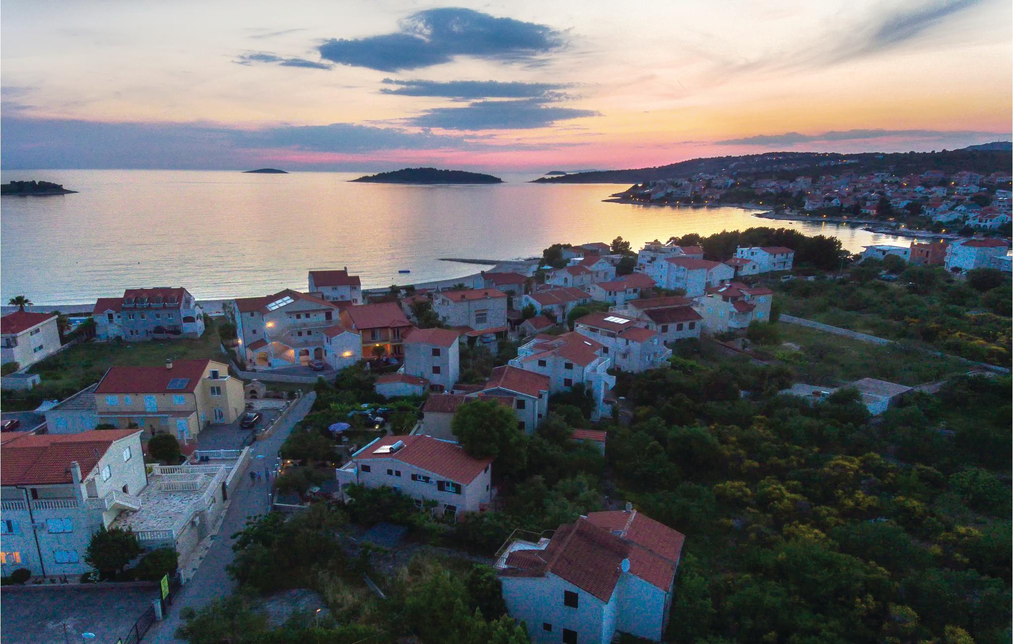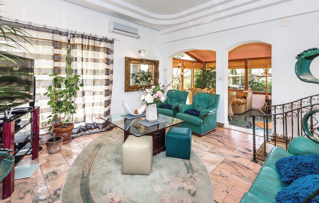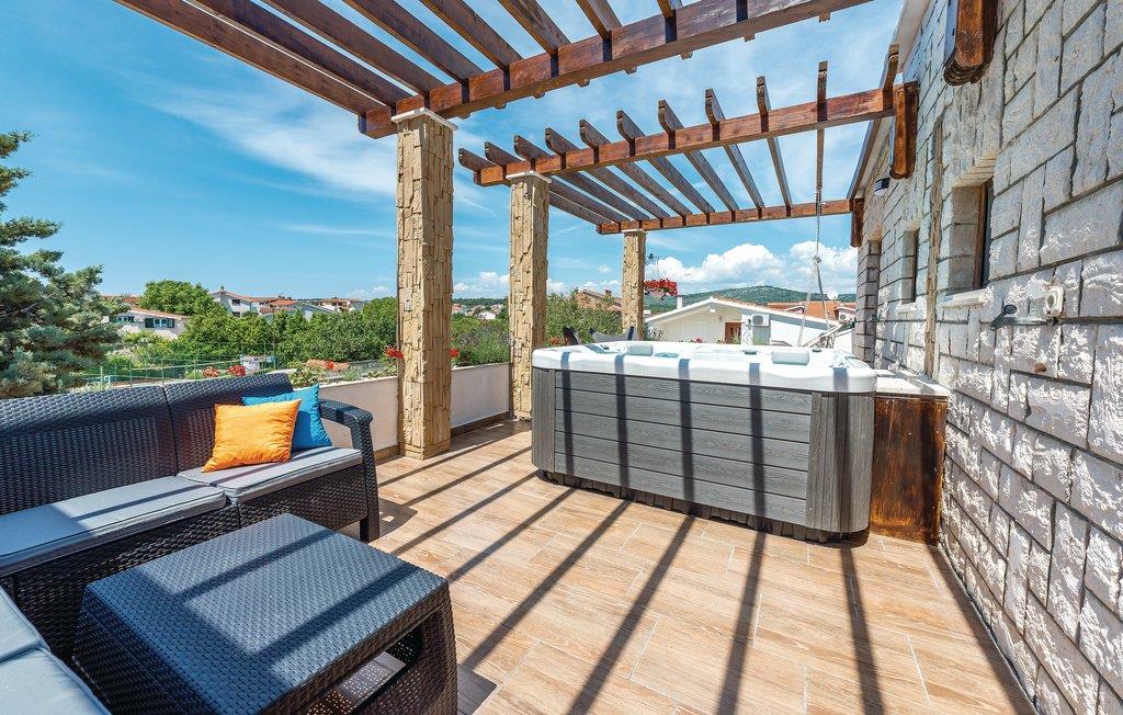 Rogoznica er en populær ferieby mellem byerne Primošten og Trogir. Her ligger dette usædvanlige feriehus på flere halve etager (udendørs trappe til øverste etage). Fra alle husets sider er det muligt at komme ud i denne skønne mediterrane have med pool, der ud over en overdækket terrasse også har en grill og masser af privatsfære til hyggestunder med familie og venner. Rogoznicas badestrande er smukke og meget egnet til familier. Lige i nærheden er der en berømt marina med bl.a. restaurant Frape. Besøg halvøen Gradina, saltsøen Zmajevo Oko, som er typisk for et karstområde.
