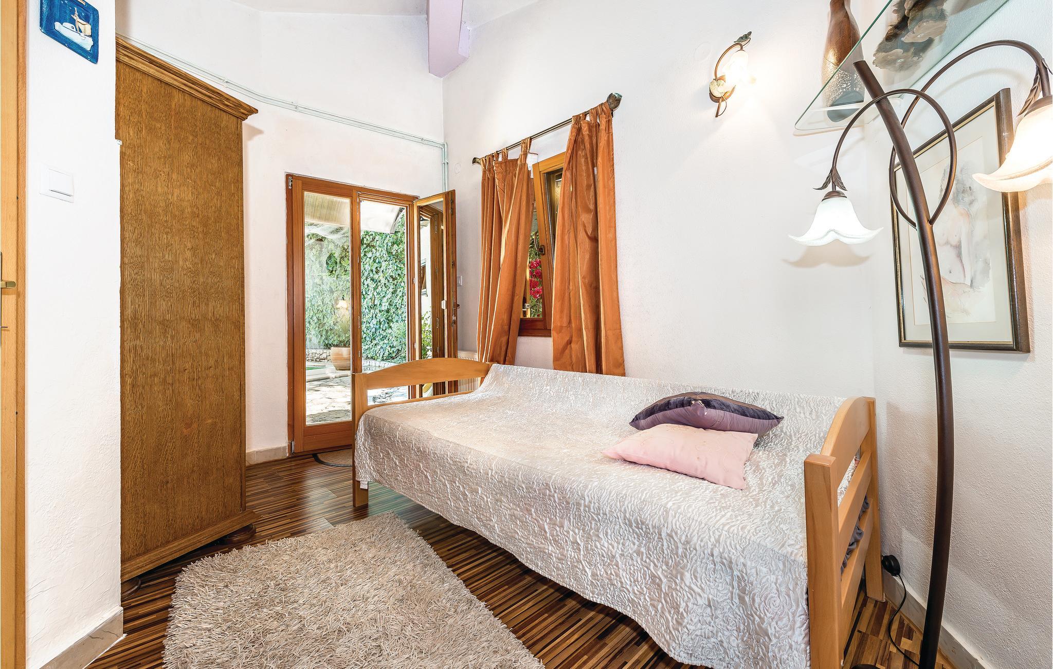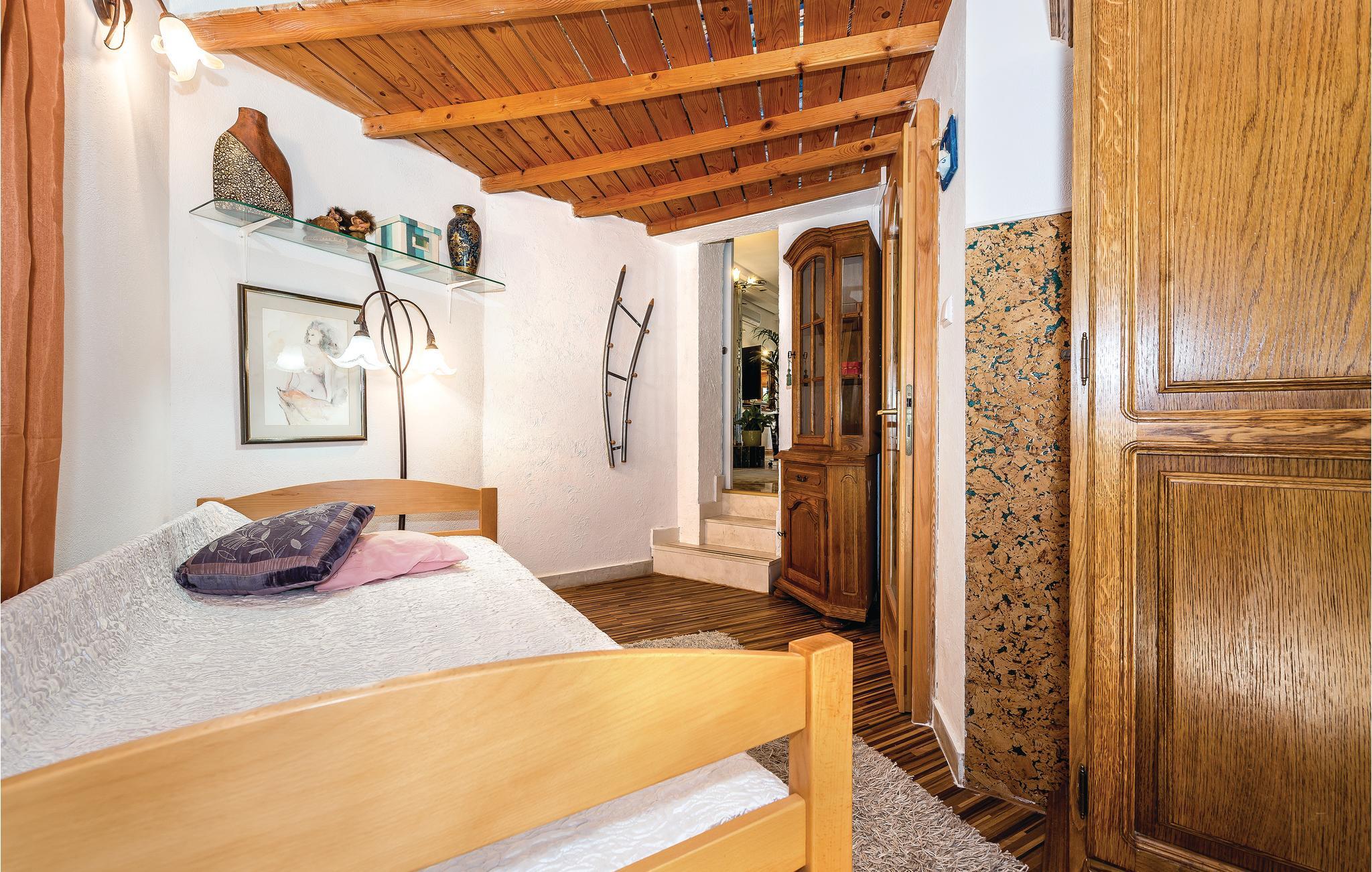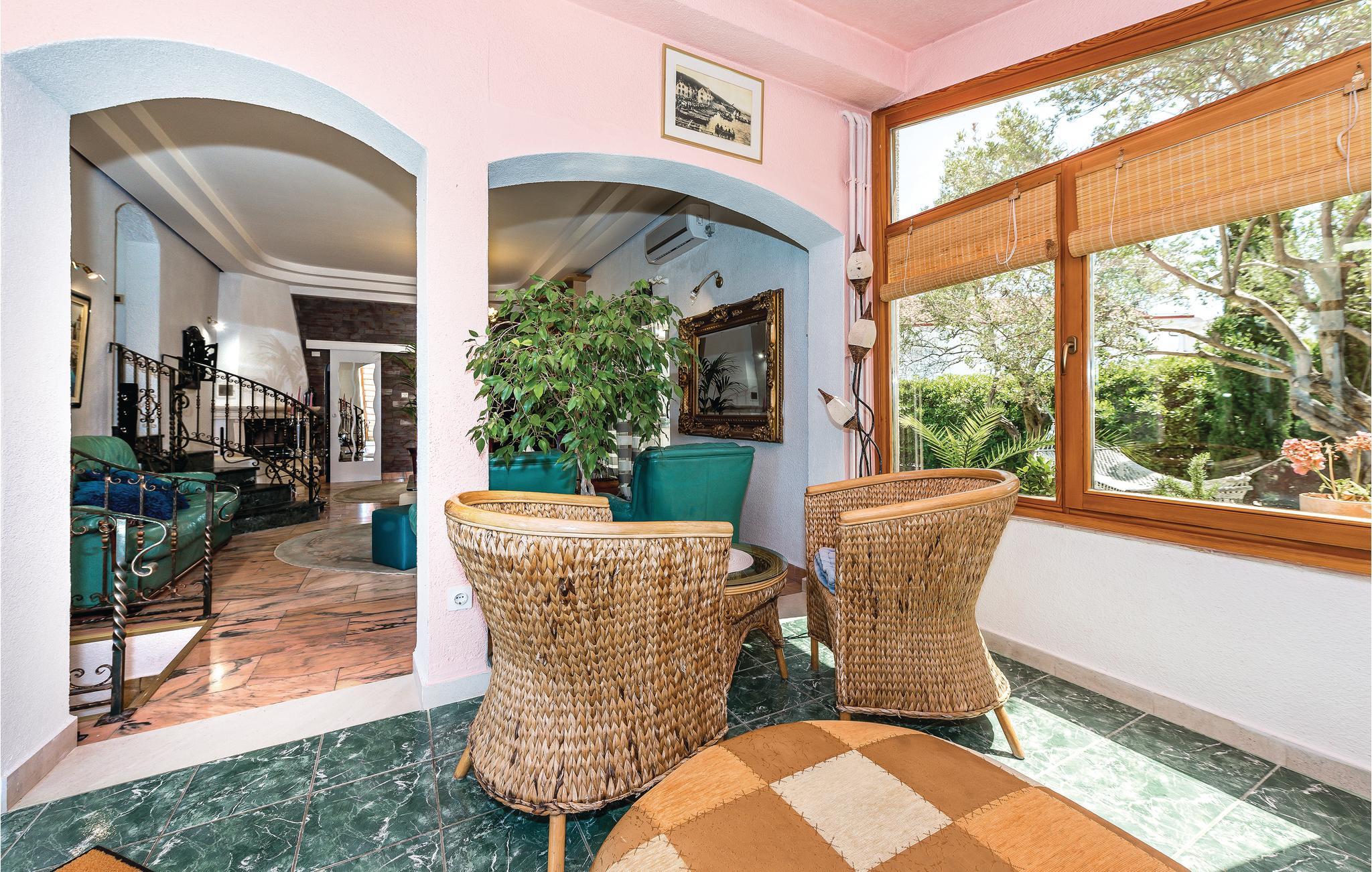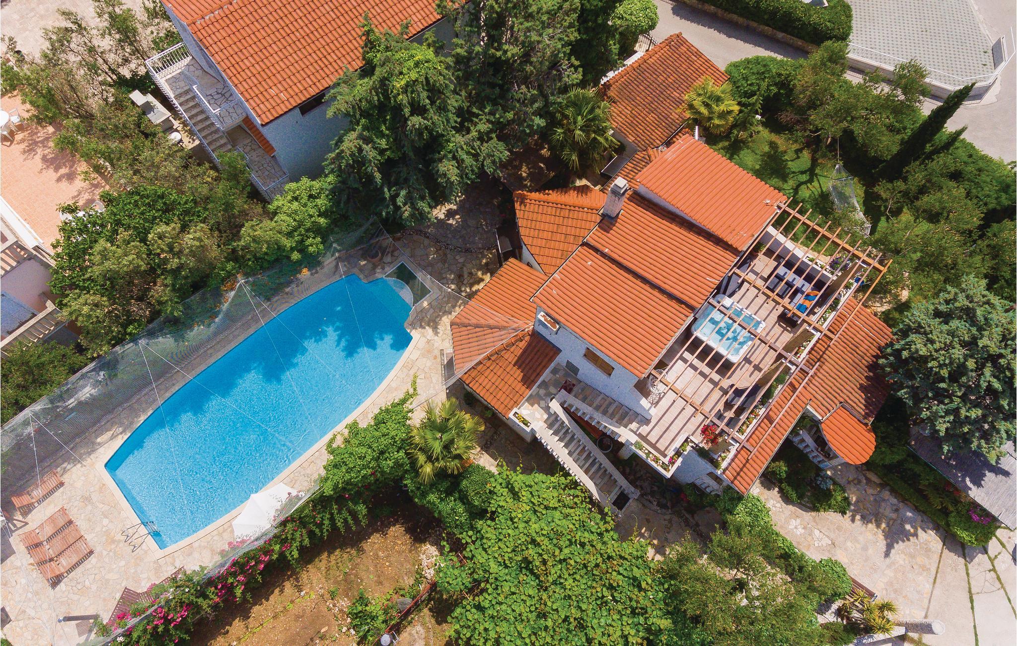 Rogoznica er en populær ferieby mellem byerne Primošten og Trogir. Her ligger dette usædvanlige feriehus på flere halve etager (udendørs trappe til øverste etage). Fra alle husets sider er det muligt at komme ud i denne skønne mediterrane have med pool, der ud over en overdækket terrasse også har en grill og masser af privatsfære til hyggestunder med familie og venner. Rogoznicas badestrande er smukke og meget egnet til familier. Lige i nærheden er der en berømt marina med bl.a. restaurant Frape. Besøg halvøen Gradina, saltsøen Zmajevo Oko, som er typisk for et karstområde.