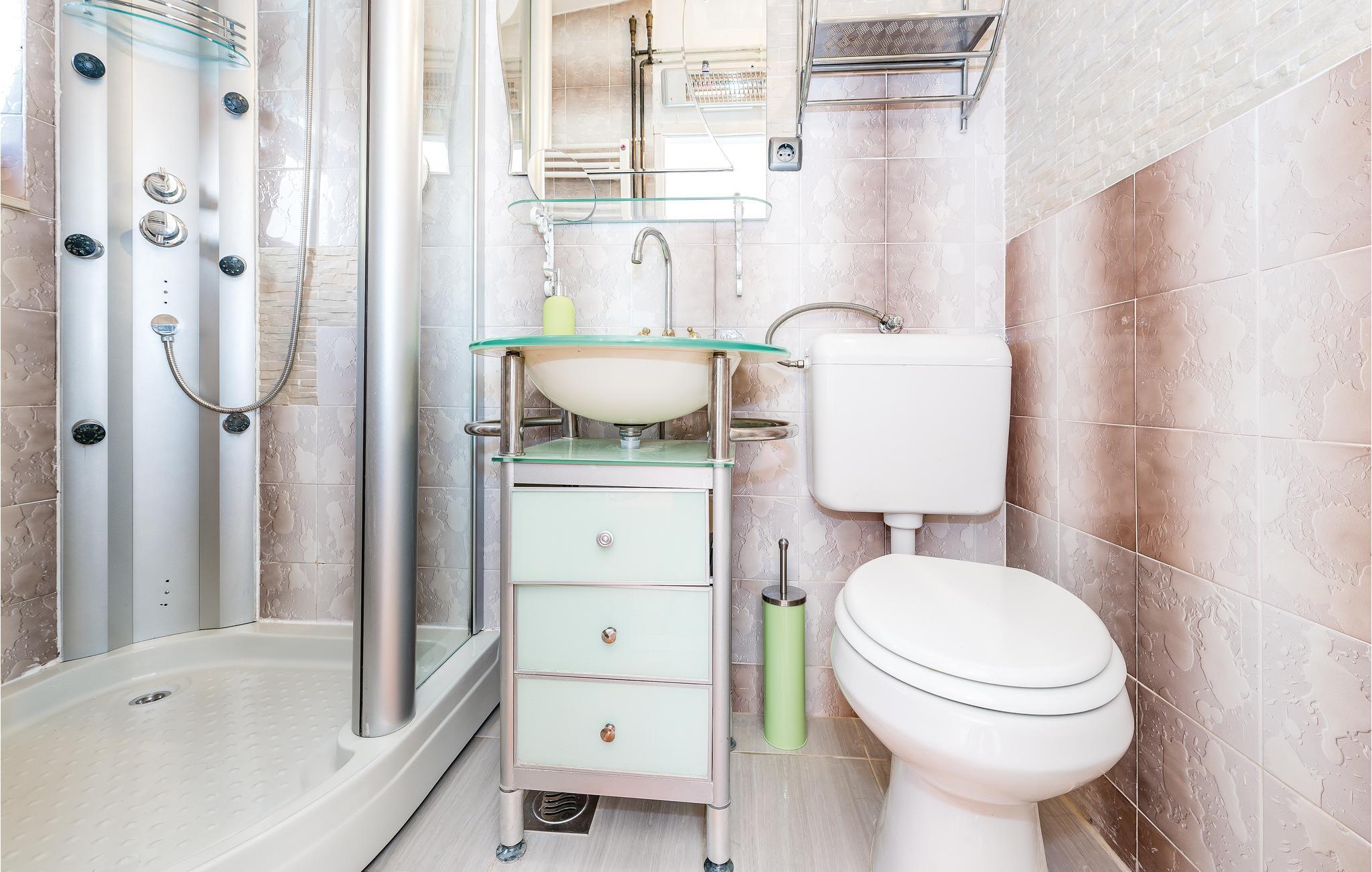 Badeværelse (nr. 1) - WC. Varmt og koldt vand. Bruser