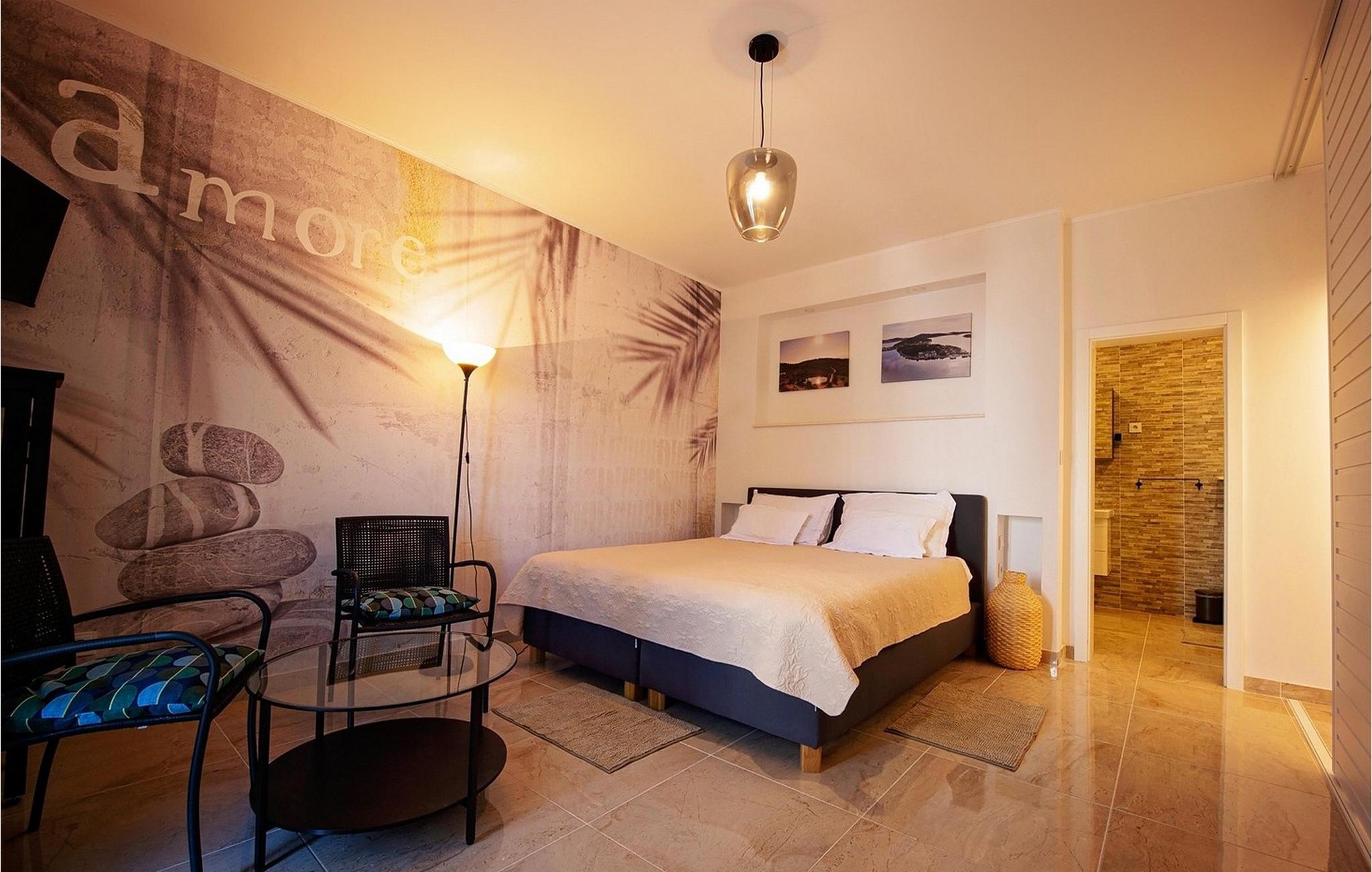 Villa Mondeo udstråler en moderne, men indbydende atmosfære, hvor varme farver og stilfulde detaljer skaber en imødekommende atmosfære. Her kan I lave mad sammen i det åbne køkken og derefter nyde et måltid ved det smukke spisebord. Den rummelige sofa lægger op til at slappe af med et glas vin eller afslutte aftenen med en god samtale.