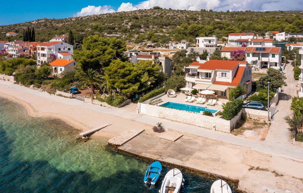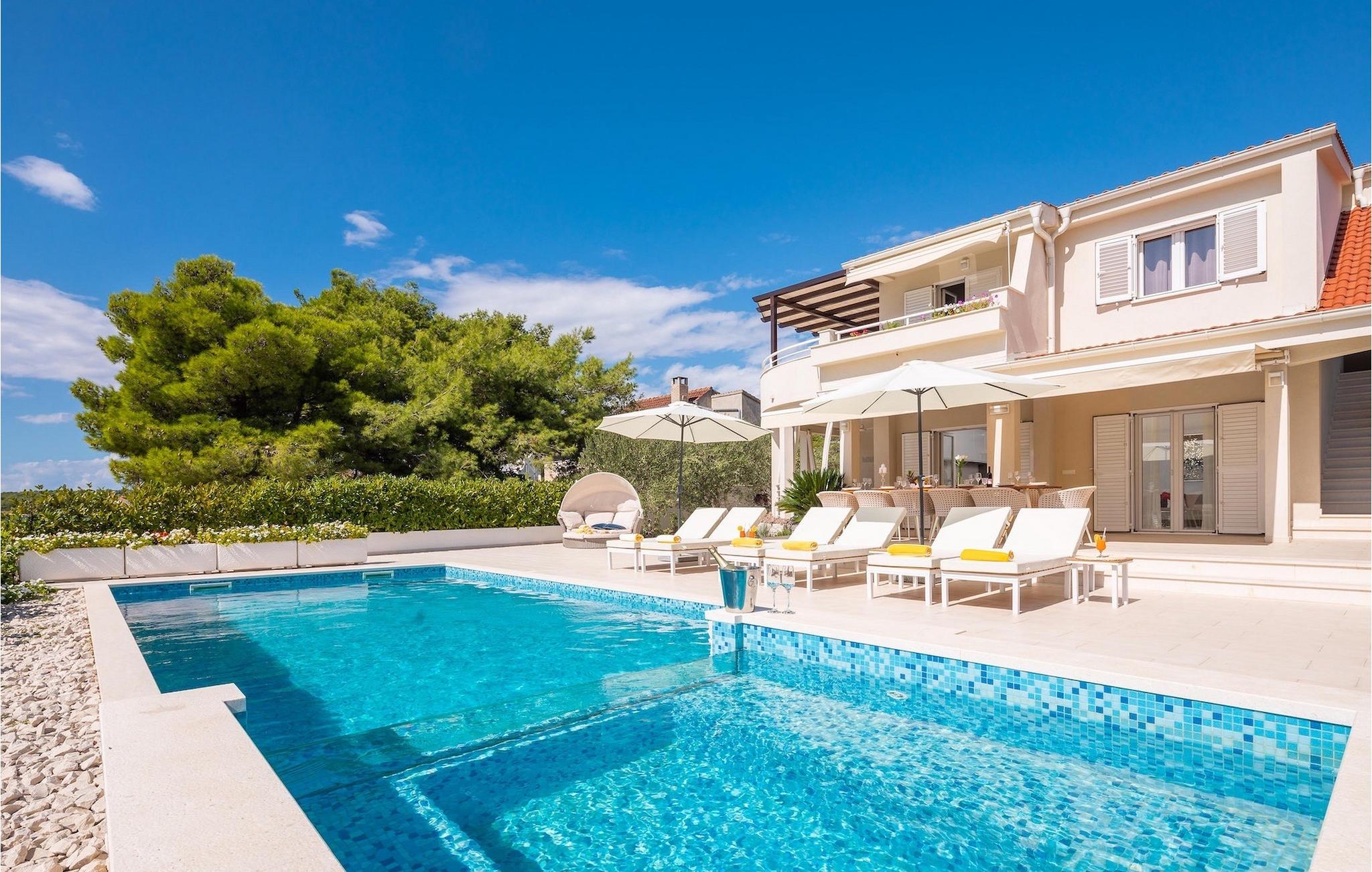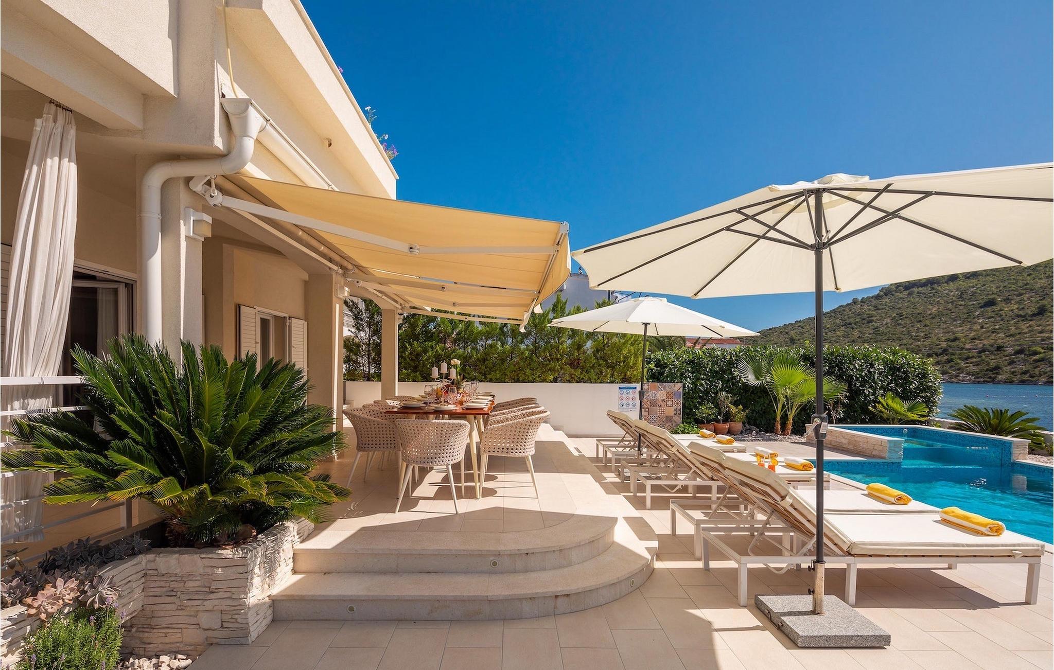 Drømmer du om en ideel ferie i en smuk villa med pool i den perfekte beliggenhed, så er Villa Naranca i Dalmatien det rigtige valg for dig! Den fortryllende Villa Naranca ligger i Rogoznica direkte på stranden. Foran den smukke Villa Naranca er der en rummelig swimmingpool med hydromassage, hvor du kan nyde betagende solnedgange, mens du nipper til din yndlingsdrink. På varme sommeraftener vil du nyde den romantiske atmosfære på terrassen ved poolen. Der er også en grill og et stort spisebord til din rådighed.