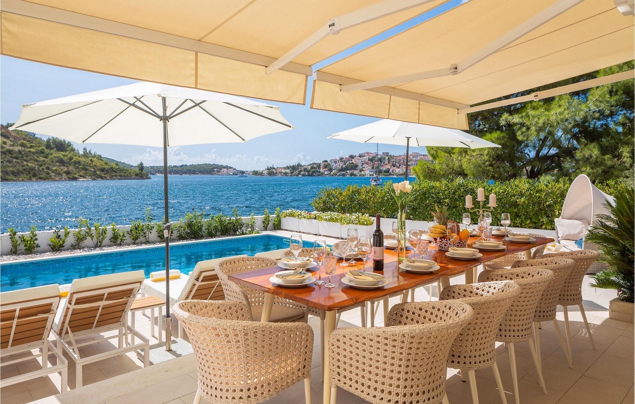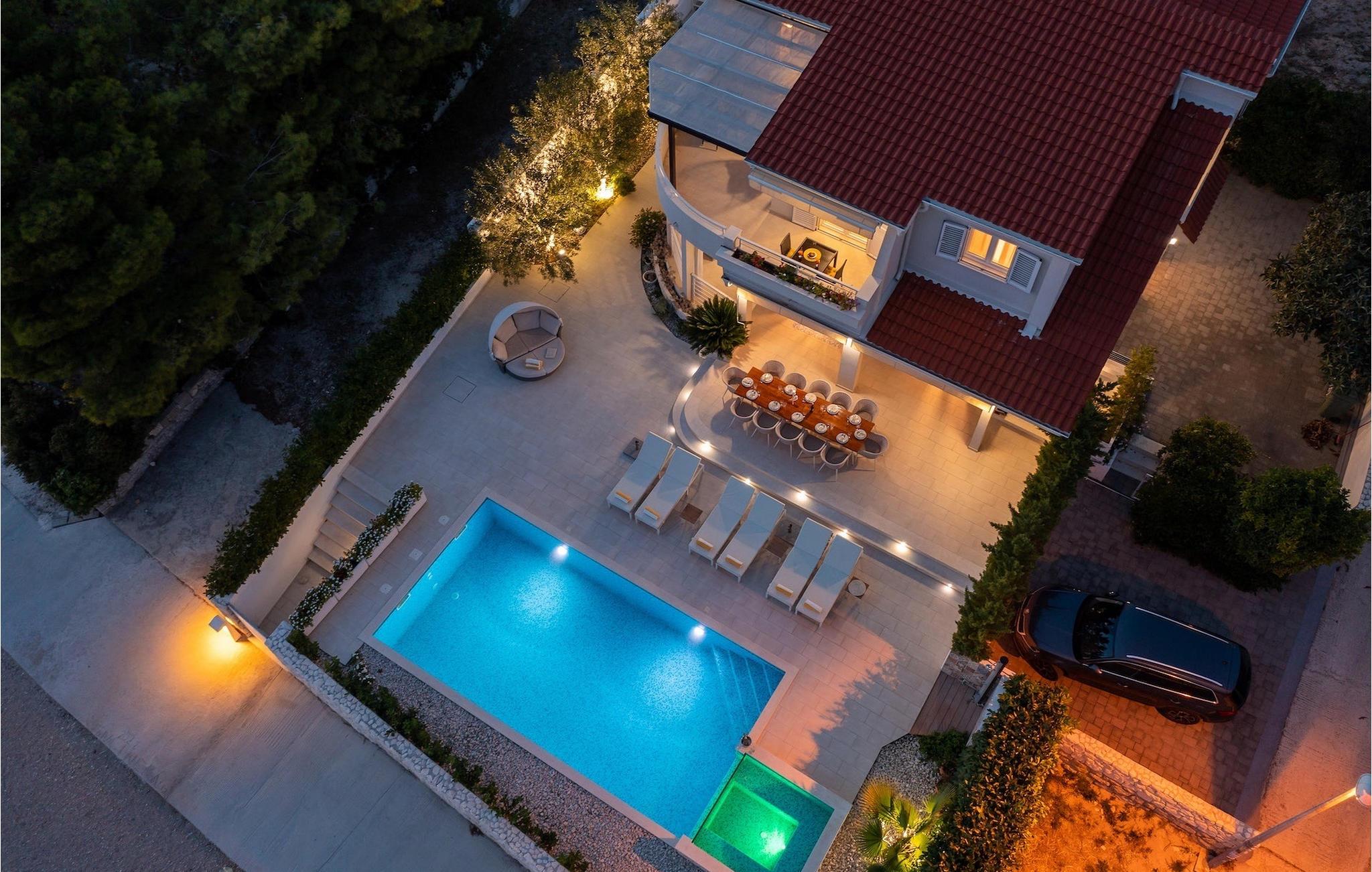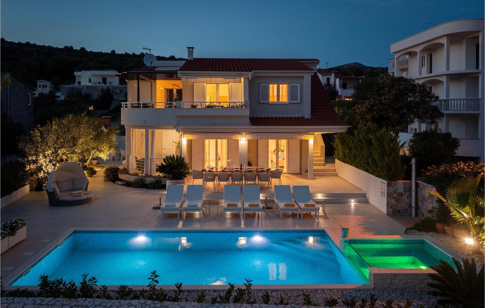 Drømmer du om en ideel ferie i en smuk villa med pool i den perfekte beliggenhed, så er Villa Naranca i Dalmatien det rigtige valg for dig! Den fortryllende Villa Naranca ligger i Rogoznica direkte på stranden. Foran den smukke Villa Naranca er der en rummelig swimmingpool med hydromassage, hvor du kan nyde betagende solnedgange, mens du nipper til din yndlingsdrink. På varme sommeraftener vil du nyde den romantiske atmosfære på terrassen ved poolen. Der er også en grill og et stort spisebord til din rådighed.