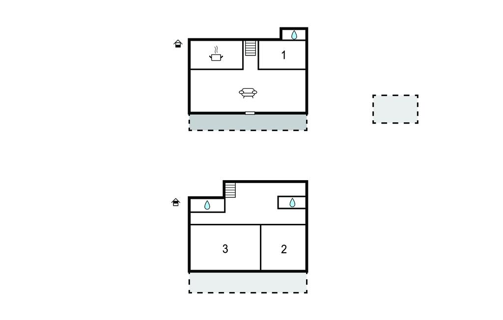 Soveværelse 12m2 (nr. 2) - 1 Soveplads. (Enkeltseng(e)). 2 Sovepladser. (Dobbeltseng(e)).