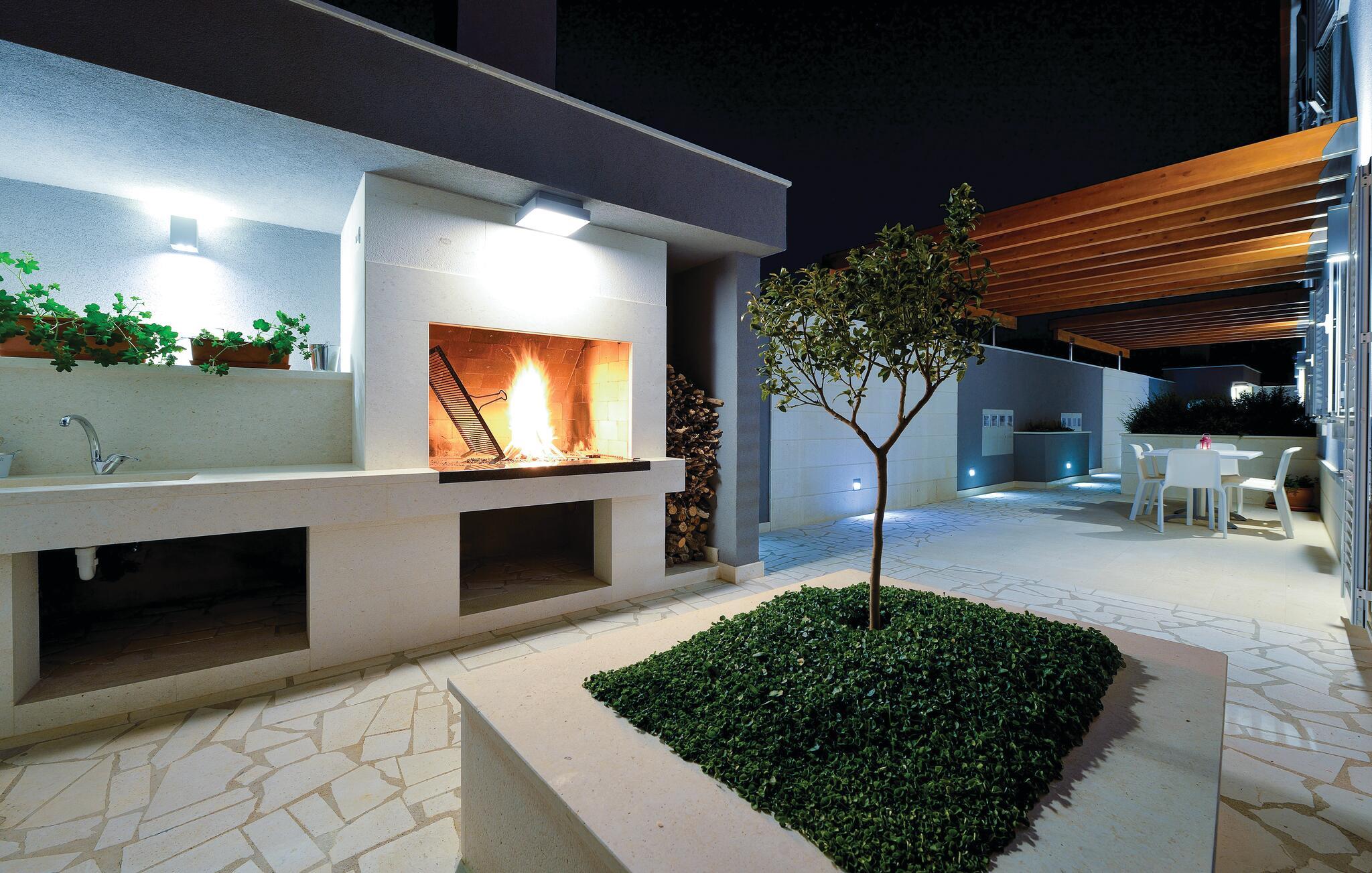 Den nærliggende strand er ideel til badning, solbadning eller blot at nyde det krystalklare vand. Oplev skønheden i kystlandskabet med en spadseretur langs de naturskønne vandrestier, der byder på skjulte bugter og en imponerende udsigt. For aktive feriegæster er der talrige vandre- og cykelstier, der fører til uforglemmelige udsigtspunkter. Fordyb jer i atmosfæren i den gamle bydel i Rogoznica, gå gennem de snoede gader og se den charmerende arkitektur, der former stedets karakter.