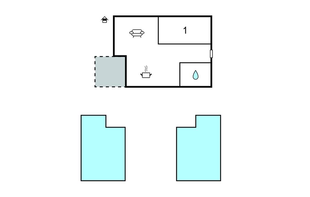 Opholdsstue/køkken - 2 Sovepladser. (Sofa, madras eller lignende).