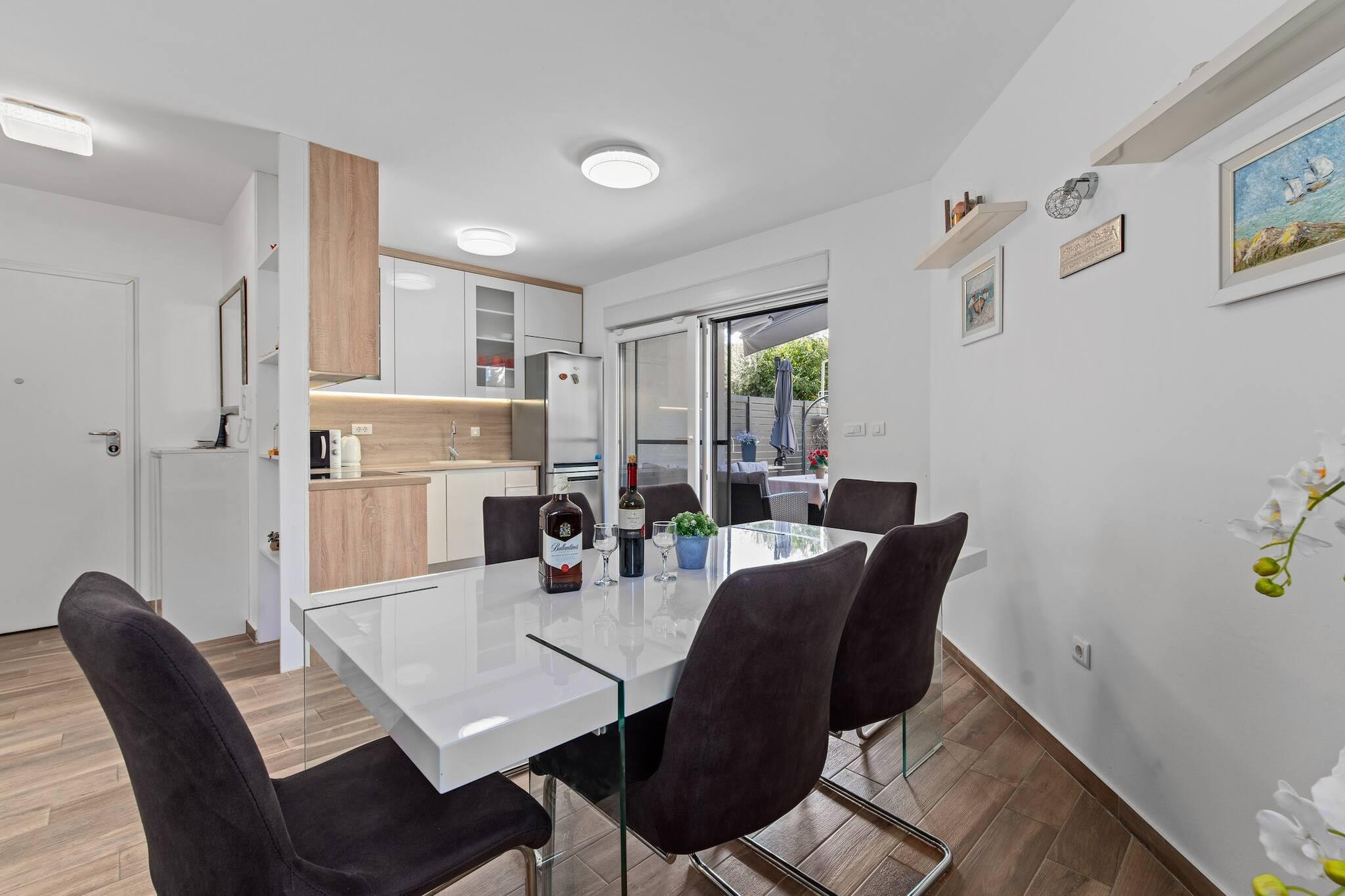 Denne veldesignede ferielejlighed tilbyder et generøst layout for op til seks gæster, med to soveværelser med en kingsize og en queen-size seng, plus en dobbelt sovesofa i opholdsområdet. Ejendommen er ideel til familier eller par og sikrer et kæledyrs- og røgfrit miljø. Gæsterne kan nyde en privat terrasse med havemøbler og adgang til en indhegnet gårdhave og grillplads, hvilket gør den perfekt til udendørs måltider og afslapning. Lejligheden ligger kun 500 meter fra Lozica-stranden og giver nem adgang til både sand- og klippekysten. Dens førsteklasses beliggenhed i Rogoznica placerer gæster i nærheden af en lokal kaffebar og en række kyststier, der er ideelle til at gå eller cykle. Til dagsture er Lake Dragon's Eye kun 3 km væk, mens Split Lufthavn (34 km) og den maleriske Krka Nationalpark (45 km) også er inden for rækkevidde. Området er familievenligt, fredeligt og godt forbundet, hvilket gør det til en god base for at udforske den dalmatiske kyst. Indvendigt har lejligheden et fuldt udstyret køkken med induktionskomfur, opvaskemaskine, ovn, mikroovn, kaffemaskine og alt nødvendigt køkkenudstyr - perfekt til at tilberede komplette måltider. Et fladskærms-satellit-tv, spiseplads og en indbydende stue tilbyder komfort og funktionalitet, mens det moderne badeværelse inkluderer friske håndklæder, sengetøj og slutrengøring uden ekstra omkostninger. Med sin private indgang og sans for detaljer kombinerer denne lejlighed bekvemmelighed, stil og funktionalitet til en afrundet ferieoplevelse.