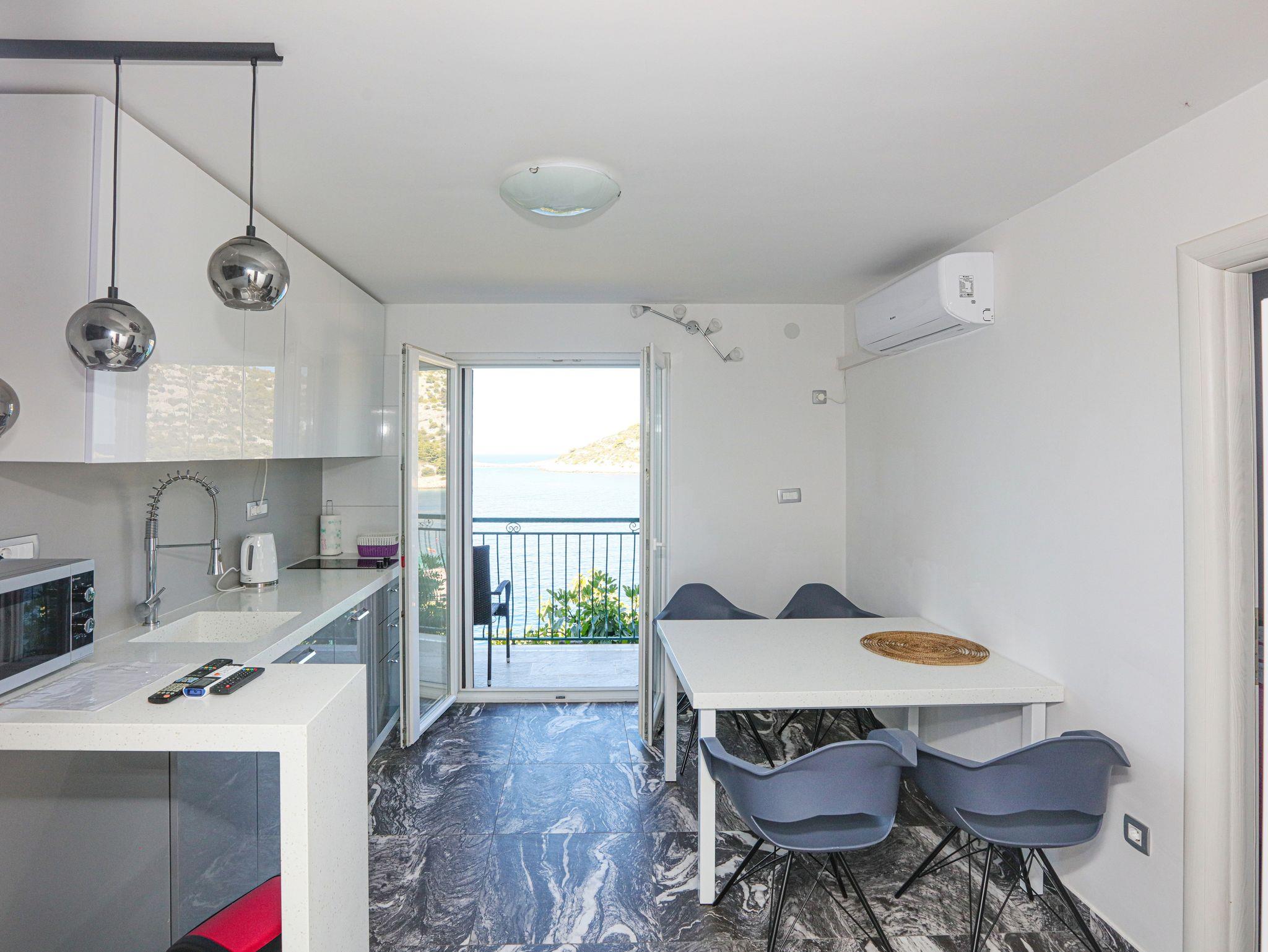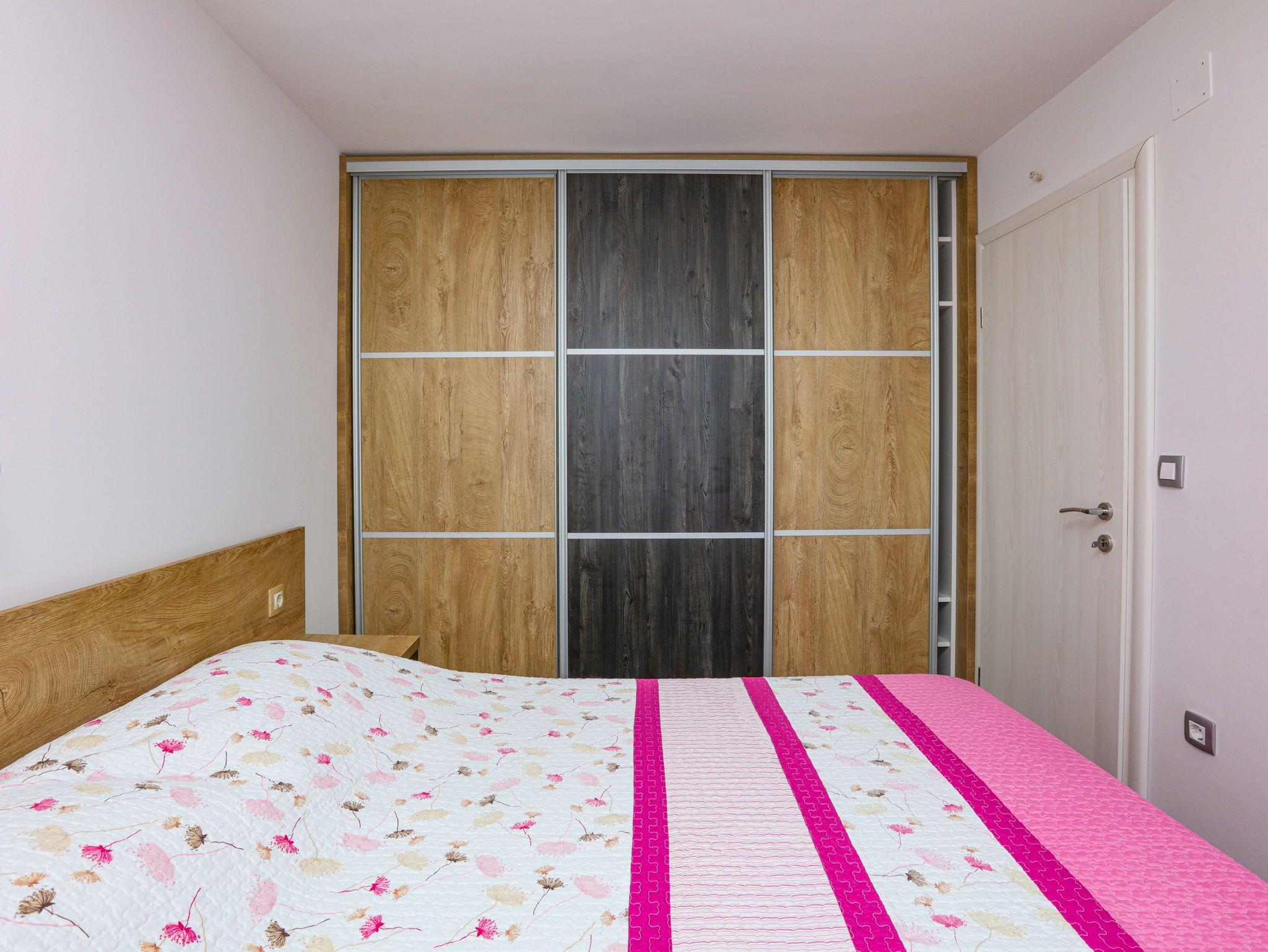 Ferienwohnung bietet Platz für 4 Gäste. Die Betten sind in Schlafzimmern, die es 2 gibt, innerhalb einer Gesamtfläche von 35m2, angeordnet. Die Gäste haben einen eigenen Balkon zur Verfügung, auf der sie in warmen Sommernächten genießen können. Das Apartment bietet Meerblick. Es ist erlaubt, Speisen auf dem Gemeinschafts-Grill vorzubereiten. IM PREIS INBEGRIFFEN: Kurtaxe, Endreinigung, Klimatisierung, Parkplatz, Internet, Bootsanlegeplatz, Kinderbett, Bügeleisen, Bügelbrett, tragbarer Grill, Sonnenschirm. VERBINDLICHE ZUSÄTZLICHE KOSTEN: Aufzahlung für Kurzaufenthalte (prozentualer Zuschlag pro Nächtigungsanzahl: 30% - 1, 20% - 2, 10% - 3). Die Verfügbarkeit zusätzlicher Dienstleistungen in Ihrem reservierten Termin und die Preise derselben (falls nicht aufgeführt) müssen im Voraus überprüft werden. Zusätzliche Dienstleistungen die in der Zahlungsaufforderung nicht aufgeführt sind werden direkt beim Vermieter bezahlt, angenommen der Gast nutzt auch diese. Ermäßigung auf den Grundpreis: Gratistag 14=13 (bei einem Aufenthalt von 14 Tagen oder mehr erhalten Sie einen Gratistag für den Aufenthalt bis 31.12.26).