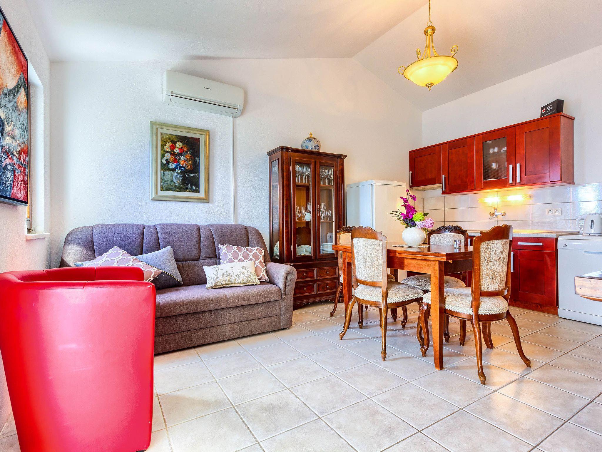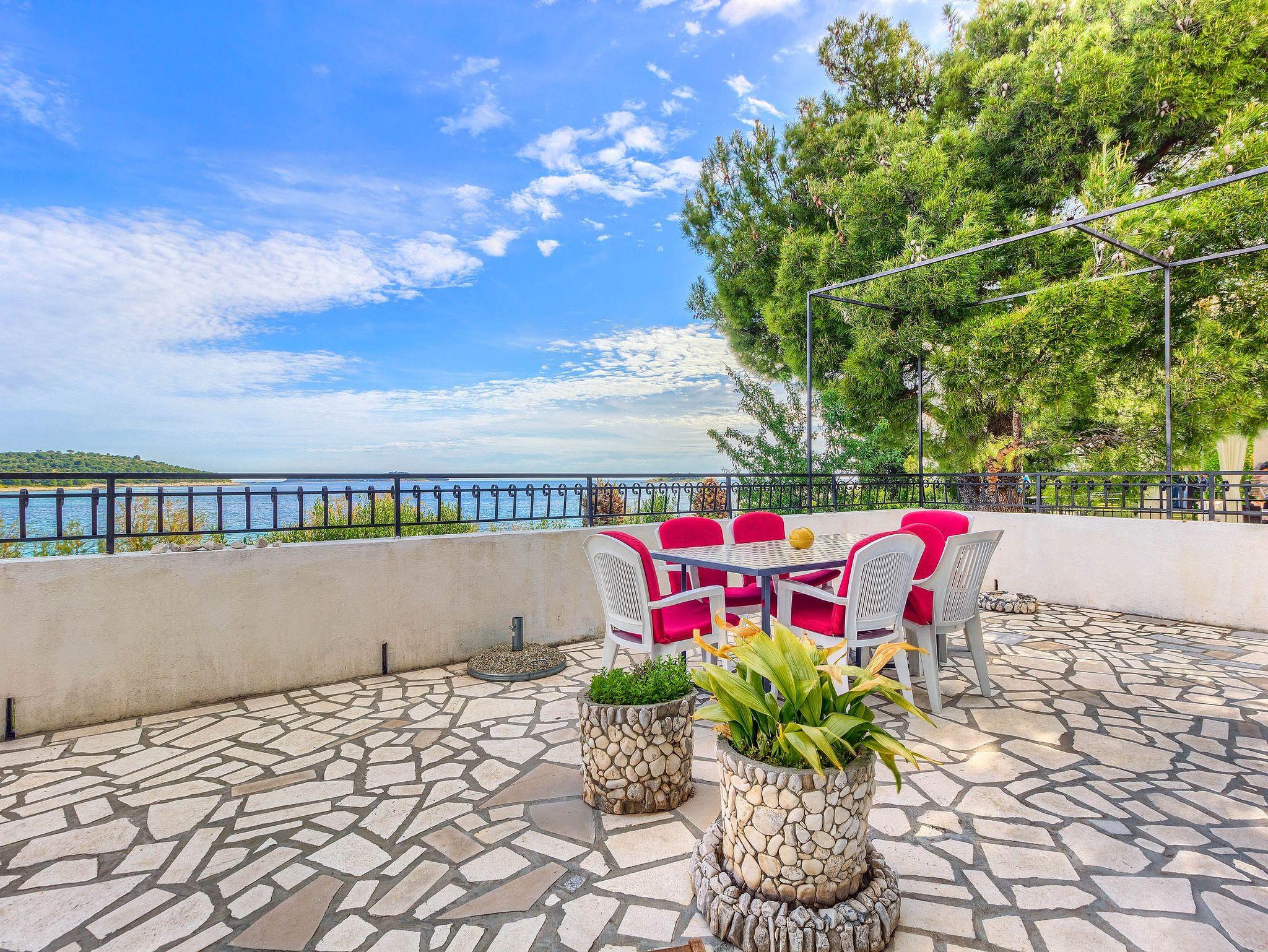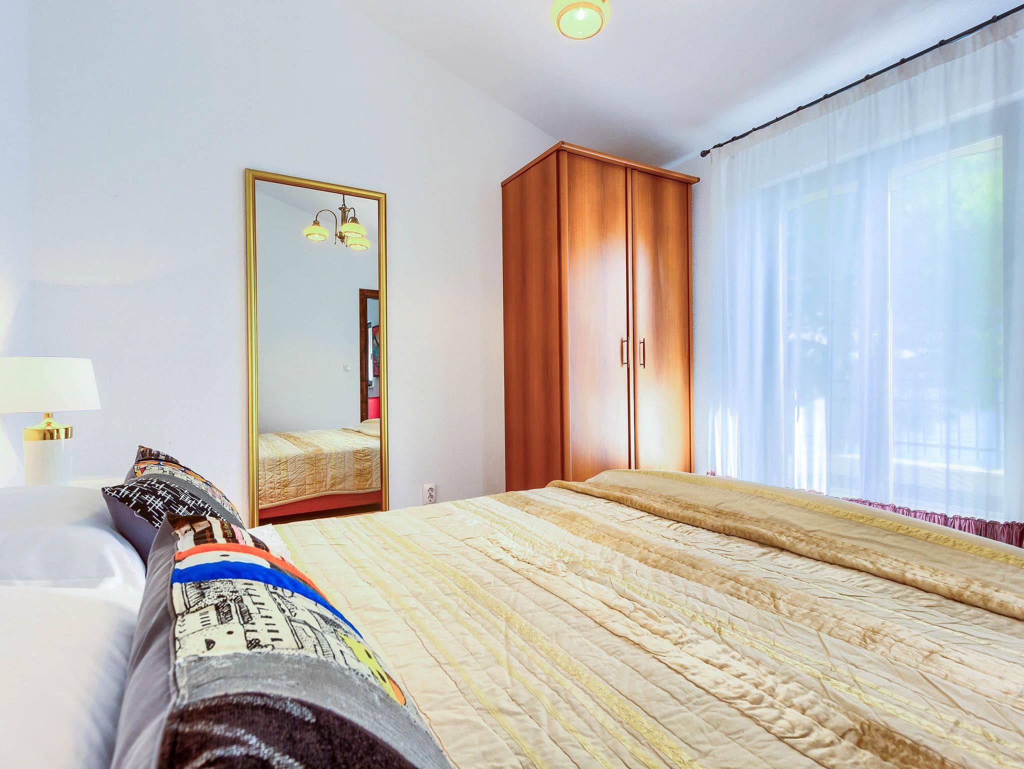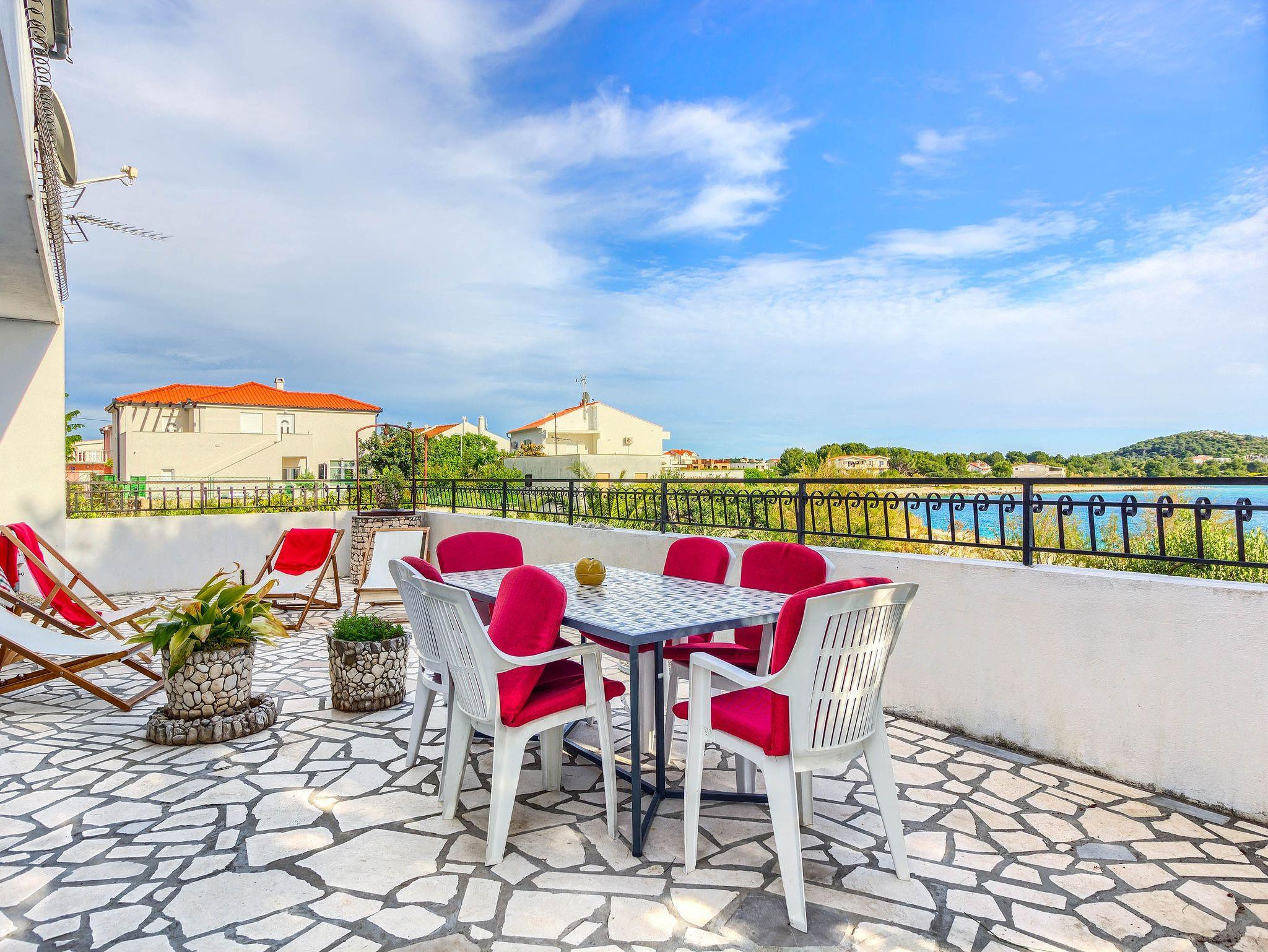 Ferienwohnung bietet Platz für 6 Gäste. Die Betten sind in Schlafzimmern, die es 2 gibt, und in Wohnzimmer, innerhalb einer Gesamtfläche von 45m2, angeordnet. Die Gäste haben eine eigene Terrasse zur Verfügung, auf der sie in warmen Sommernächten genießen können. Das Apartment bietet Meerblick. Es ist erlaubt, Speisen auf dem Gemeinschafts-Grill vorzubereiten. In der Unterkunftseinheit besteht die Möglichkeit des Mitbringens von Haustieren gegen Aufpreis. IM PREIS INBEGRIFFEN: Kurtaxe, Endreinigung, Klimatisierung, Parkplatz, Internet, Bootsanlegeplatz, Kinderbett, Bügeleisen, Bügelbrett, Föhn, tragbarer Grill, Sonnenschirm, Liegestühle. UNVERBINDLICHE ZUSÄTZLICHE KOSTEN: Haustiere (5,00 € pro Nacht). Die Verfügbarkeit zusätzlicher Dienstleistungen in Ihrem reservierten Termin und die Preise derselben (falls nicht aufgeführt) müssen im Voraus überprüft werden. Zusätzliche Dienstleistungen die in der Zahlungsaufforderung nicht aufgeführt sind werden direkt beim Vermieter bezahlt, angenommen der Gast nutzt auch diese. Ermäßigung auf den Grundpreis: Gratistag 14=13 (bei einem Aufenthalt von 14 Tagen oder mehr erhalten Sie einen Gratistag für den Aufenthalt bis 31.12.26).