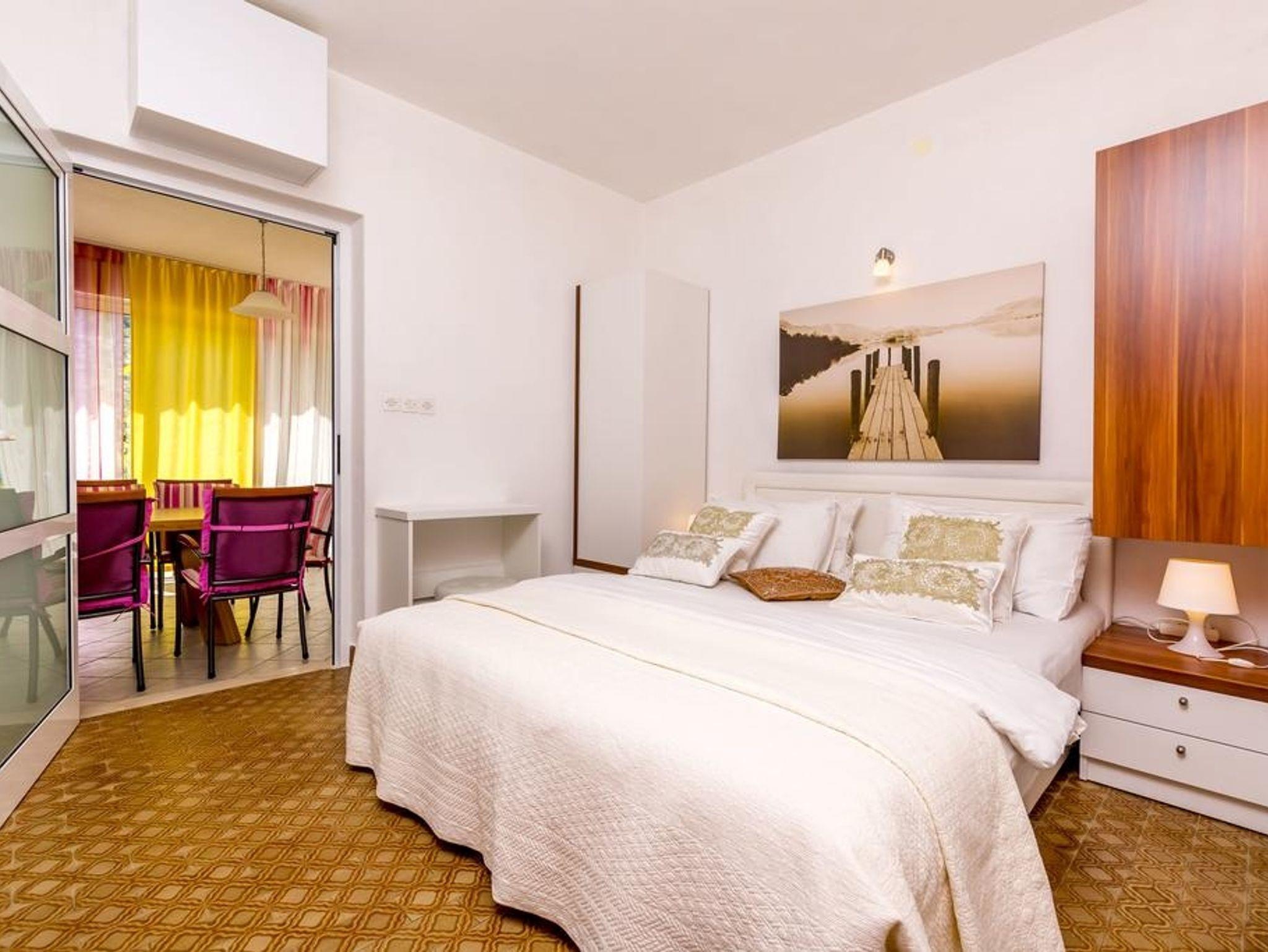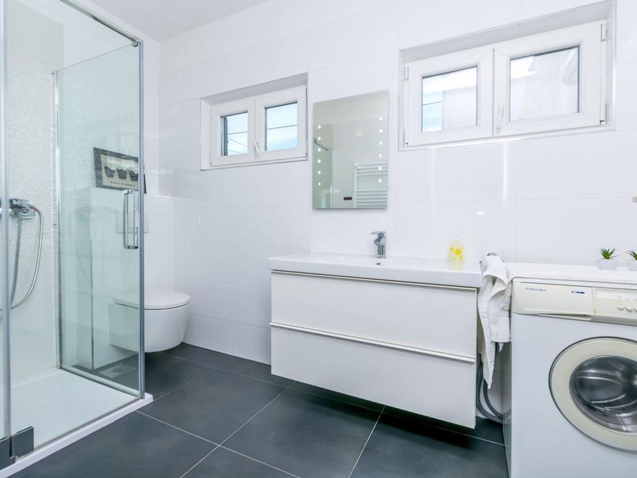 Haus bietet Platz für 8 Gäste. Die Betten sind in Schlafzimmern, die es 4 gibt, innerhalb einer Gesamtfläche von 115m2, angeordnet. Die Gäste haben eine eigene Terrasse zur Verfügung, auf der sie in warmen Sommernächten genießen können. Das Haus bietet Meerblick. Für vollen Genuss und Entspannung gibt es einen privaten Grill für Gäste dieser Unterkunft. In der Unterkunftseinheit besteht die Möglichkeit des Mitbringens von Haustieren gegen Aufpreis. IM PREIS INBEGRIFFEN: Kurtaxe, Endreinigung, Klimatisierung, Parkplatz, Internet, Kinderbett, Bügeleisen, Bügelbrett, Föhn. VERBINDLICHE ZUSÄTZLICHE KOSTEN: Aufzahlung für Kurzaufenthalte (prozentualer Zuschlag pro Nächtigungsanzahl: 30% - 1, 20% - 2, 10% - 3). UNVERBINDLICHE ZUSÄTZLICHE KOSTEN: Haustiere (5,00 € pro Nacht). Die Verfügbarkeit zusätzlicher Dienstleistungen in Ihrem reservierten Termin und die Preise derselben (falls nicht aufgeführt) müssen im Voraus überprüft werden. Zusätzliche Dienstleistungen die in der Zahlungsaufforderung nicht aufgeführt sind werden direkt beim Vermieter bezahlt, angenommen der Gast nutzt auch diese. Ermäßigung auf den Grundpreis: Gratistag 14=13 (bei einem Aufenthalt von 14 Tagen oder mehr erhalten Sie einen Gratistag für den Aufenthalt bis 31.12.26).