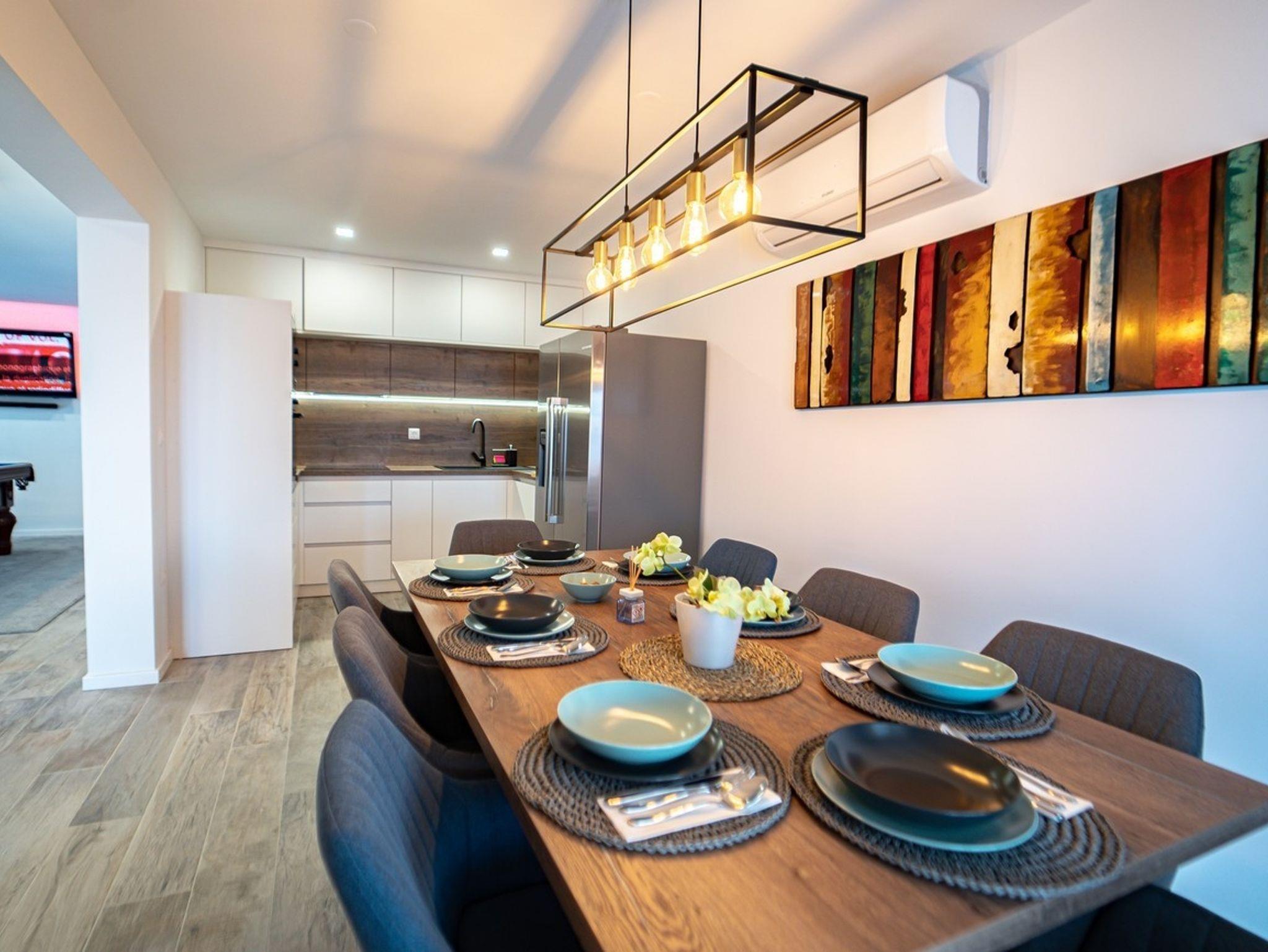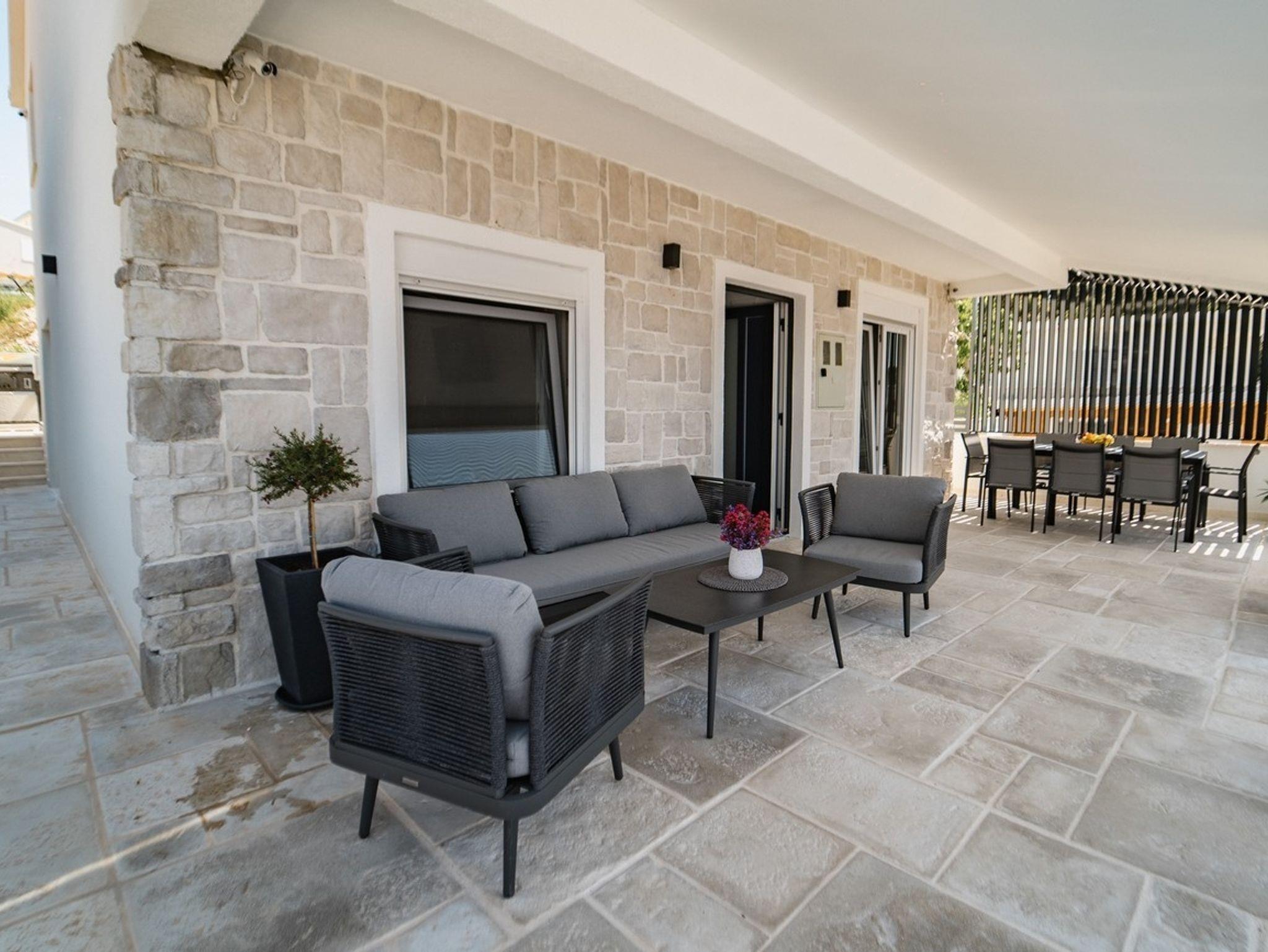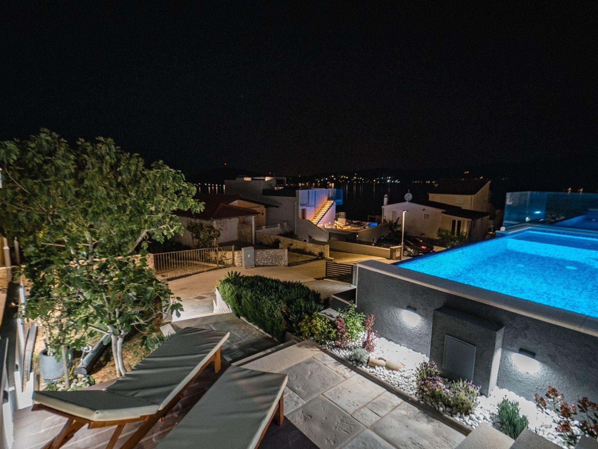 Haus bietet Platz für 6 Gäste. Die Betten sind in Schlafzimmern, die es 3 gibt, innerhalb einer Gesamtfläche von 94m2, angeordnet. Die Gäste haben eine eigene Terrasse zur Verfügung, auf der sie in warmen Sommernächten genießen können. Das Haus bietet Meerblick. Für vollen Genuss und Entspannung gibt es einen privaten Grill für Gäste dieser Unterkunft. Während ihres Aufenthalts können sich Gäste im privaten Schwimmbad entspannen. In der Unterkunftseinheit besteht die Möglichkeit des Mitbringens von Haustieren, und die Dienstleistung ist im Preis der Unterkunft enthalten. IM PREIS INBEGRIFFEN: Kurtaxe, Endreinigung, Klimatisierung, Pool, Parkplatz, Internet, Bootsanlegeplatz, Haustiere, Kinderbett, Bügeleisen, Bügelbrett, Föhn, 2 Kinderbettchen (im Preis enthalten). Die Verfügbarkeit zusätzlicher Dienstleistungen in Ihrem reservierten Termin und die Preise derselben (falls nicht aufgeführt) müssen im Voraus überprüft werden. Zusätzliche Dienstleistungen die in der Zahlungsaufforderung nicht aufgeführt sind werden direkt beim Vermieter bezahlt, angenommen der Gast nutzt auch diese.