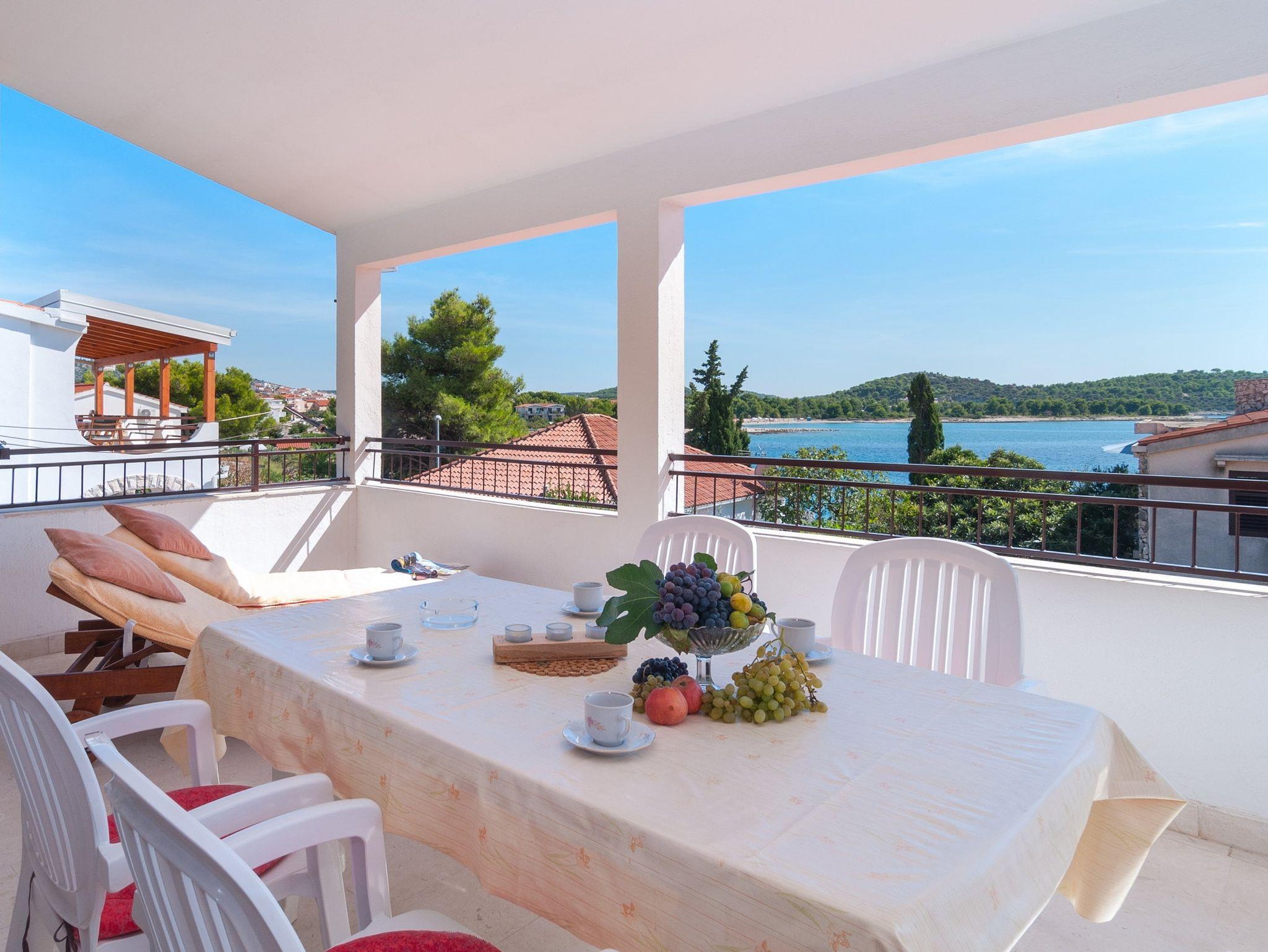 Ferienwohnung bietet Platz für 4 Gäste. Die Betten sind in Schlafzimmern, die es 2 gibt, innerhalb einer Gesamtfläche von 44m2, angeordnet. Die Gäste haben eine eigene Terrasse zur Verfügung, auf der sie in warmen Sommernächten genießen können. Das Apartment bietet Meerblick. Es ist erlaubt, Speisen auf dem Gemeinschafts-Grill vorzubereiten. In der Unterkunftseinheit besteht die Möglichkeit des Mitbringens von Haustieren gegen Aufpreis. IM PREIS INBEGRIFFEN: Kurtaxe, Endreinigung, Parkplatz, Internet, Bootsanlegeplatz, Kinderbett, Bügeleisen, Bügelbrett, Föhn. UNVERBINDLICHE ZUSÄTZLICHE KOSTEN: Klimatisierung (5,00 € pro Nacht), Wäschewaschen (5,00 € Waschen), Haustiere (5,00 € pro Nacht). Die Verfügbarkeit zusätzlicher Dienstleistungen in Ihrem reservierten Termin und die Preise derselben (falls nicht aufgeführt) müssen im Voraus überprüft werden. Zusätzliche Dienstleistungen die in der Zahlungsaufforderung nicht aufgeführt sind werden direkt beim Vermieter bezahlt, angenommen der Gast nutzt auch diese. Ermäßigung auf den Grundpreis: Gratistag 14=13 (bei einem Aufenthalt von 14 Tagen oder mehr erhalten Sie einen Gratistag für den Aufenthalt bis 31.12.26).