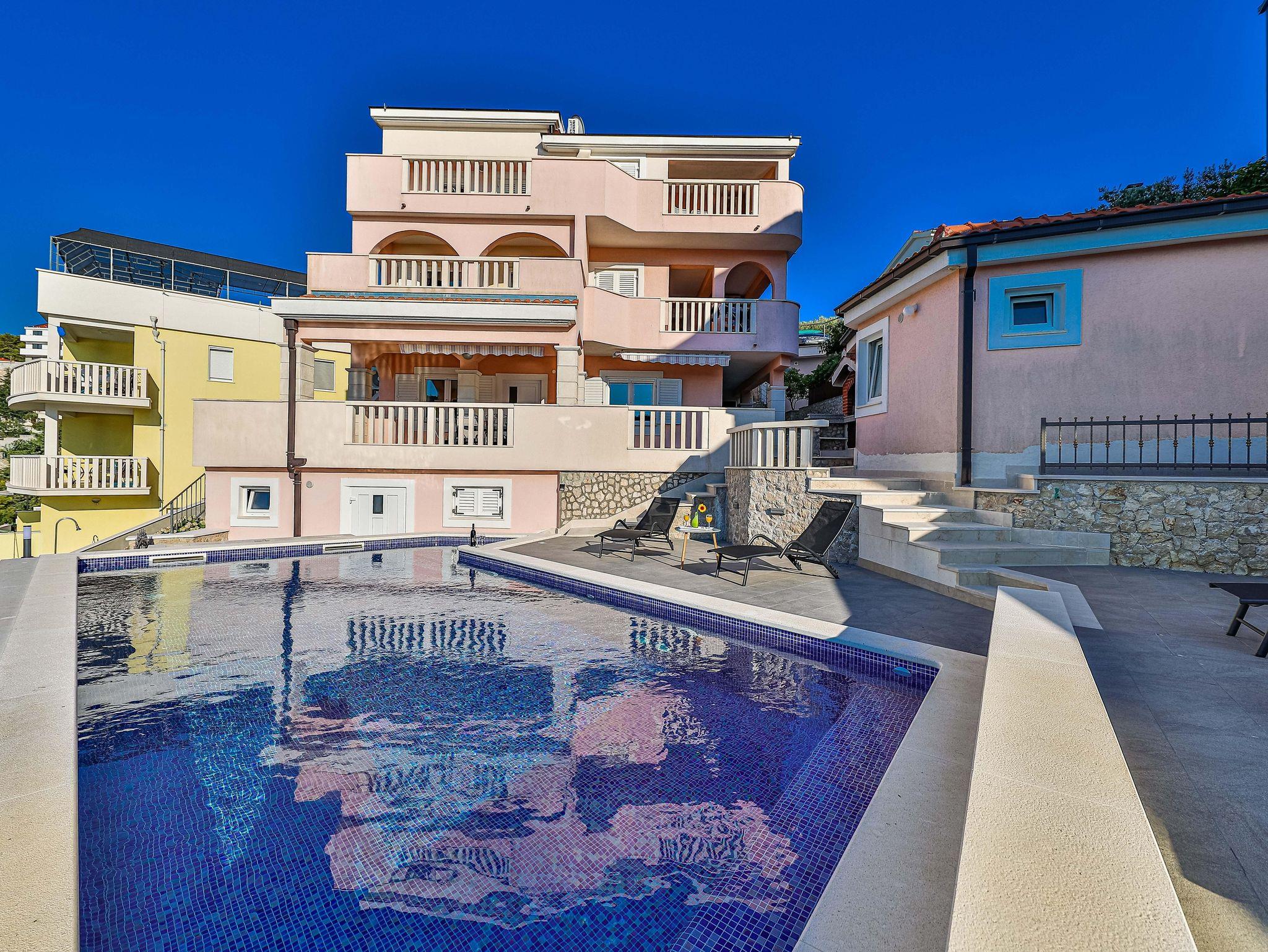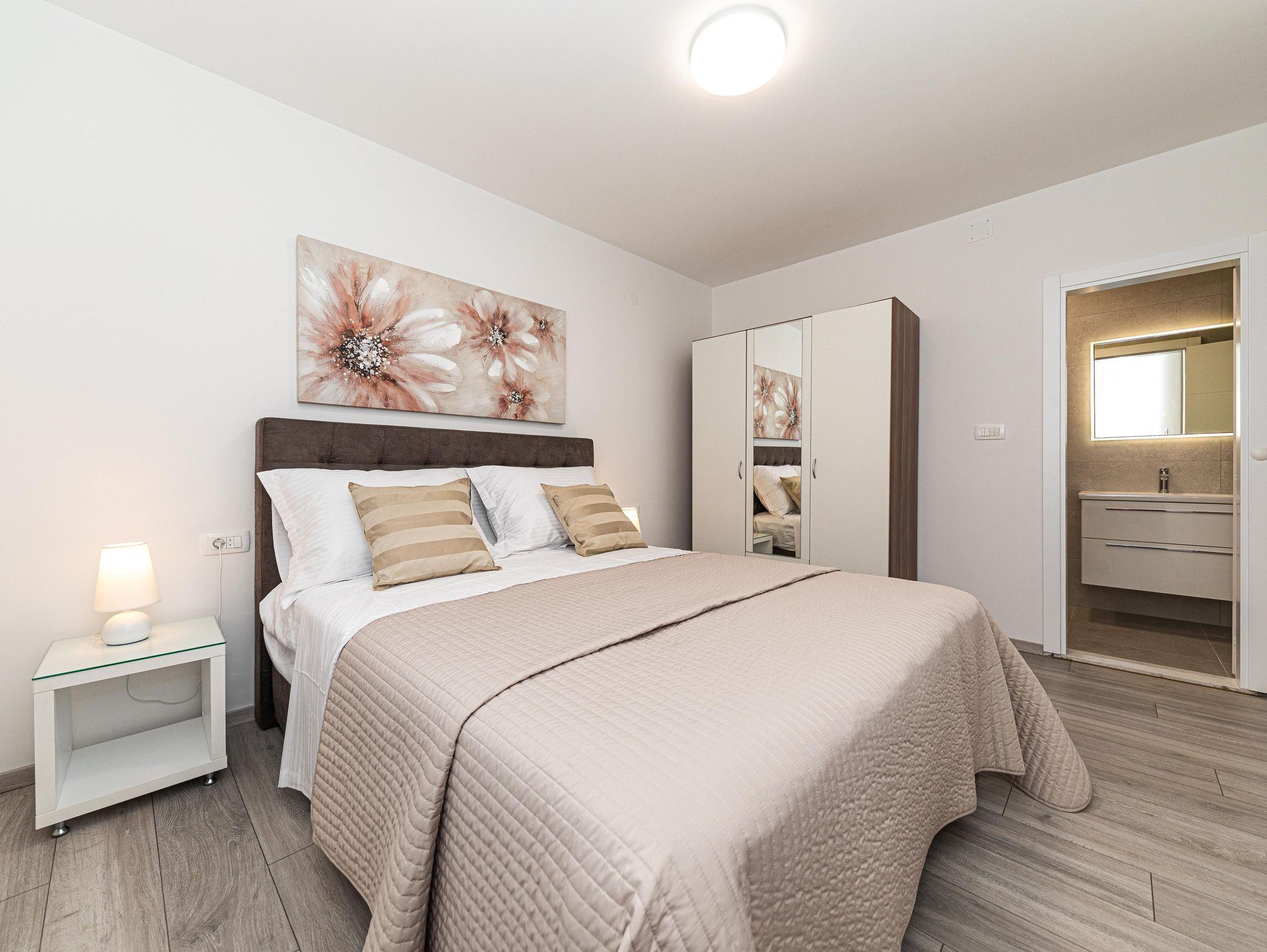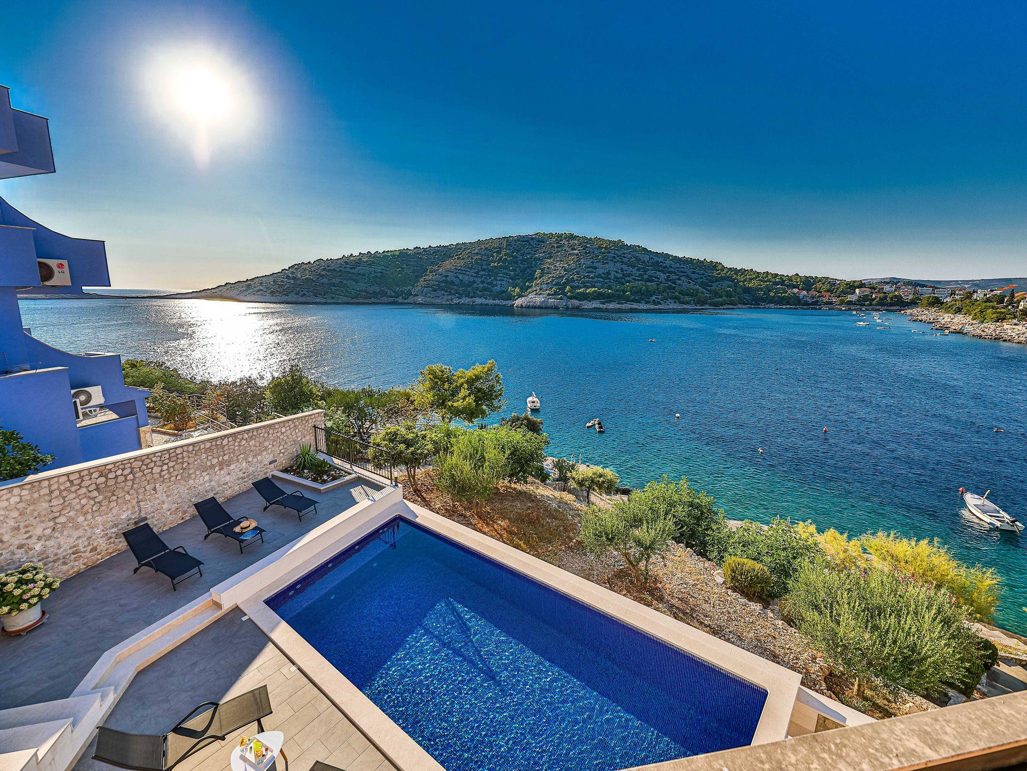 Ferienwohnung bietet Platz für 8 Gäste. Die Betten sind in Schlafzimmern, die es 4 gibt, innerhalb einer Gesamtfläche von 108m2, angeordnet. Die Gäste haben eine eigene Terrasse zur Verfügung, auf der sie in warmen Sommernächten genießen können. Das Apartment bietet Meerblick. Für vollen Genuss und Entspannung gibt es einen privaten Grill für Gäste dieser Unterkunft. Während ihres Aufenthalts können sich Gäste im privaten Schwimmbad entspannen. IM PREIS INBEGRIFFEN: Kurtaxe, Endreinigung, Klimatisierung, Pool, Parkplatz, Internet, Bootsanlegeplatz. VERBINDLICHE ZUSÄTZLICHE KOSTEN: Aufzahlung für Kurzaufenthalte (prozentualer Zuschlag pro Nächtigungsanzahl: 30% - 1, 20% - 2, 10% - 3). Die Verfügbarkeit zusätzlicher Dienstleistungen in Ihrem reservierten Termin und die Preise derselben (falls nicht aufgeführt) müssen im Voraus überprüft werden. Zusätzliche Dienstleistungen die in der Zahlungsaufforderung nicht aufgeführt sind werden direkt beim Vermieter bezahlt, angenommen der Gast nutzt auch diese.