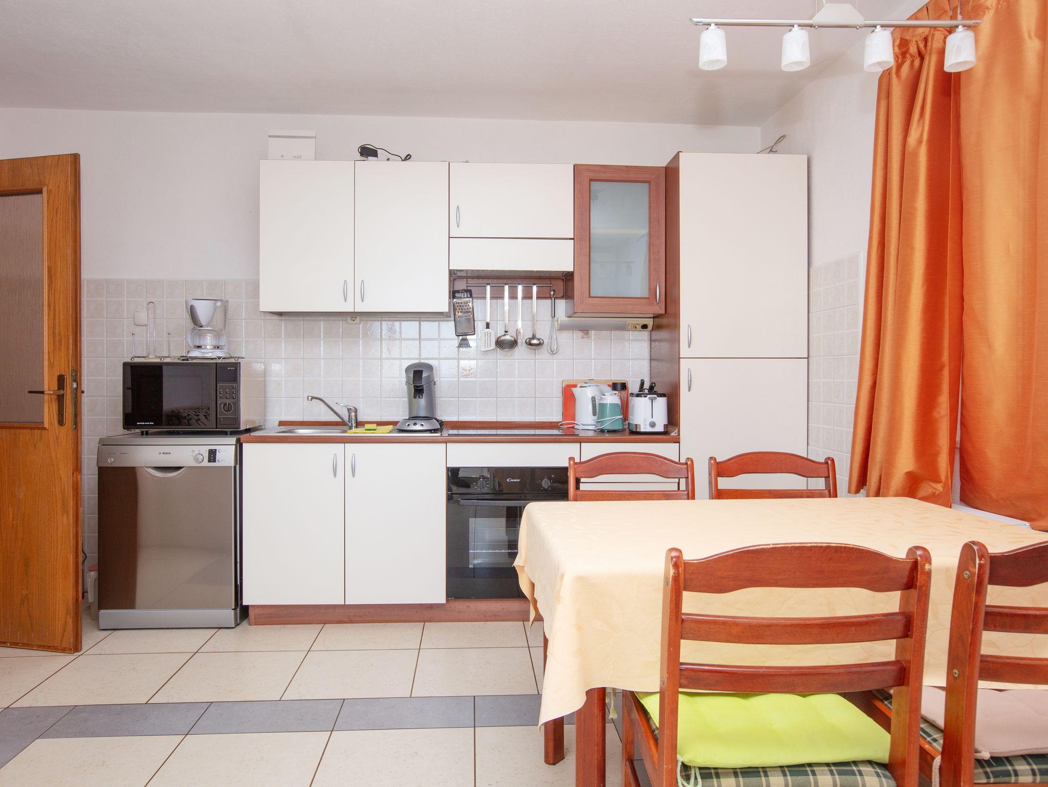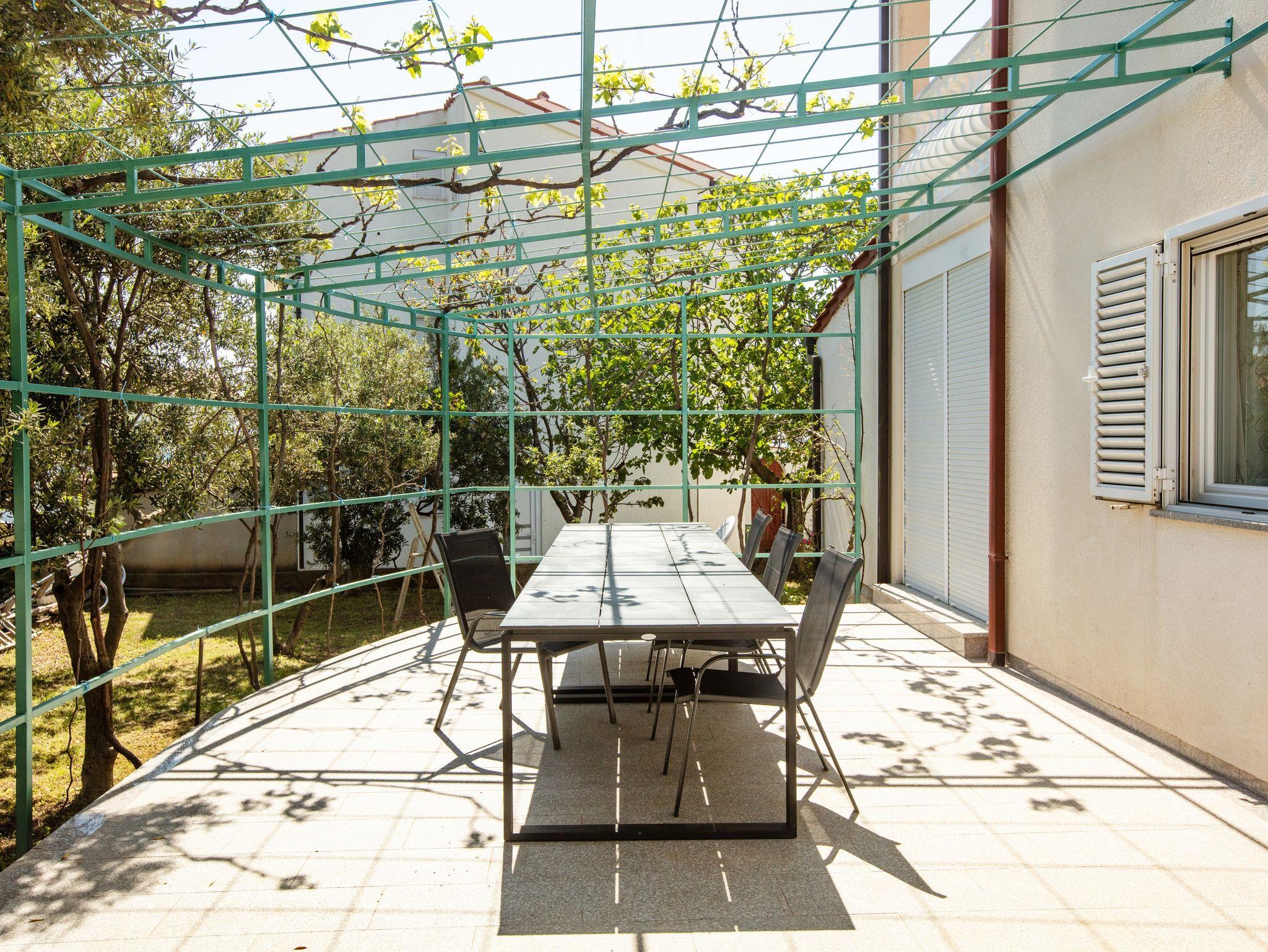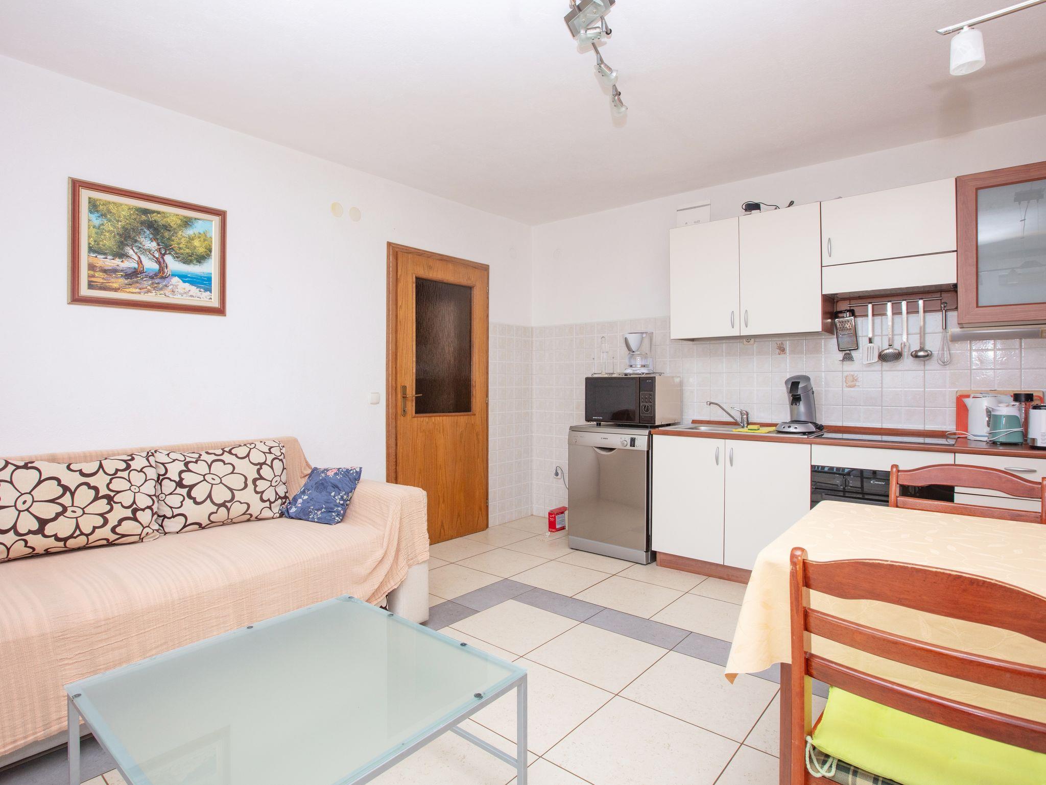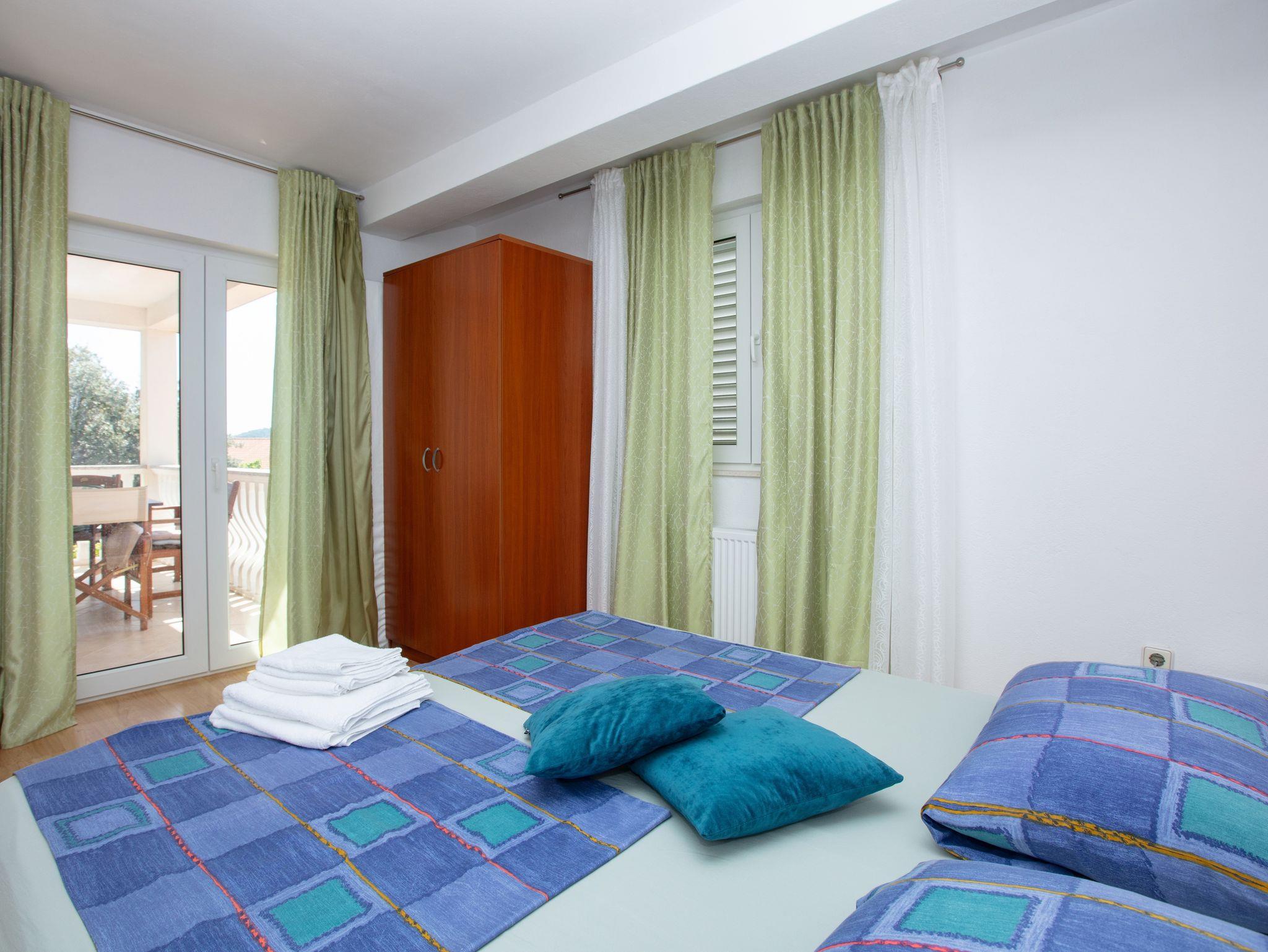 Ferienwohnung bietet Platz für 5 Gäste. Die Betten sind in Schlafzimmern, die es 2 gibt, und in Wohnzimmer, innerhalb einer Gesamtfläche von 47m2, angeordnet. Die Gäste haben eine eigene Terrasse zur Verfügung, auf der sie in warmen Sommernächten genießen können. Das Apartment bietet Meerblick. Es ist erlaubt, Speisen auf dem Gemeinschafts-Grill vorzubereiten. IM PREIS INBEGRIFFEN: Kurtaxe, Endreinigung, Klimatisierung, Zentralheizung, Parkplatz, Internet, Bügeleisen, Bügelbrett, Föhn. VERBINDLICHE ZUSÄTZLICHE KOSTEN: Aufzahlung für Kurzaufenthalte (prozentualer Zuschlag pro Nächtigungsanzahl: 30% - 1, 20% - 2, 10% - 3). UNVERBINDLICHE ZUSÄTZLICHE KOSTEN: Wäschewaschen (5,00 € Waschen), Bootsanlegeplatz (3,00 € pro Nacht). Die Verfügbarkeit zusätzlicher Dienstleistungen in Ihrem reservierten Termin und die Preise derselben (falls nicht aufgeführt) müssen im Voraus überprüft werden. Zusätzliche Dienstleistungen die in der Zahlungsaufforderung nicht aufgeführt sind werden direkt beim Vermieter bezahlt, angenommen der Gast nutzt auch diese.